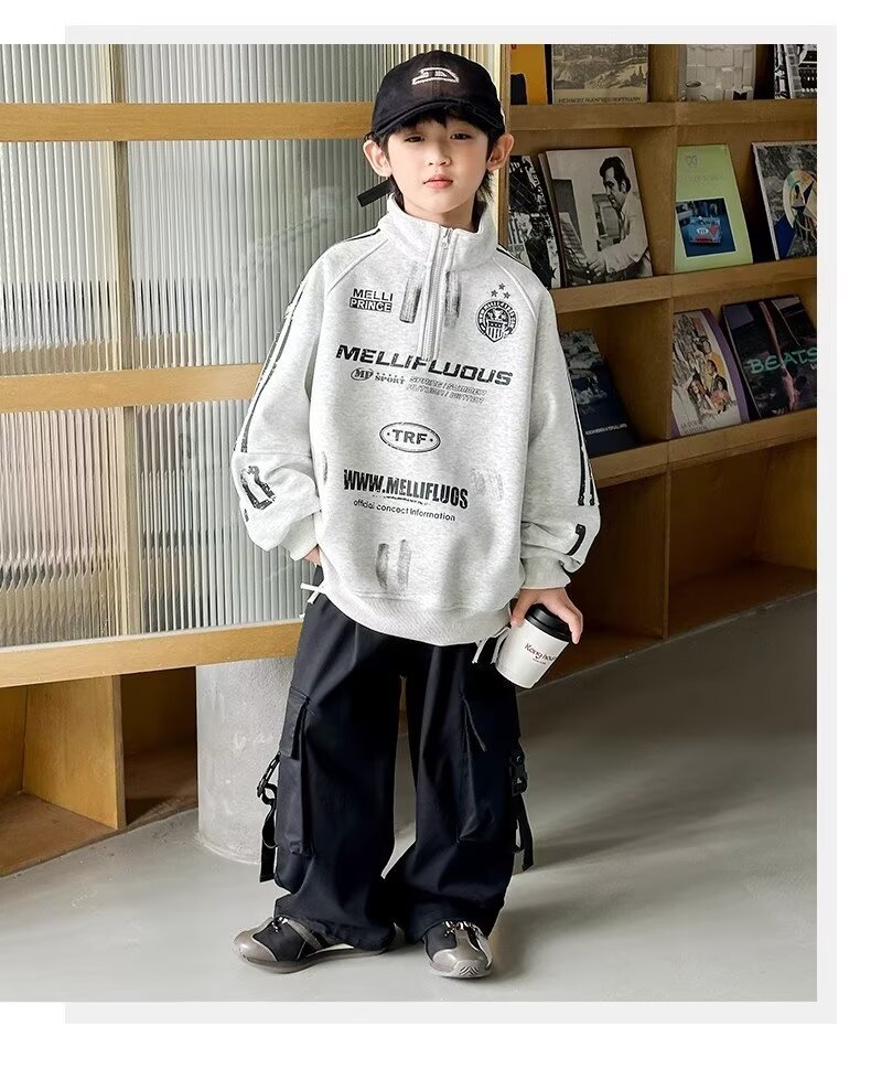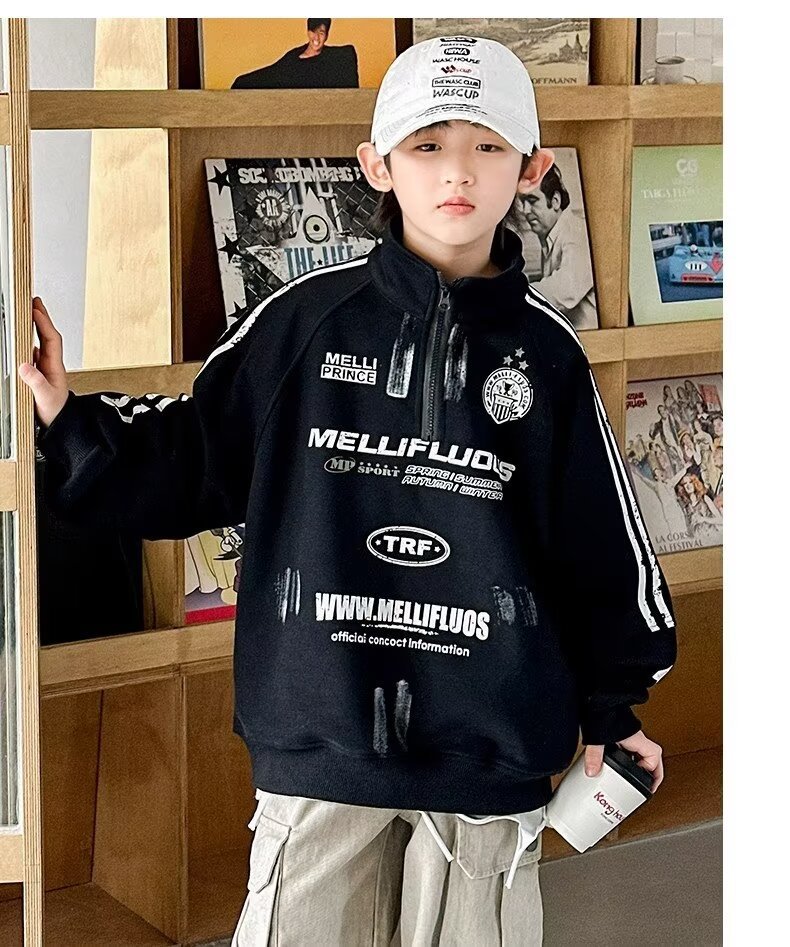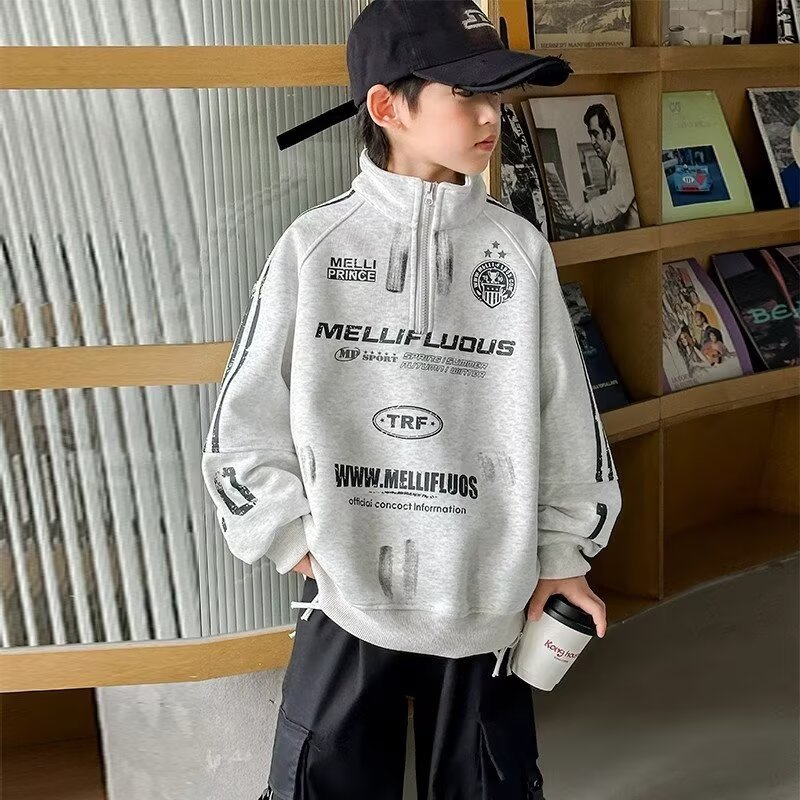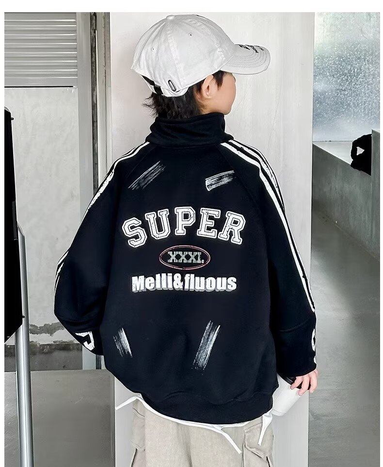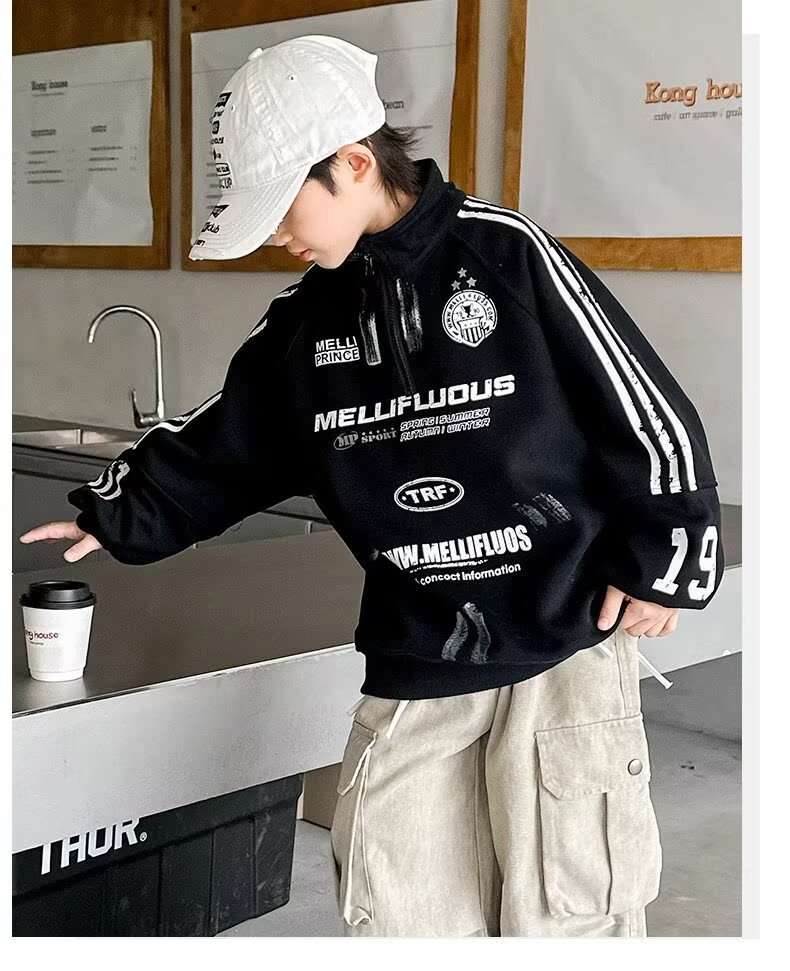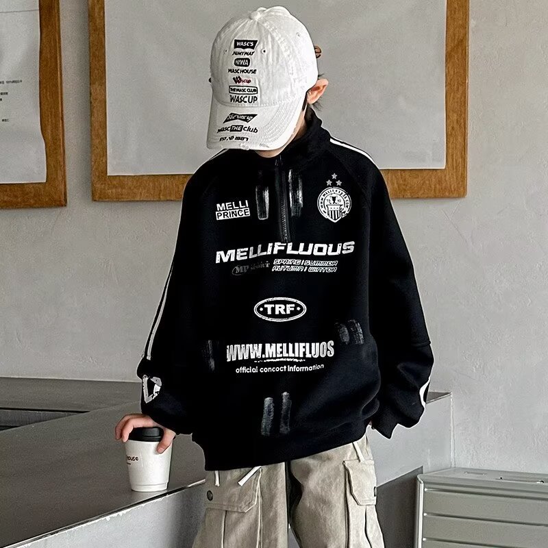 하라주쿠 스타일 소년 터틀넥 지퍼 스웨트 셔츠 2025 봄 가을 새로운 트렌드 게으른 새로운 패션 문학