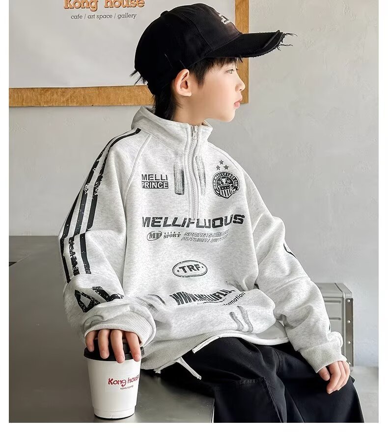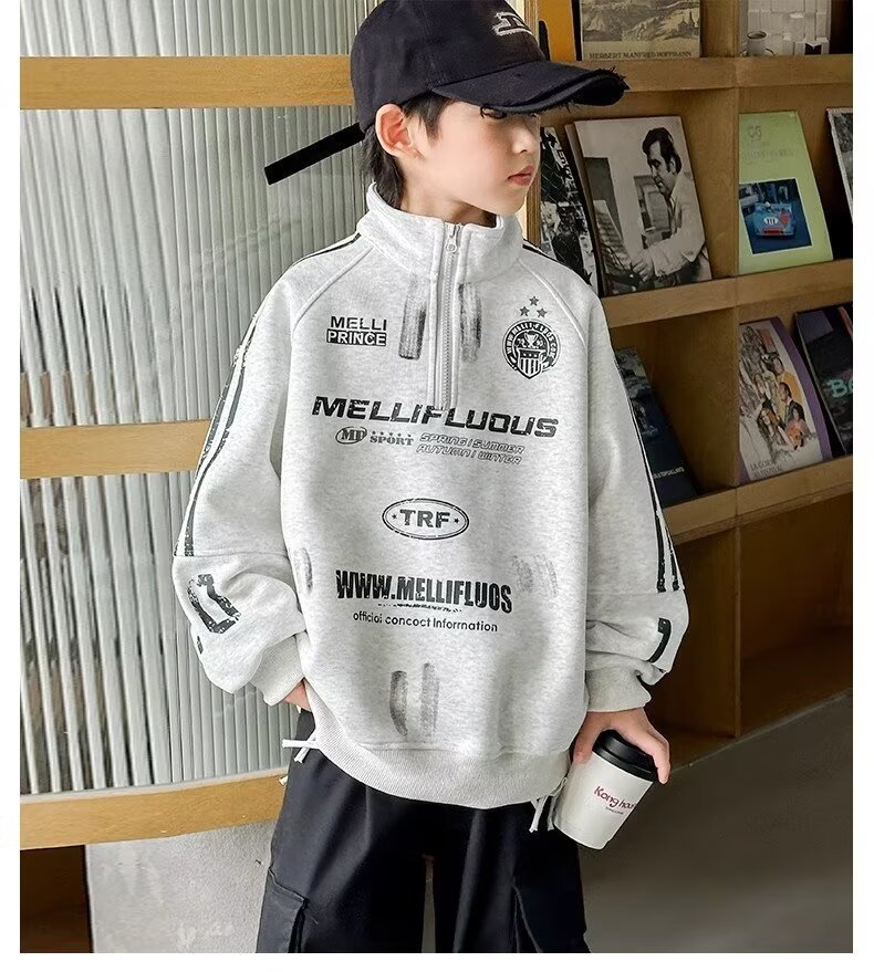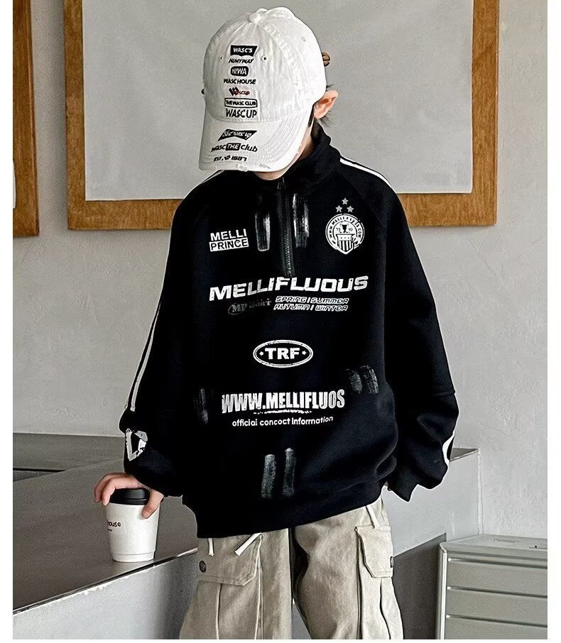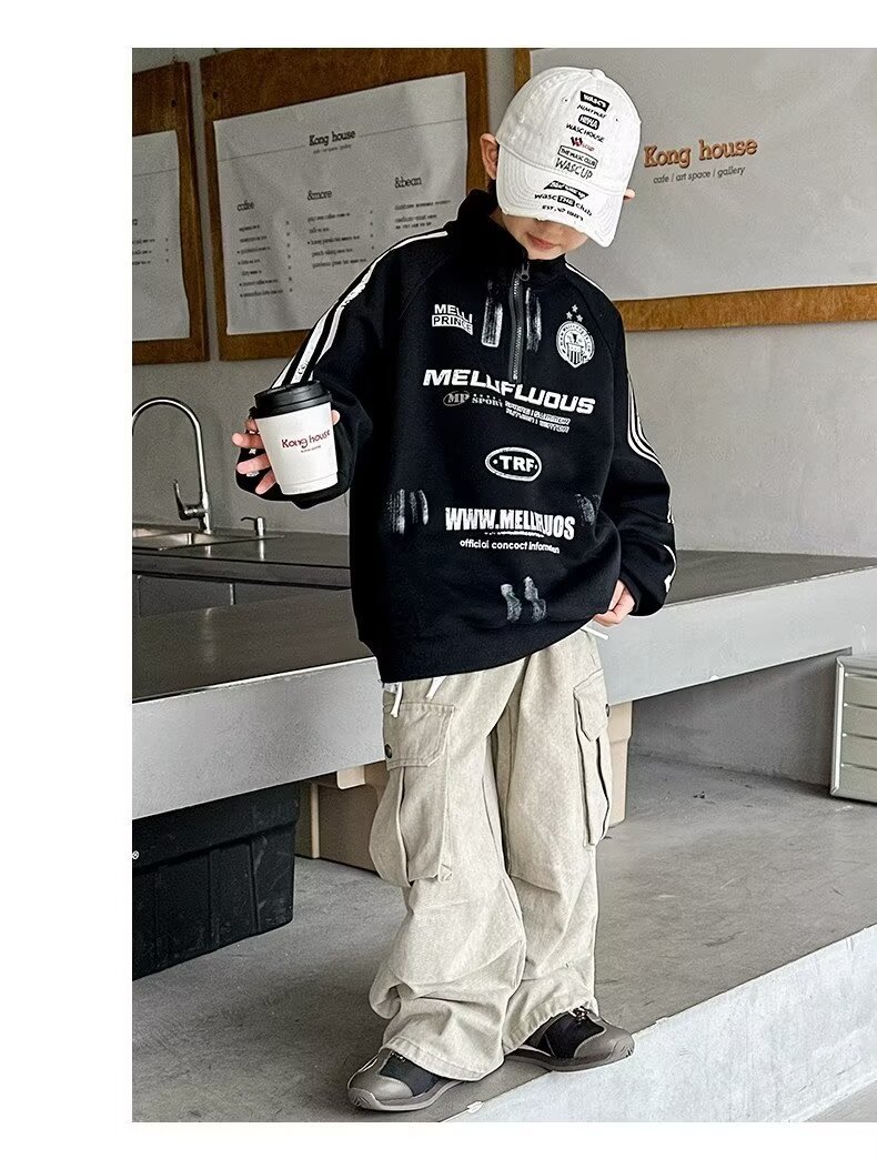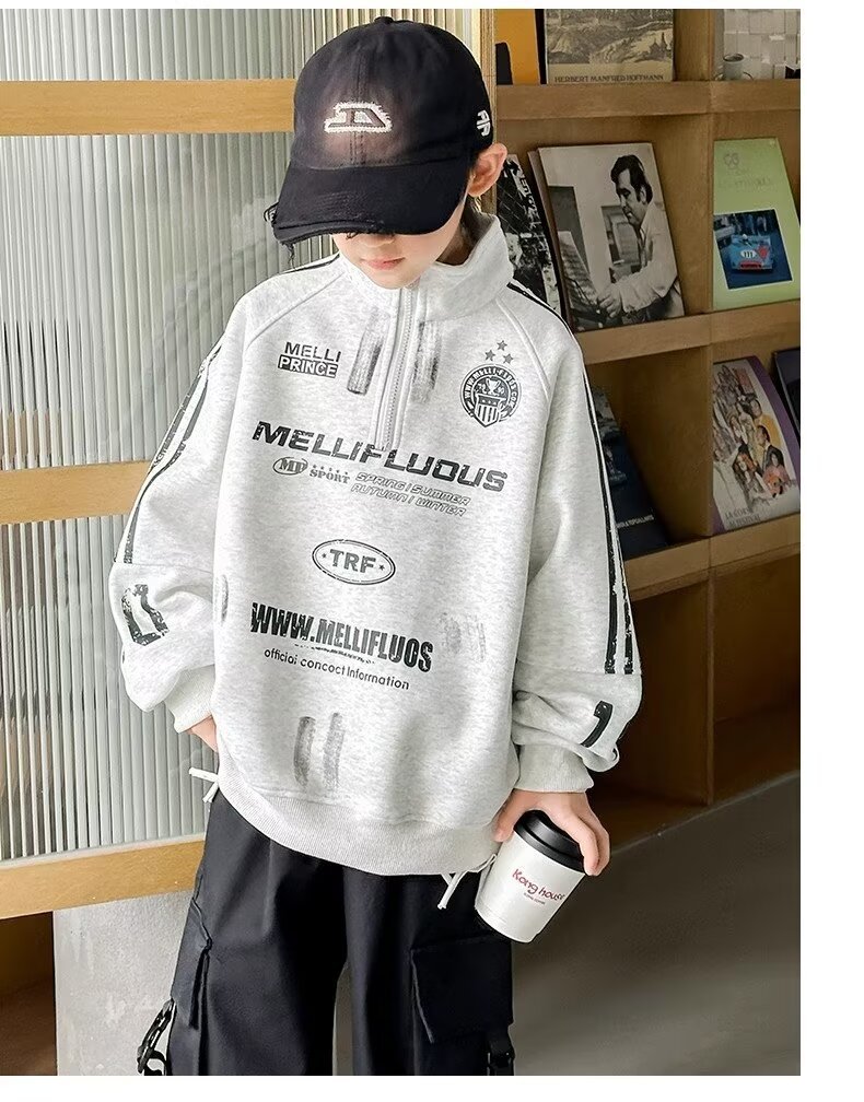 하라주쿠 스타일 소년 터틀넥 지퍼 스웨트 셔츠 2025 봄 가을 새로운 트렌드 게으른 새로운 패션 문학