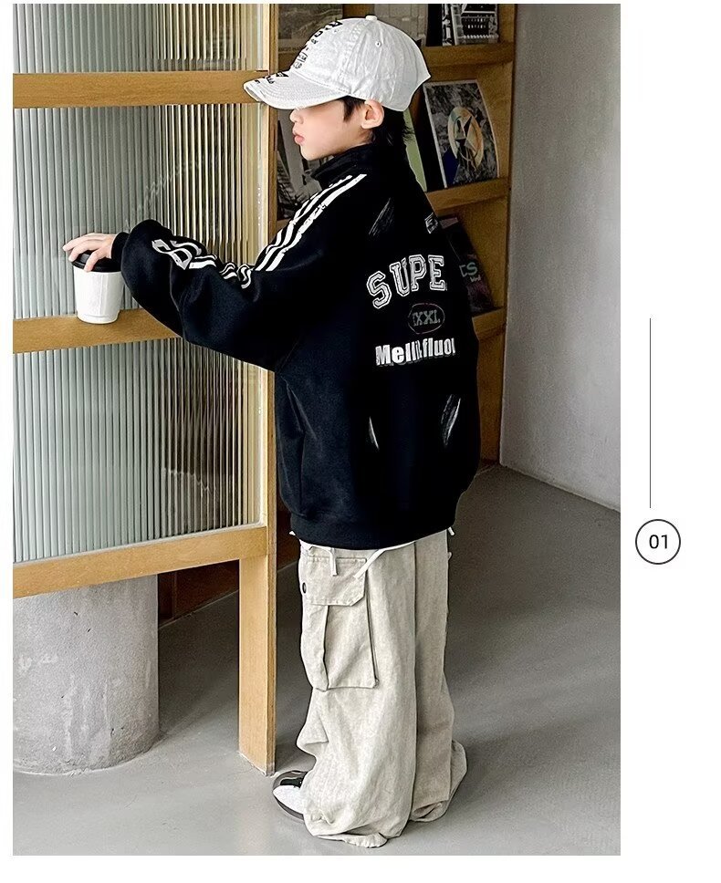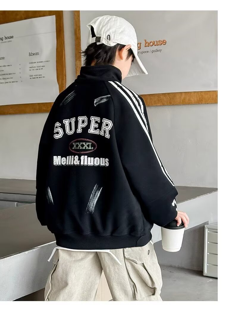 하라주쿠 스타일 소년 터틀넥 지퍼 스웨트 셔츠 2025 봄 가을 새로운 트렌드 게으른 새로운 패션 문학스토어 가기