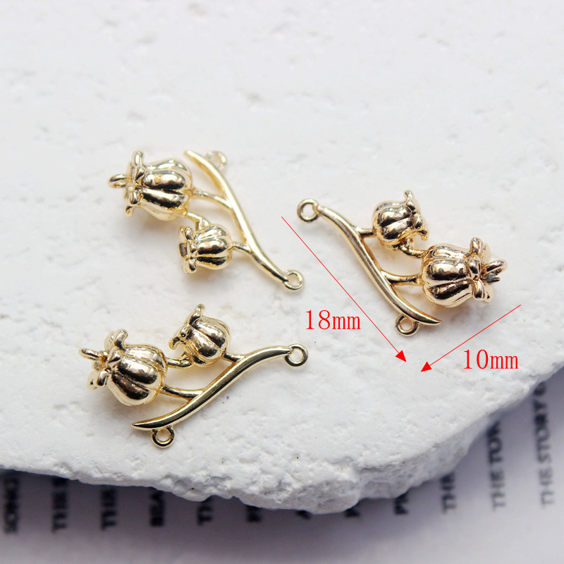 14k 패키지 골드 컬러 로즈 더블 매달려 사랑 상감 지르콘 펜던트 꽃 가지 DIY 수제 팔찌 목걸이 액세서리스토어 가기