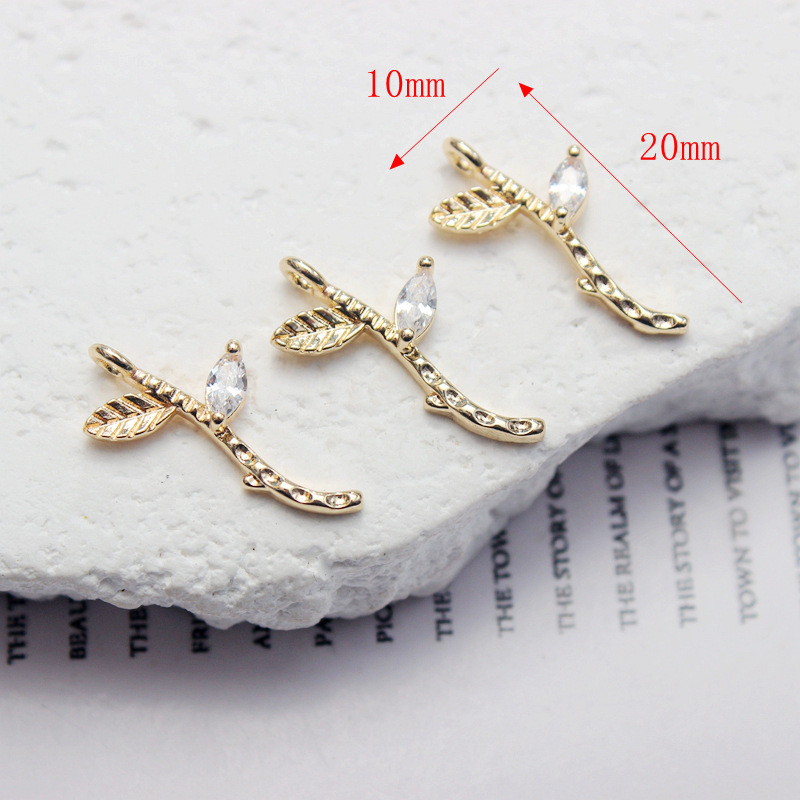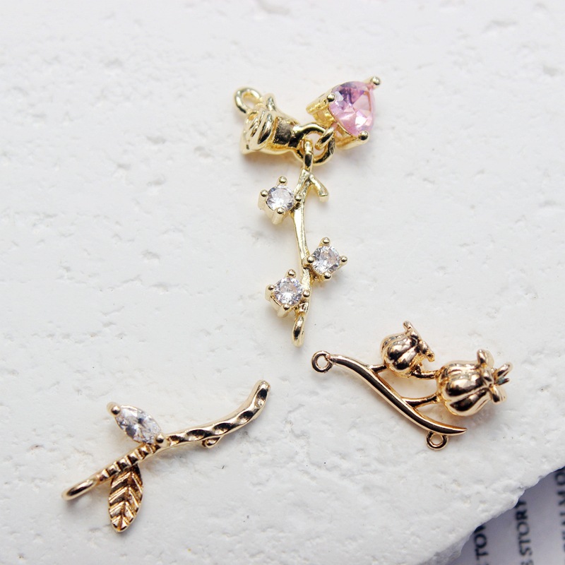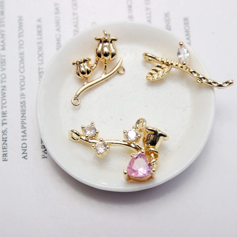 14k 패키지 골드 컬러 로즈 더블 매달려 사랑 상감 지르콘 펜던트 꽃 가지 DIY 수제 팔찌 목걸이 액세서리