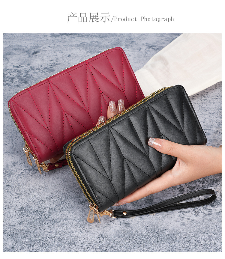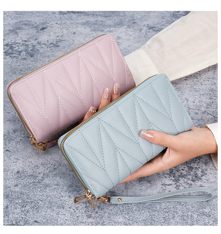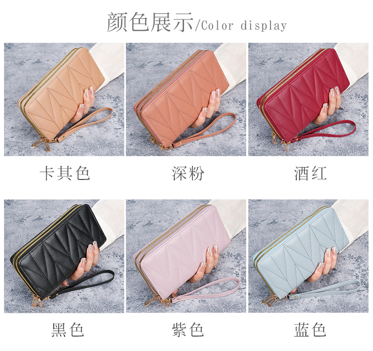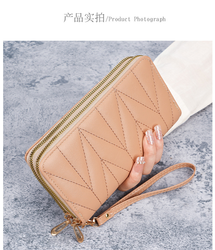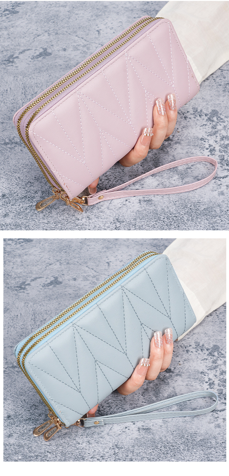 2024新款双拉拉链韩版pu长款零钱包大容量女士多卡拉链手拿手机包