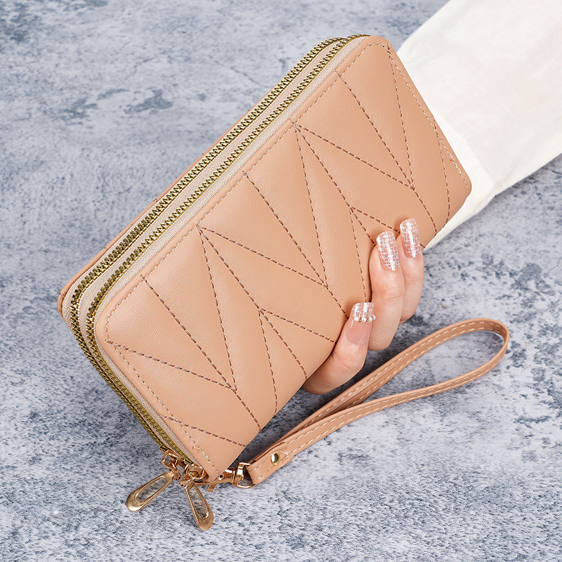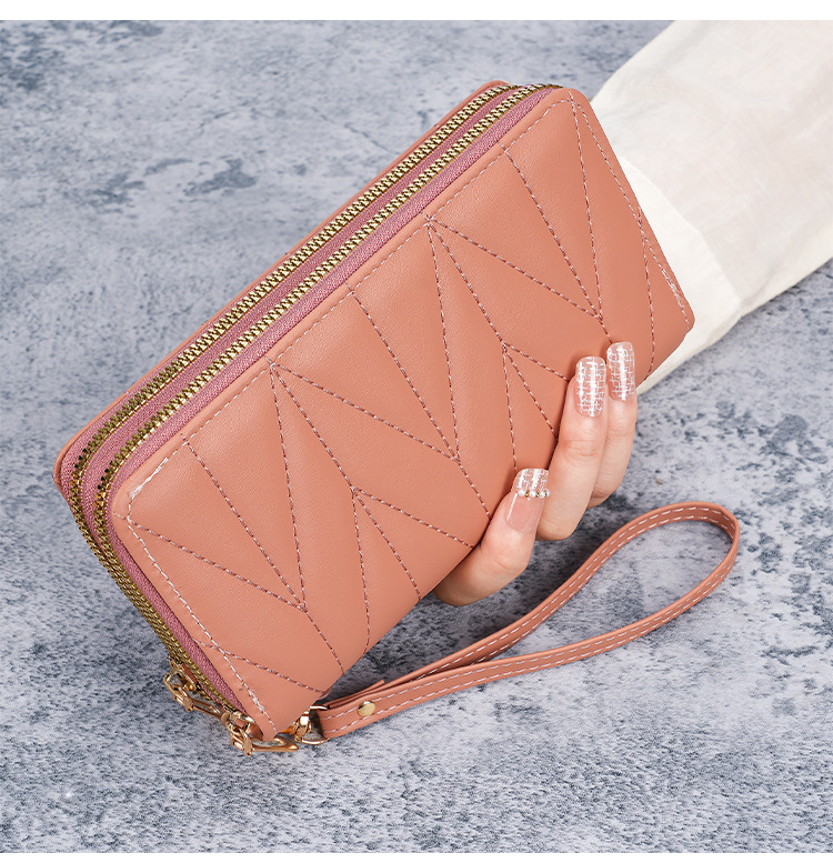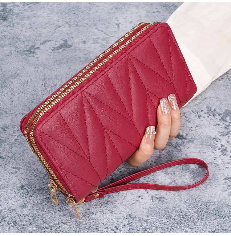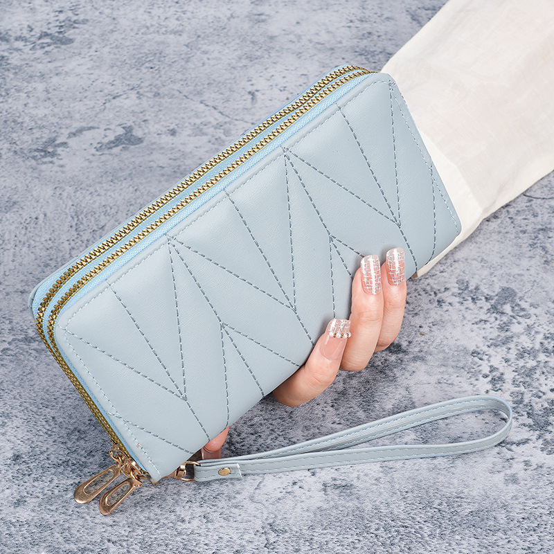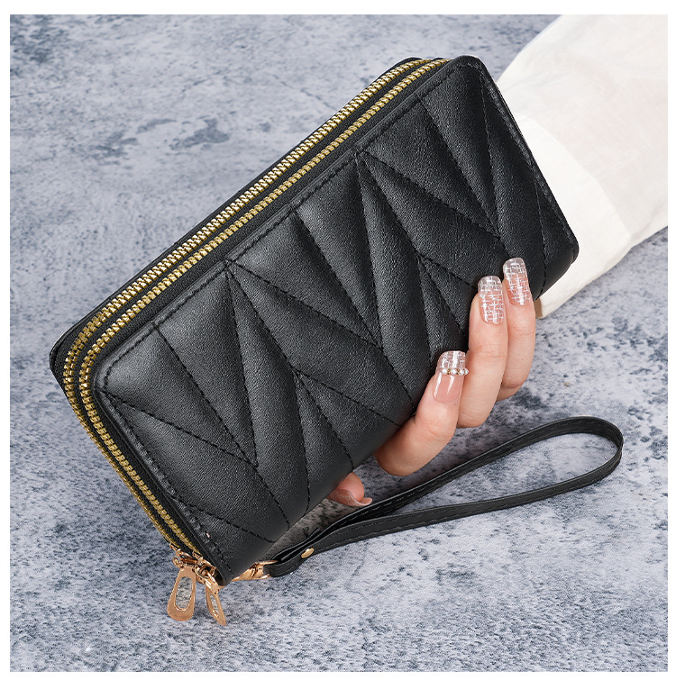 2024新款双拉拉链韩版pu长款零钱包大容量女士多卡拉链手拿手机包