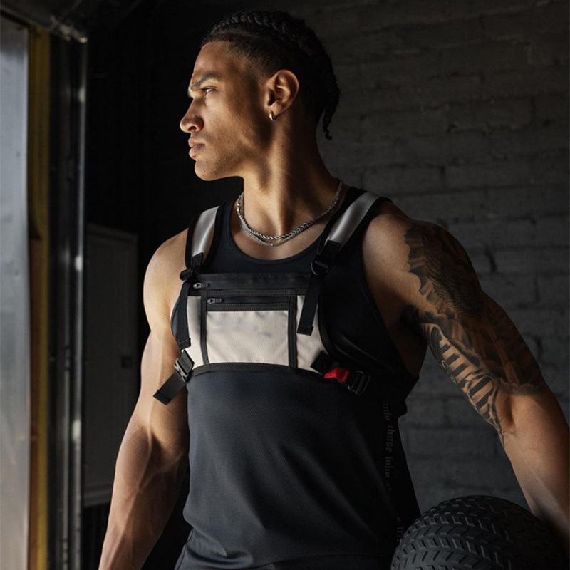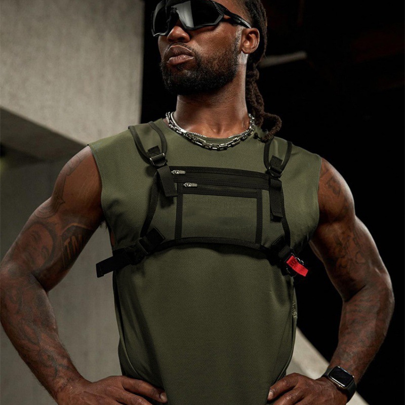 남자 조끼 가방 야외 스포츠 어깨 가슴 가방 조정 가능한 피트니스 방수 휴대 전화 가방 등산 가방