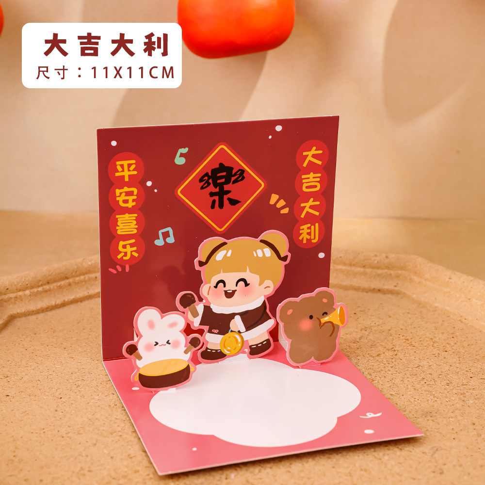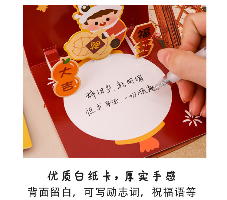 2025 년 설날 인사말 카드 고급 감각 스네이크 인사말 카드 3 차원 선물 메시지 카드 중국 스타일 축제 빨간 작은 카드