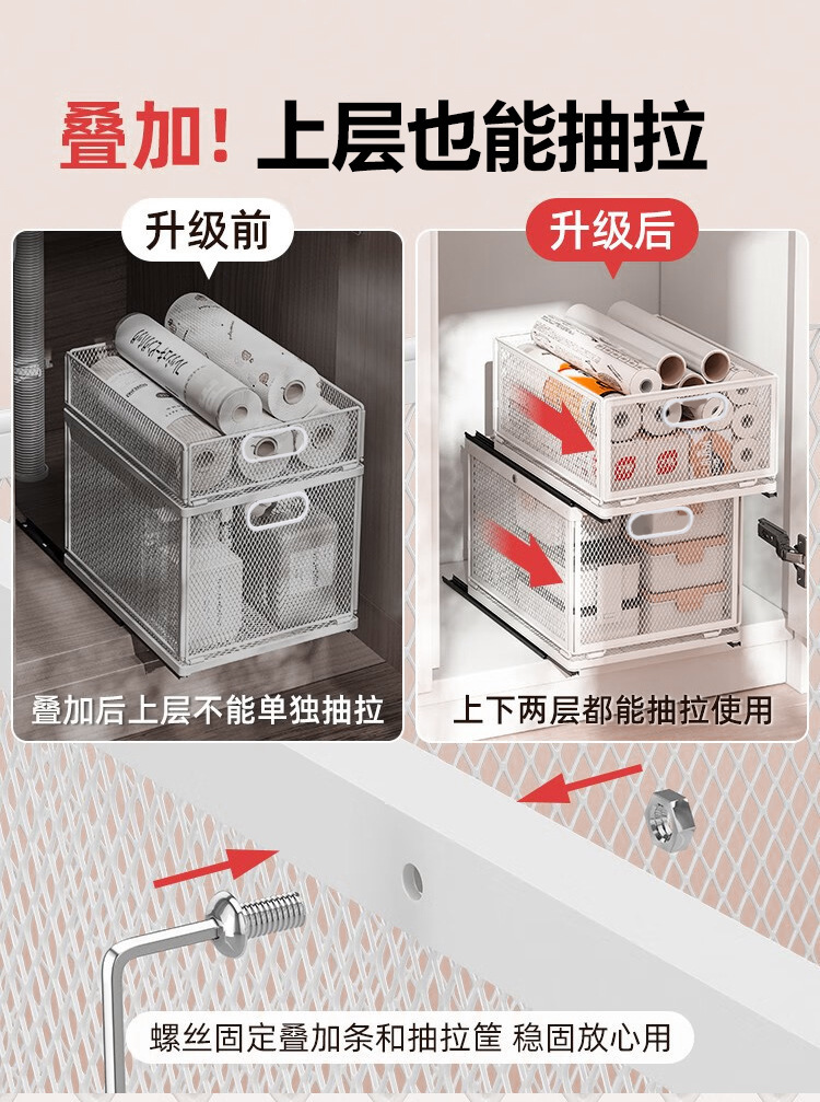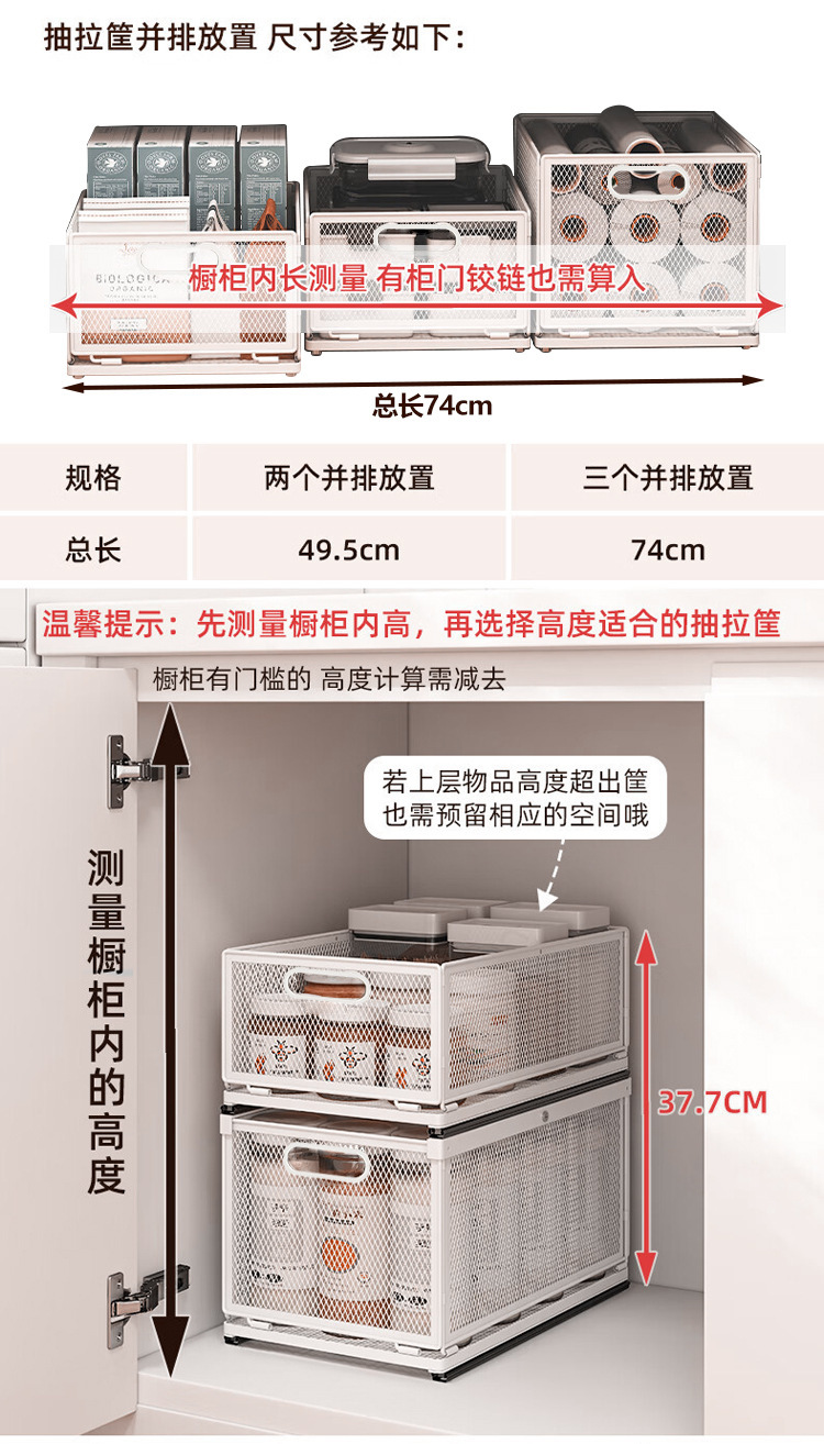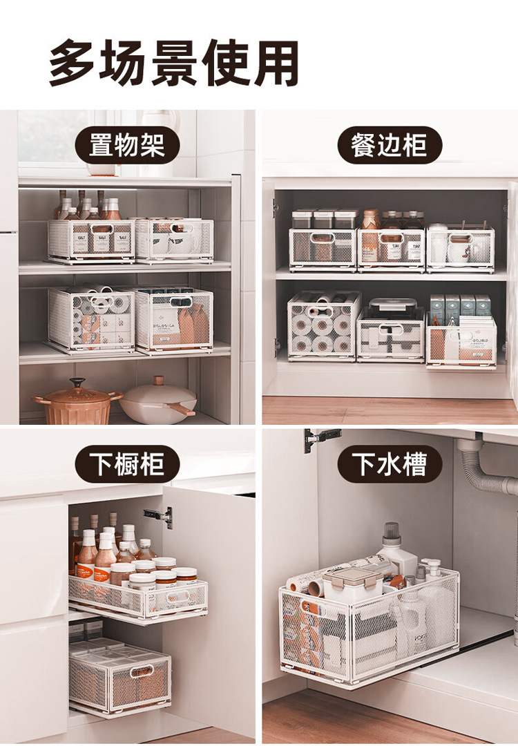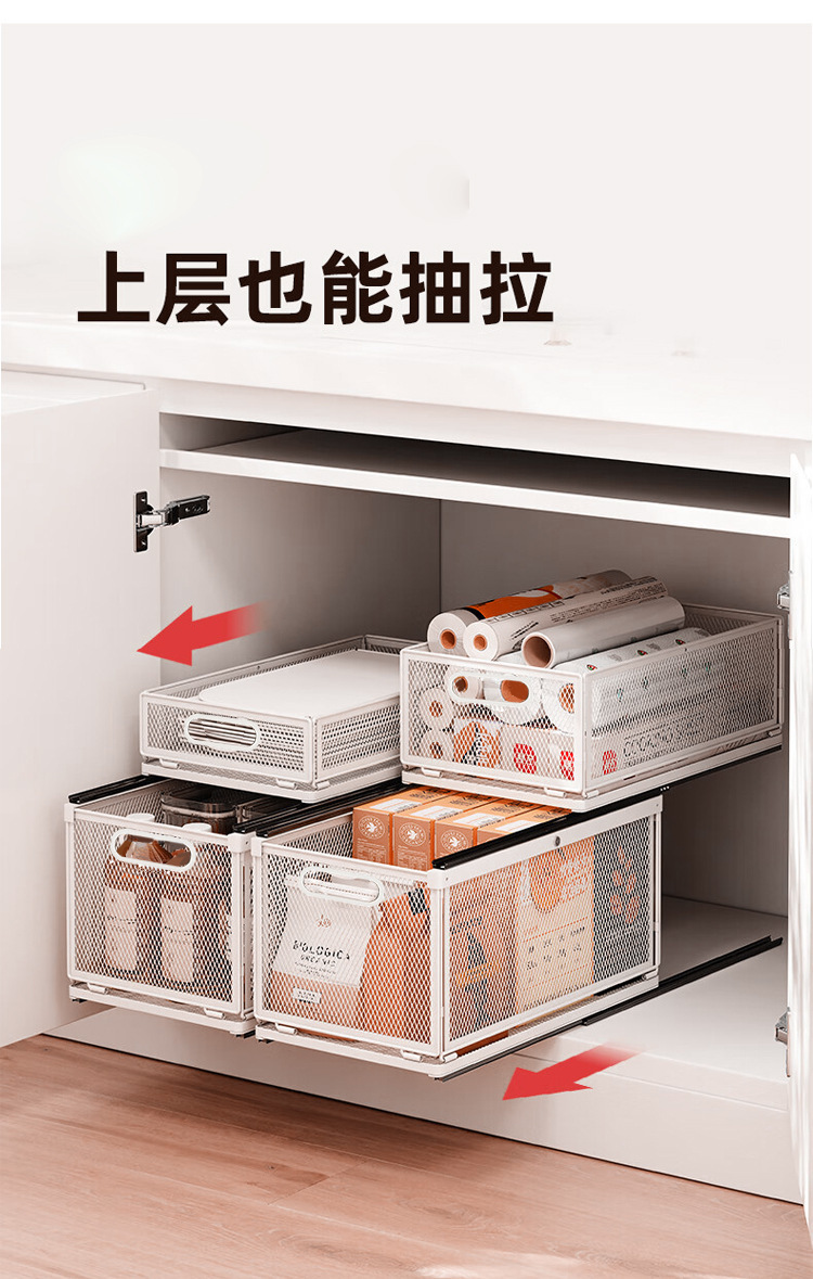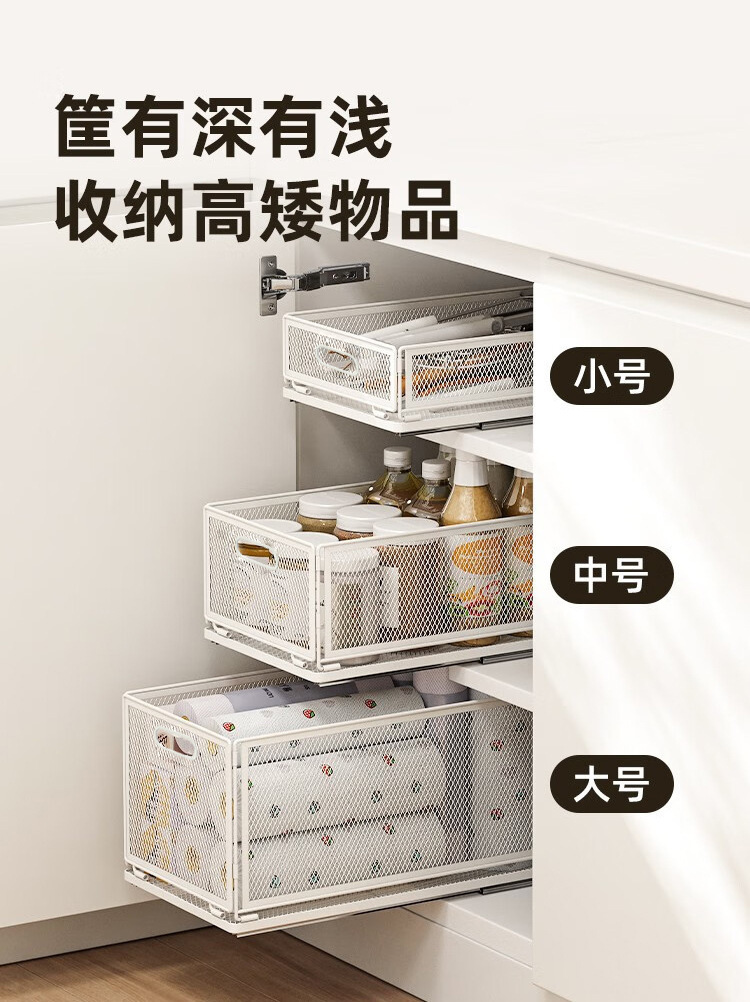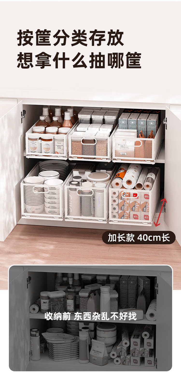 슬라이딩 바구니 수납 선반, 간식 보관 바구니, 다층 주방 양념병 및 캐비닛 내부 다층 수납스토어 가기