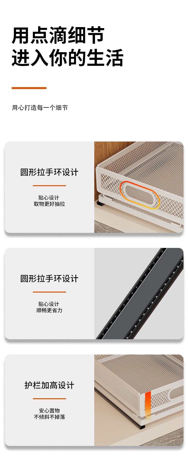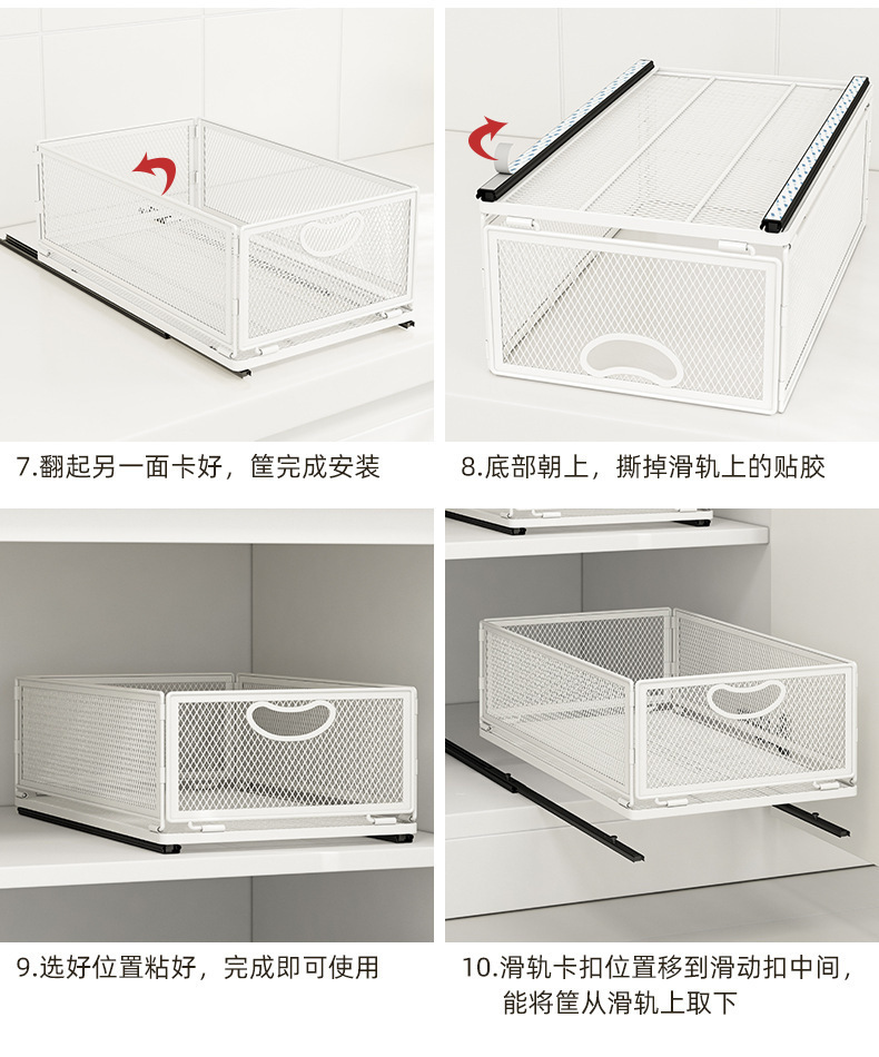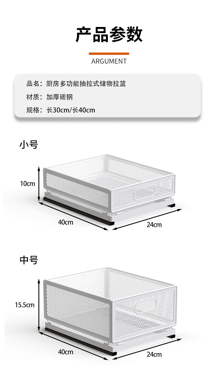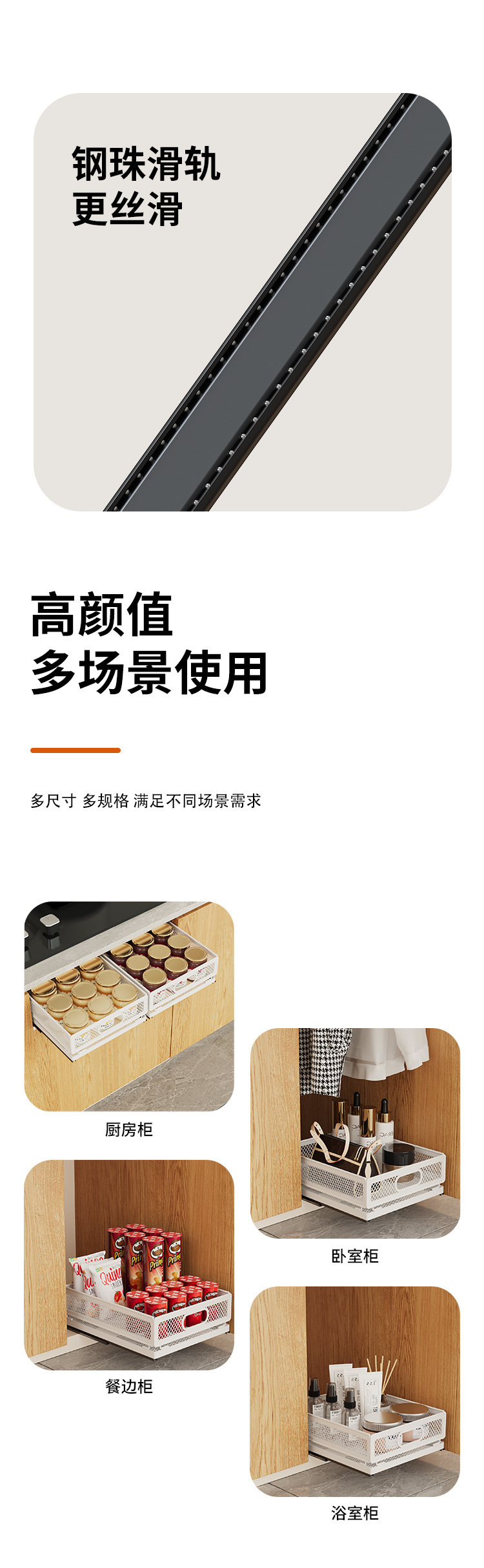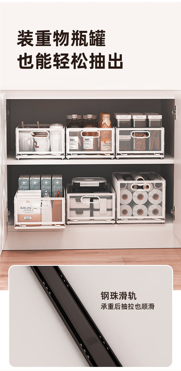 슬라이딩 바구니 수납 선반, 간식 보관 바구니, 다층 주방 양념병 및 캐비닛 내부 다층 수납