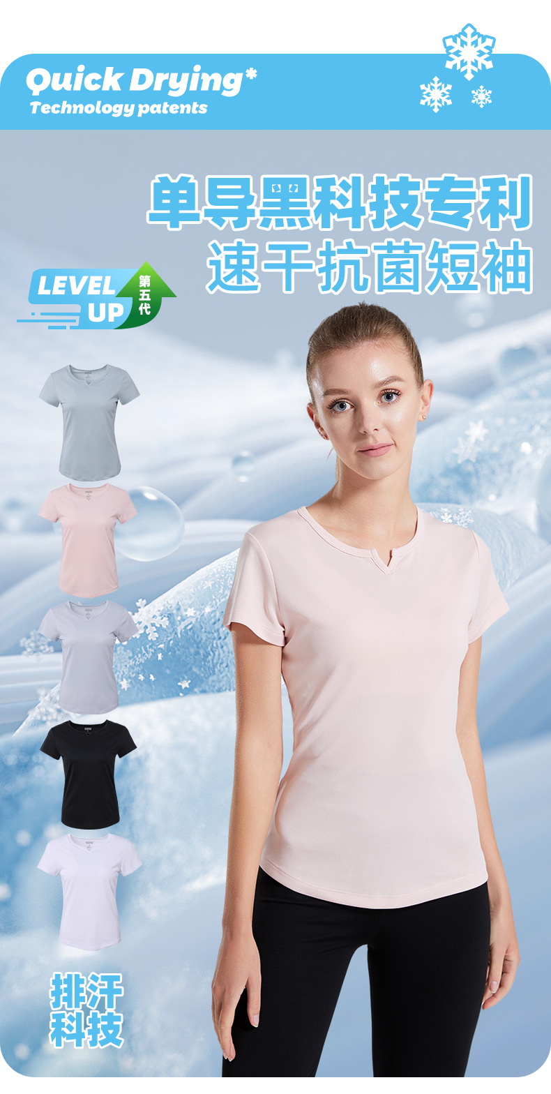 速干T恤瞬吸单向导湿女款小V领抗菌健身户外跑步运动透气防晒短袖