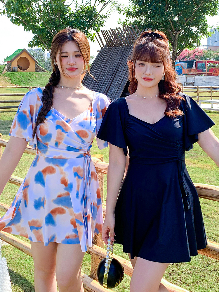 온천 수영복 여성 플러스 사이즈 통통녀 보수적 인 슬림 블랙 200kg 원피스 스커트 2025 새 수영복스토어 가기