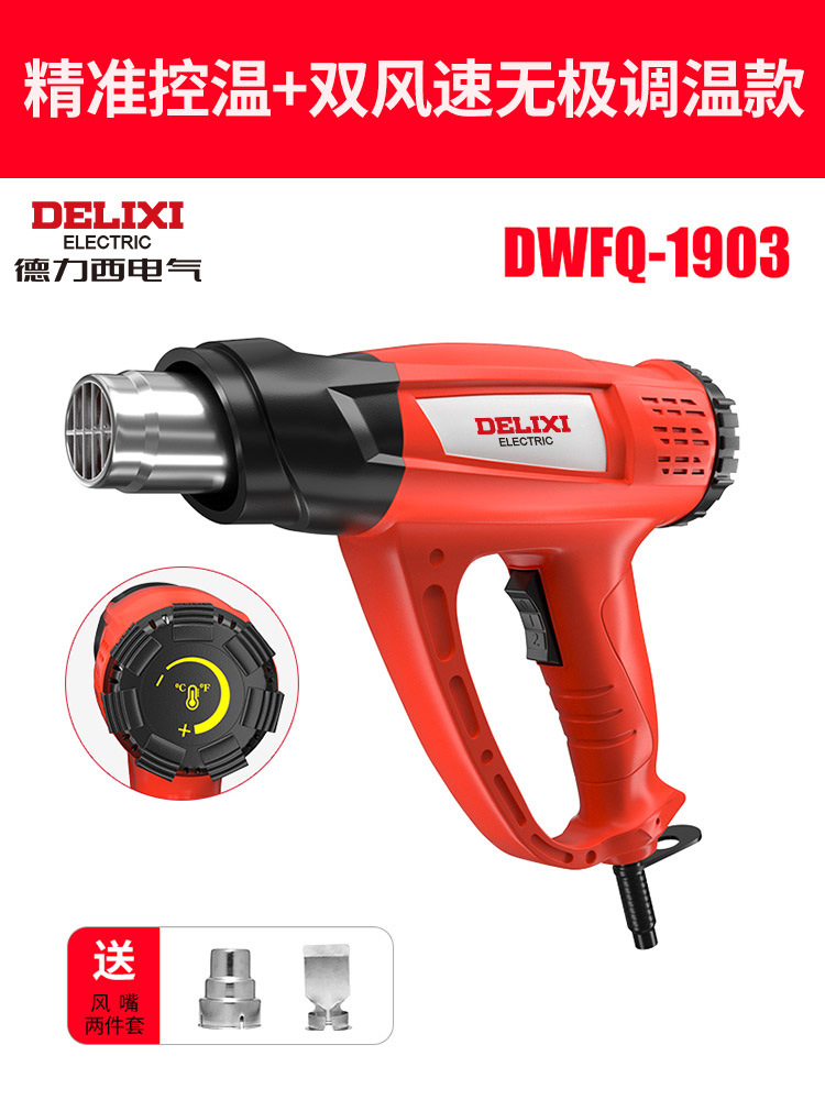 Delixi 뜨거운 공기 총 소형 필름 휴대용 베이킹 고출력 재봉 열 수축 필름 산업용 헤어 드라이어 베이킹 건