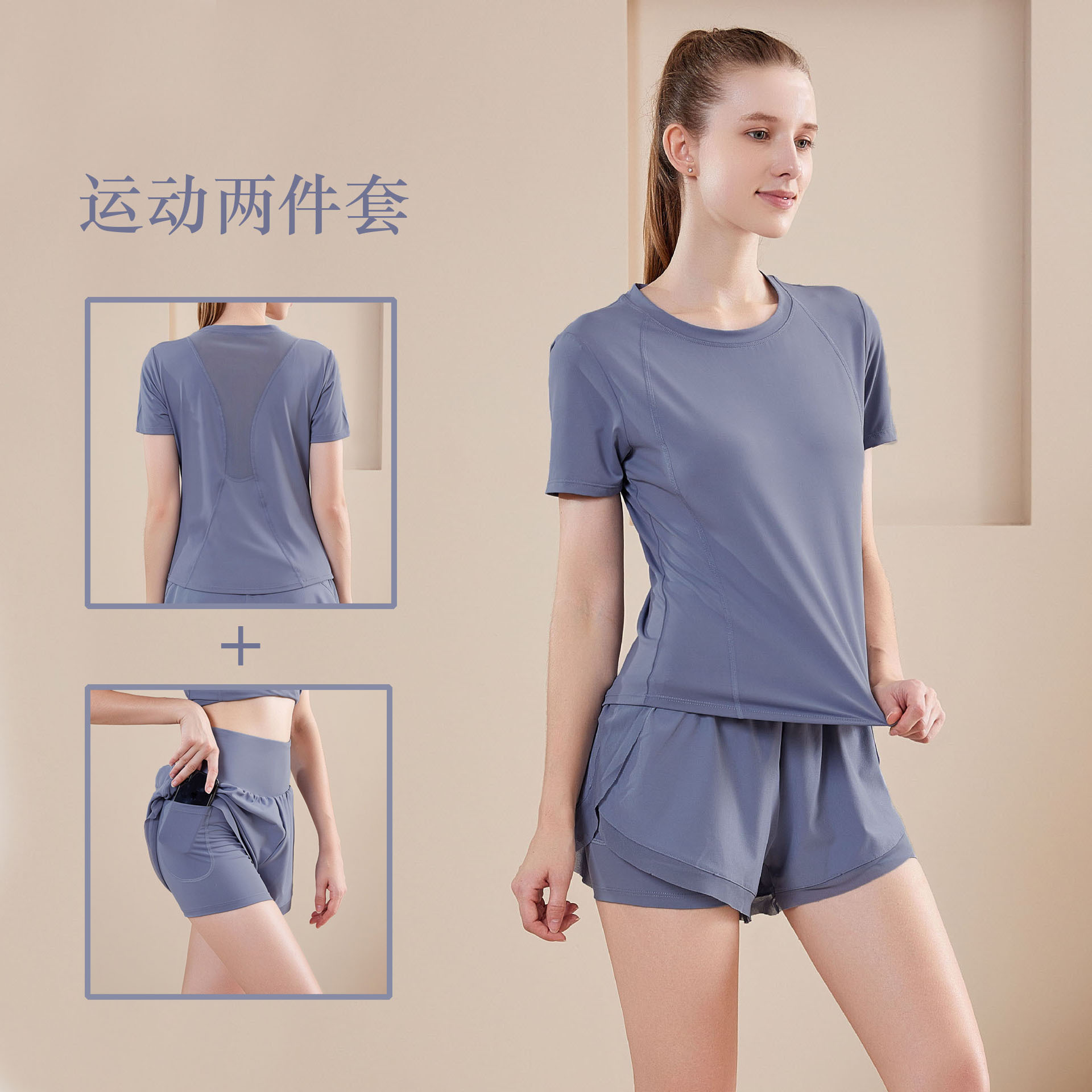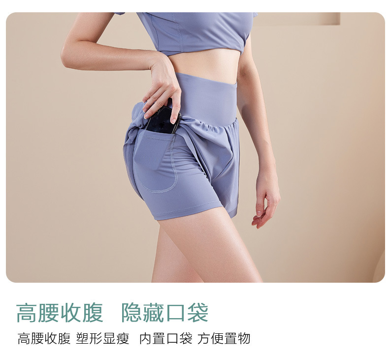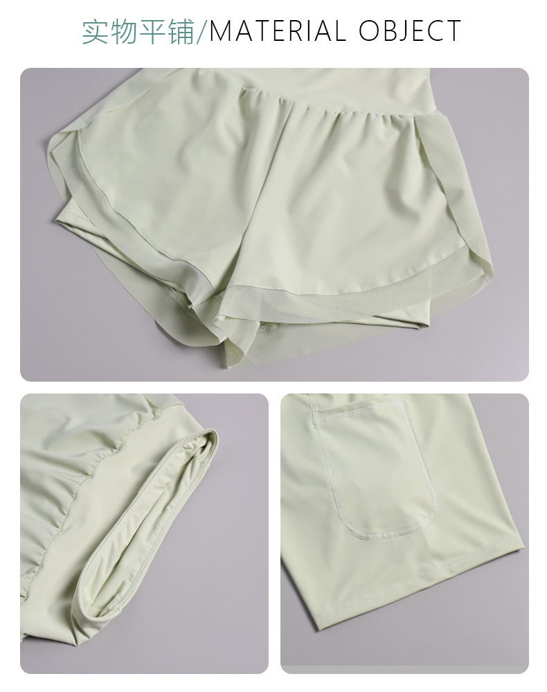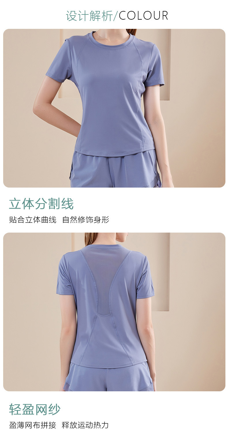 새로운 스포츠 세트 여성의 빠른 드라이 러닝 투피스 통기성 피트니스 반팔 가짜 투피스 반바지 국경 간 요가 세트