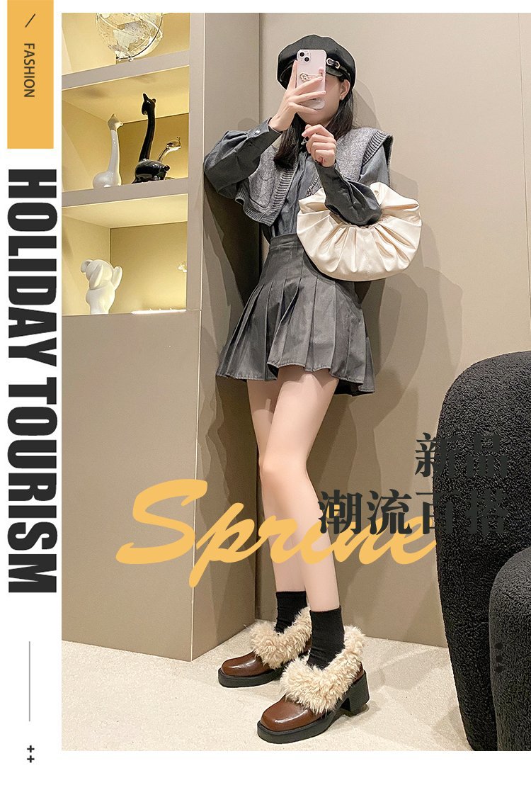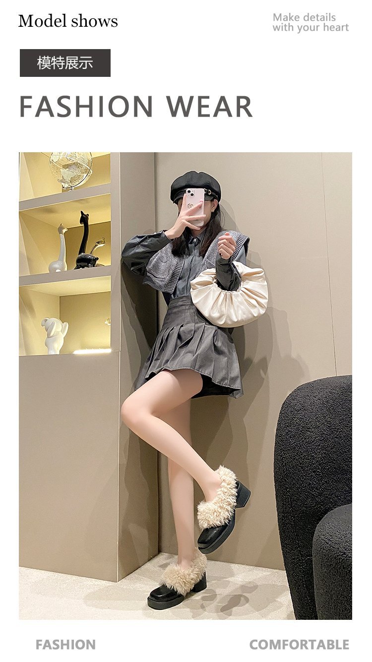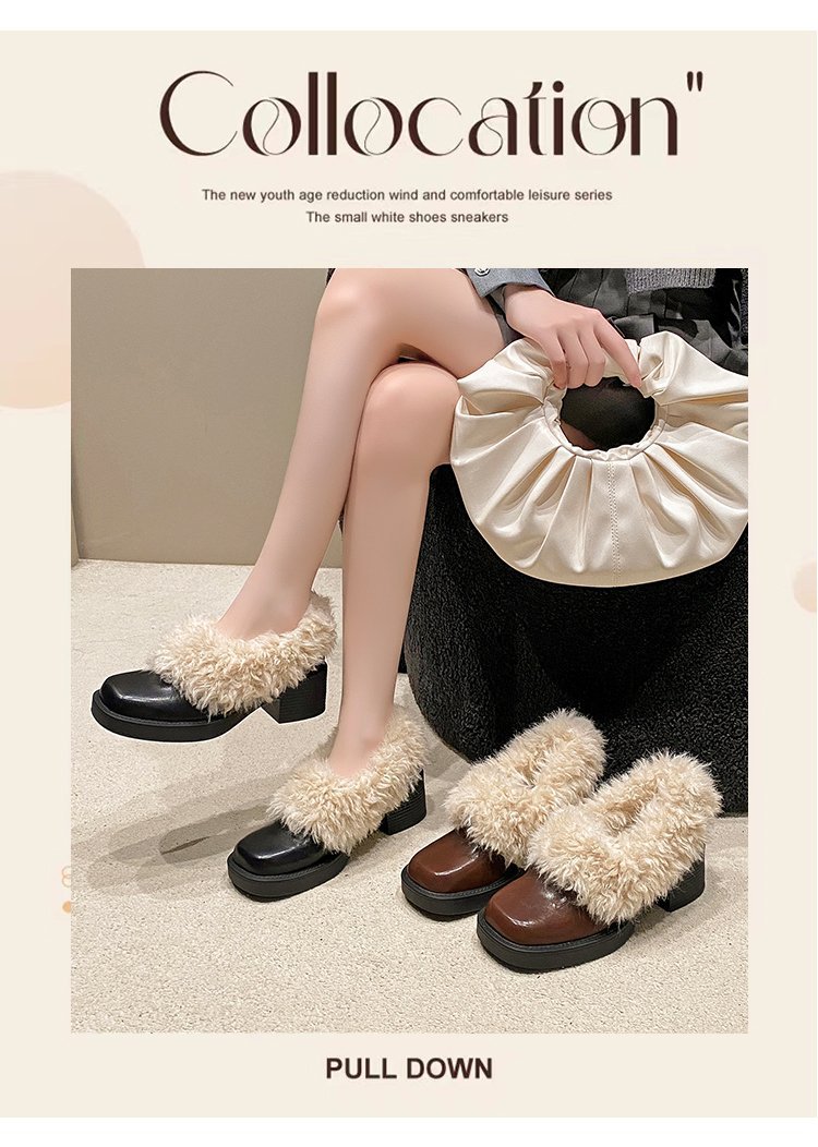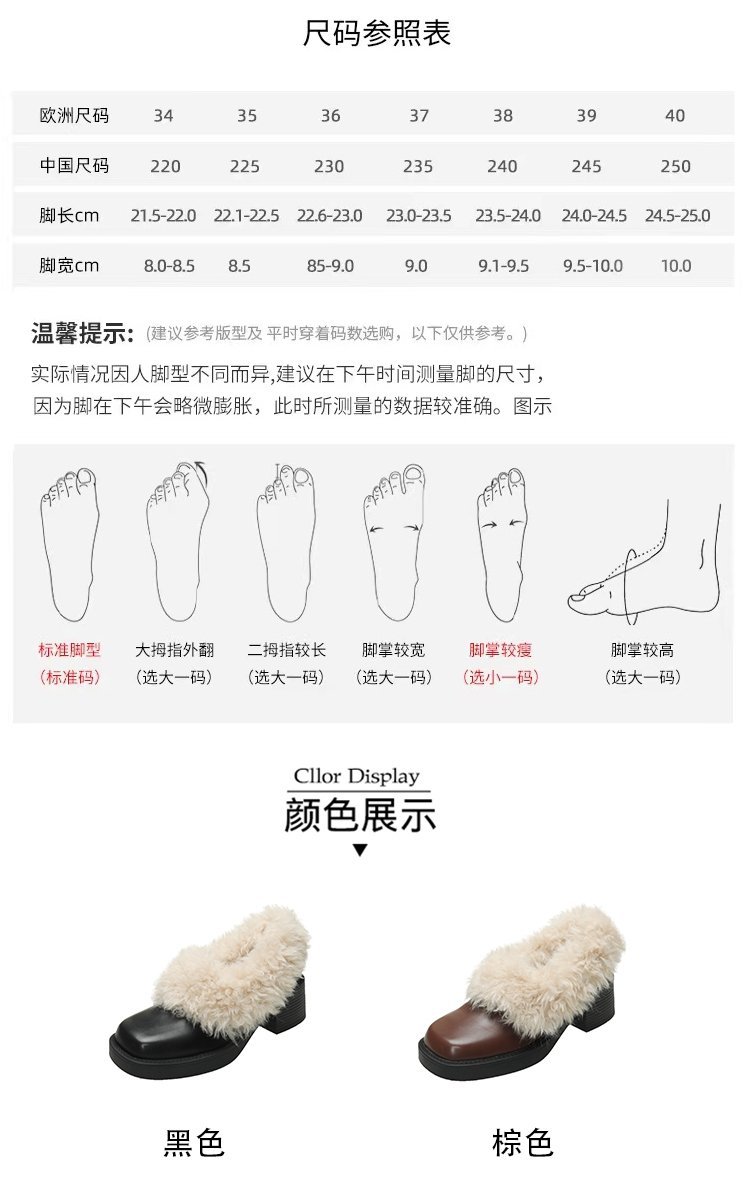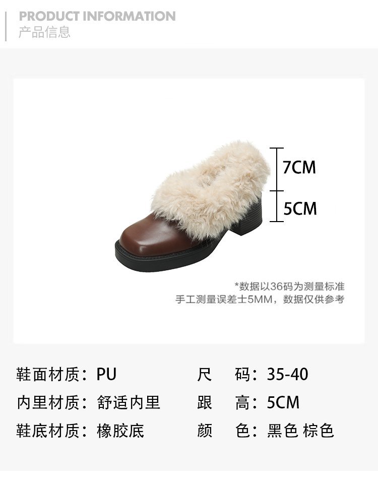 [Youshilai] 스퀘어 헤드 기모 메리 제인 싱글 슈즈 여성 2024 년 겨울 새 얕은 입 두꺼운 힐링 달콤한 작은 가죽 신발스토어 가기