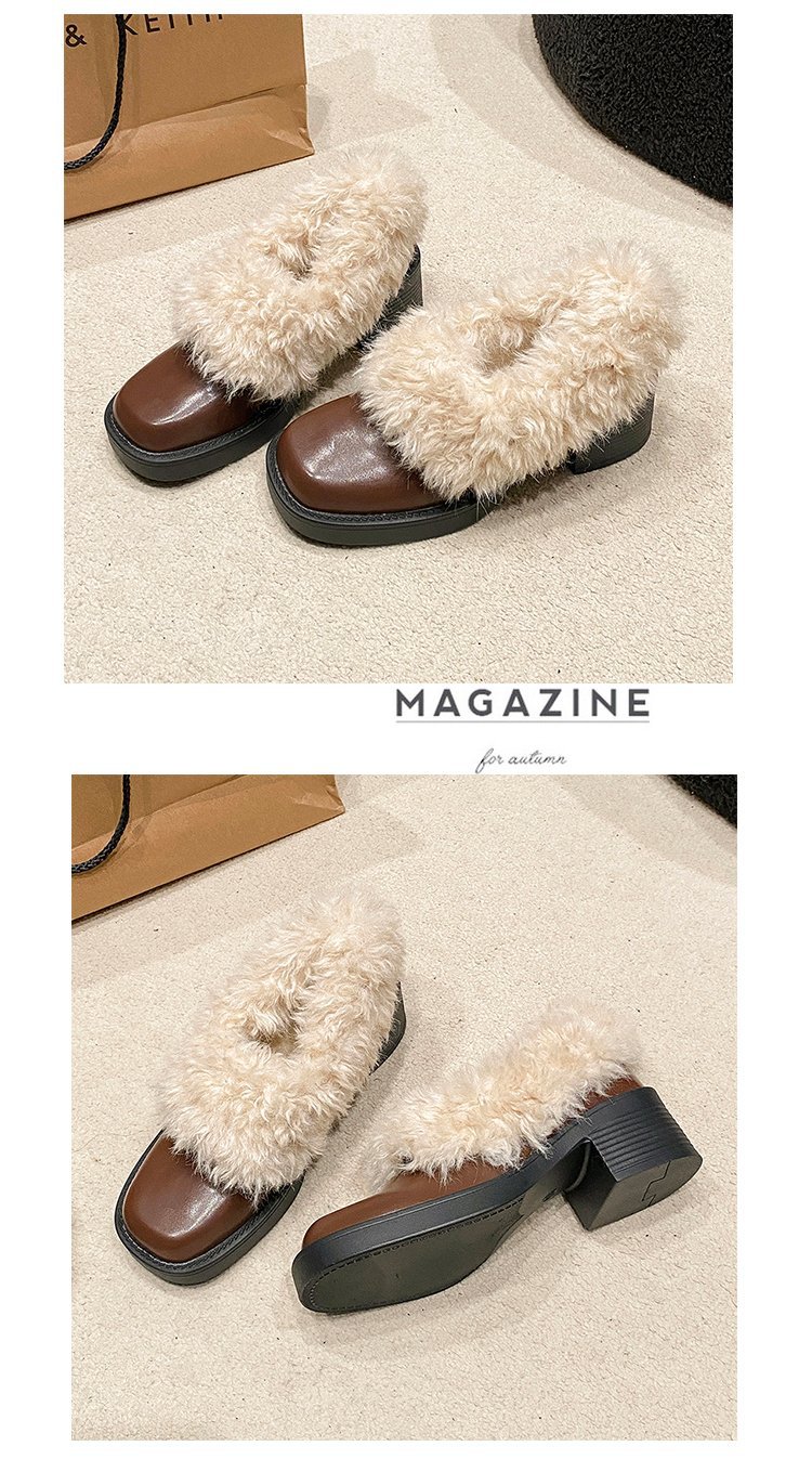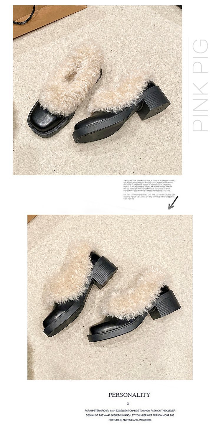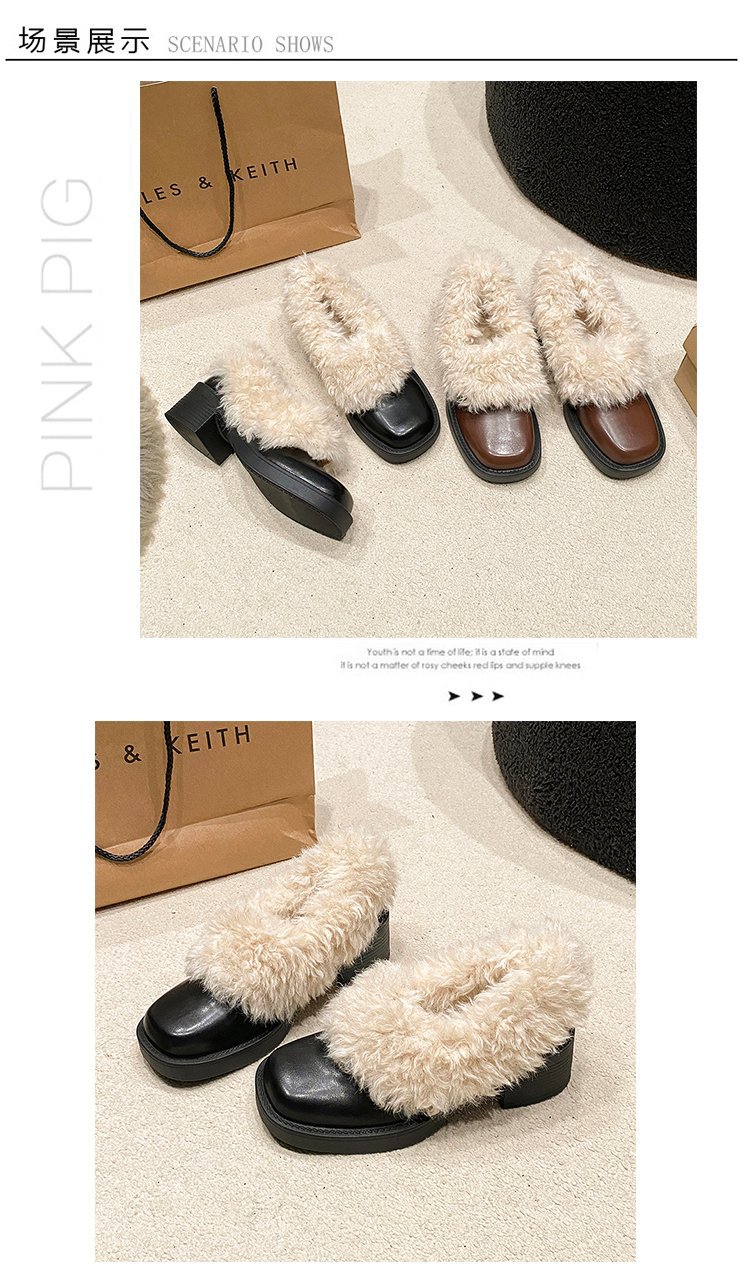 [Youshilai] 스퀘어 헤드 기모 메리 제인 싱글 슈즈 여성 2024 년 겨울 새 얕은 입 두꺼운 힐링 달콤한 작은 가죽 신발