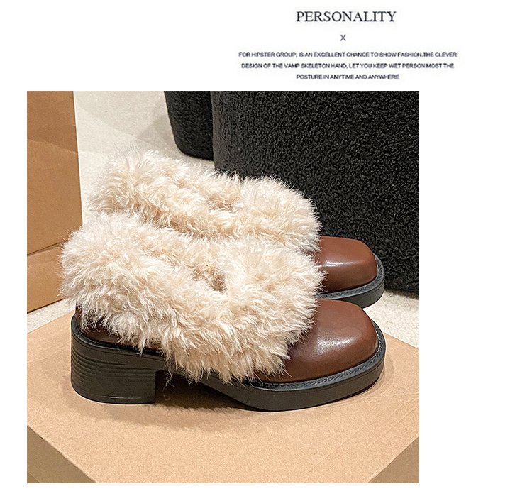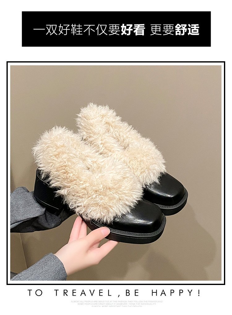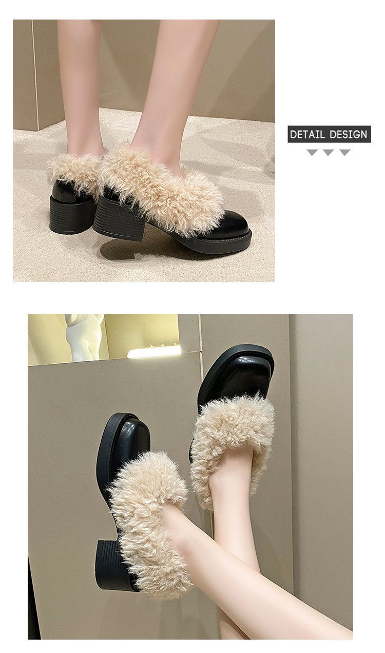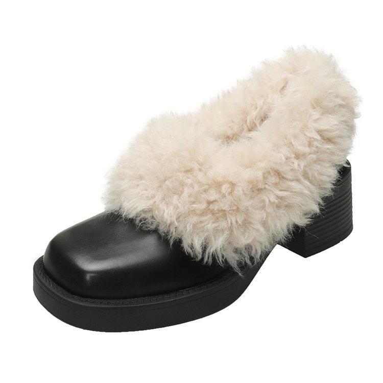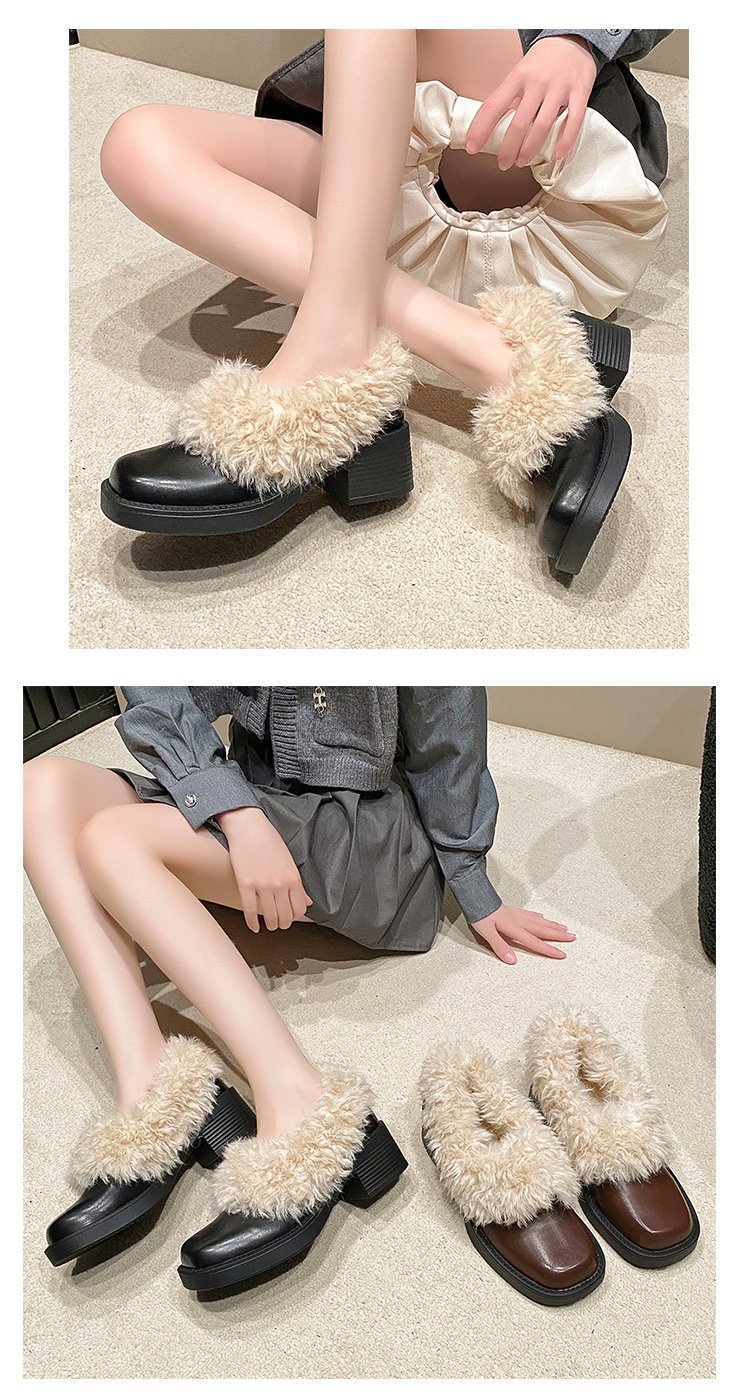 [Youshilai] 스퀘어 헤드 기모 메리 제인 싱글 슈즈 여성 2024 년 겨울 새 얕은 입 두꺼운 힐링 달콤한 작은 가죽 신발