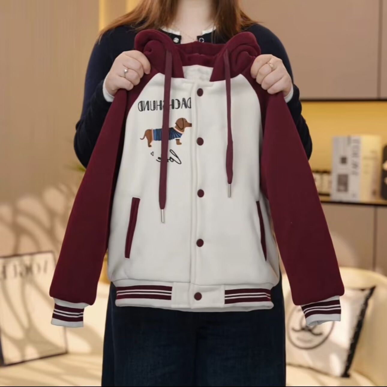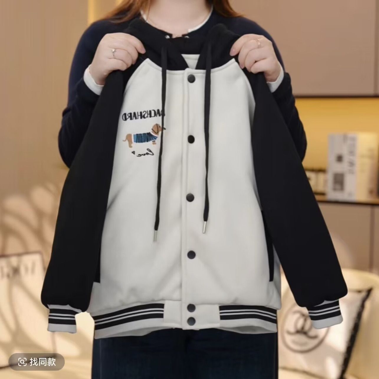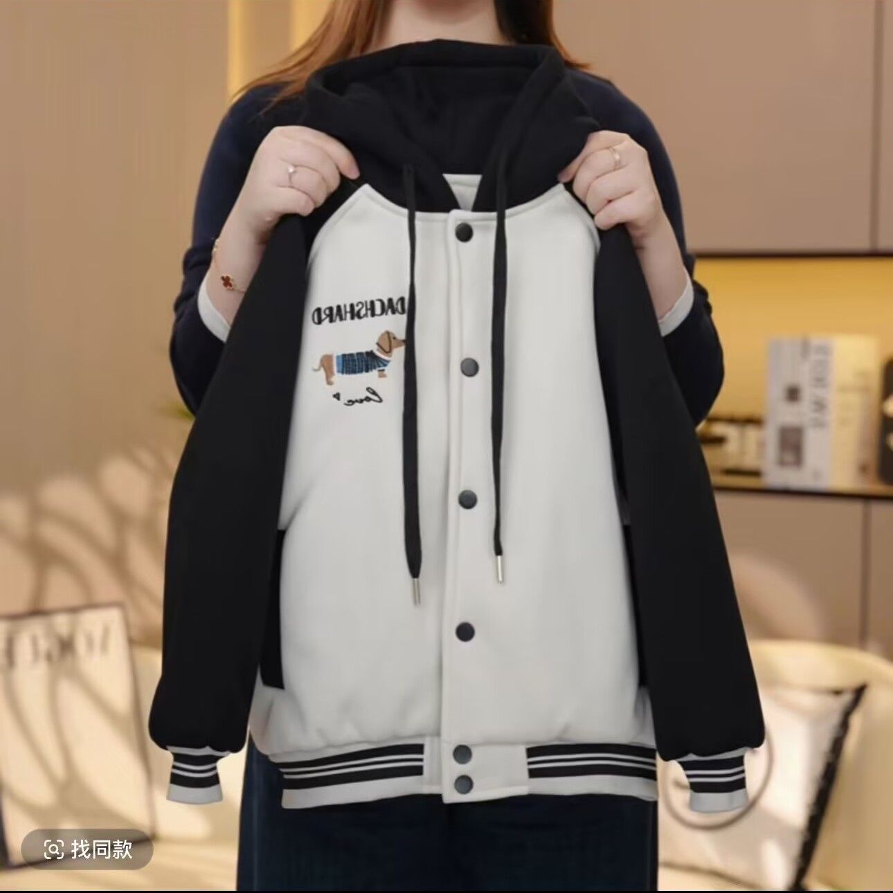 가을 2024 년 새 여아 후드 야구 세트 한국 스타일 서양식 캐주얼 패션 컬러 블록 재킷 코트