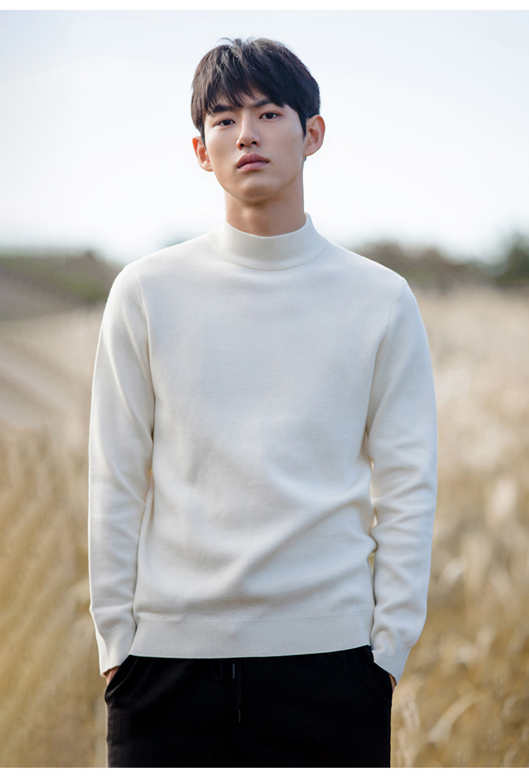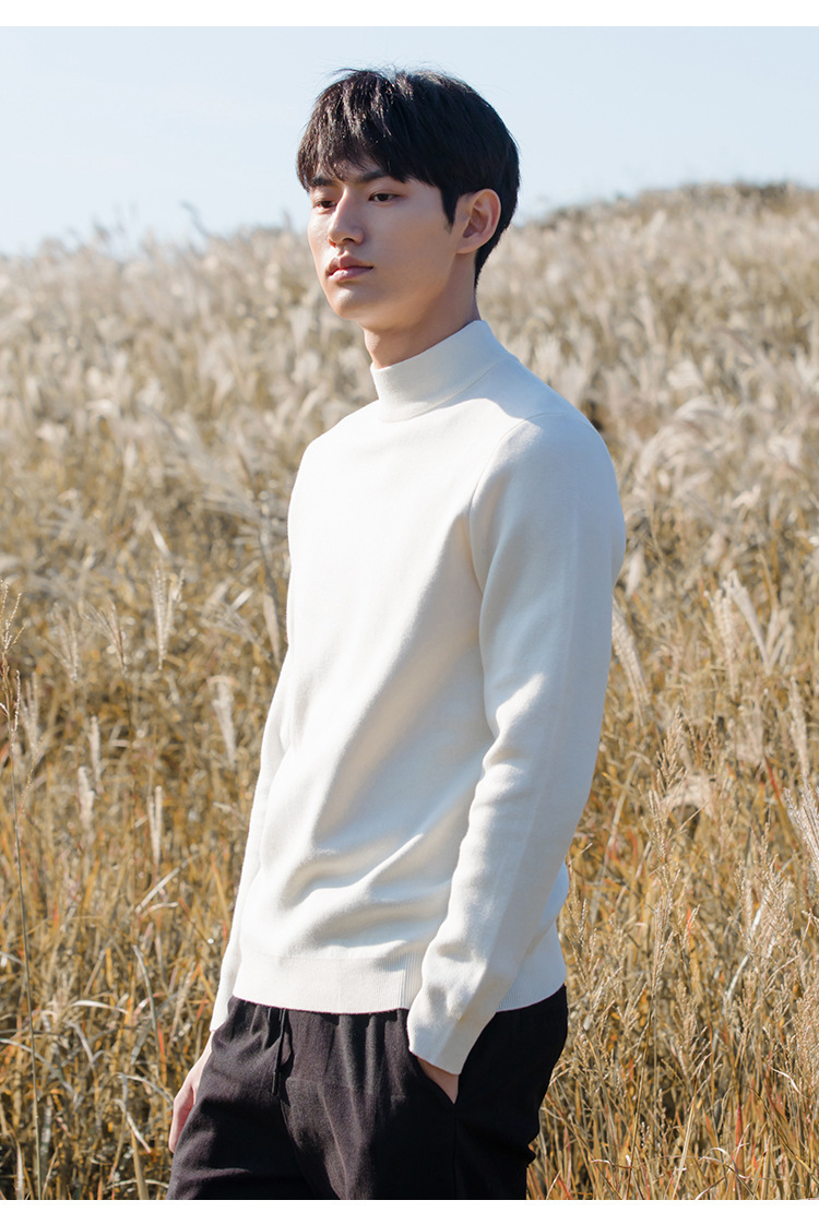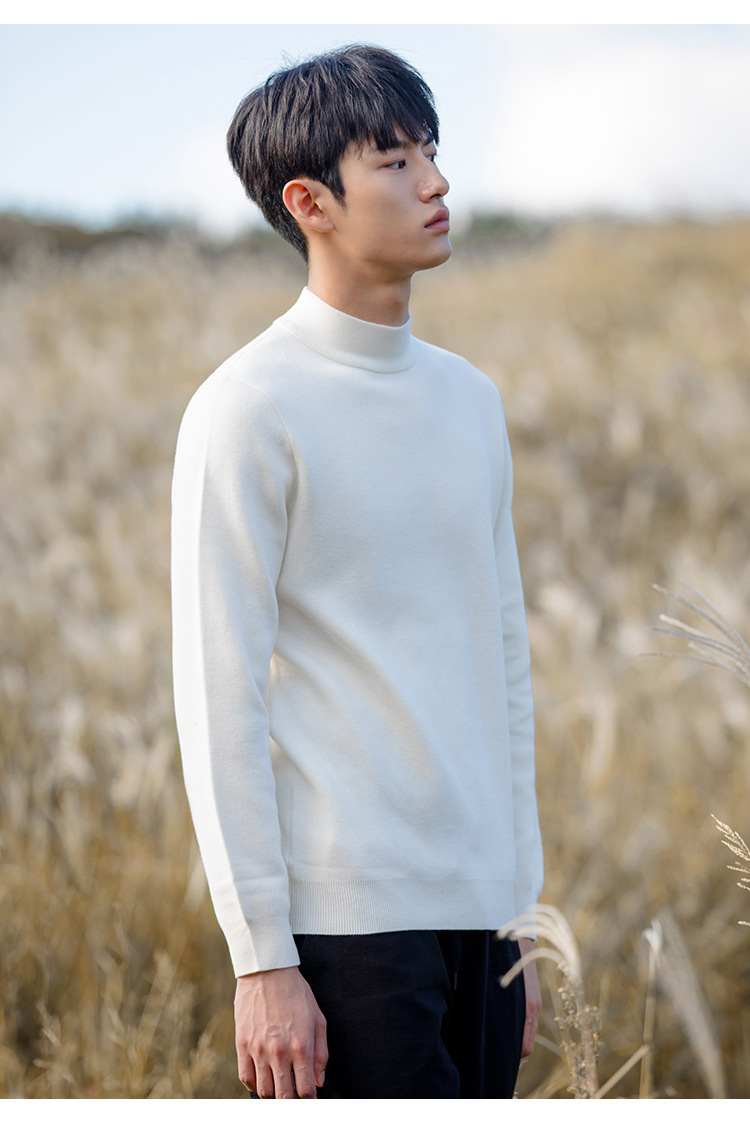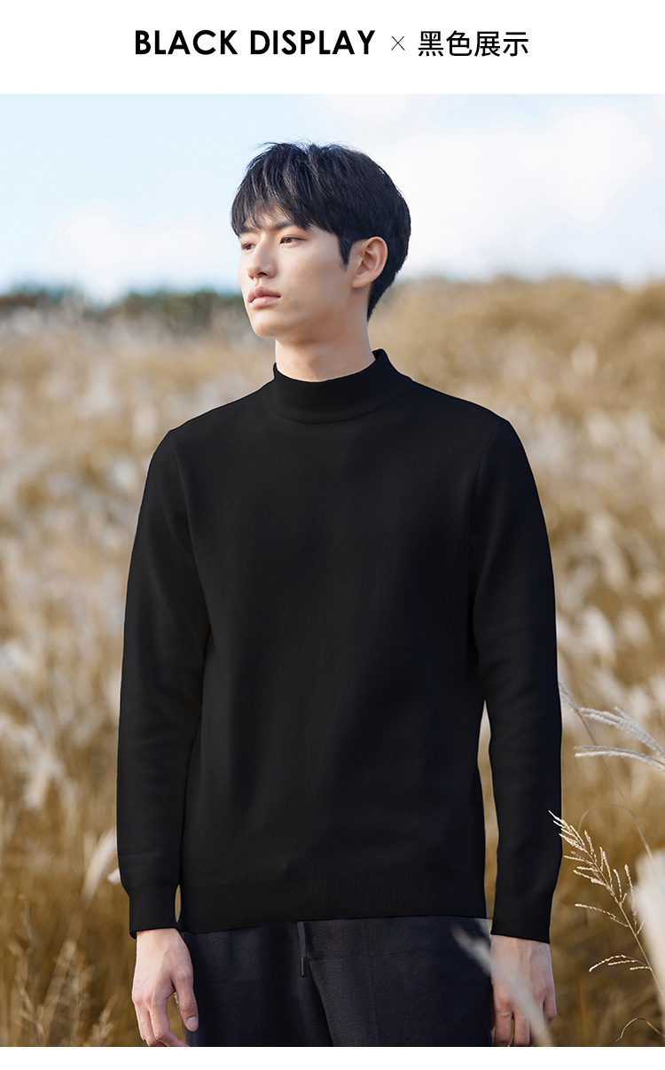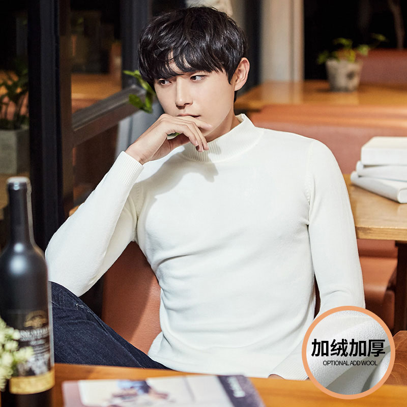 남자 한국식 블랙 화이트 터틀넥 스웨터 봄과 가을 뉴 하프 터틀넥 베이스 스웨터 기모 트렌디스토어 가기