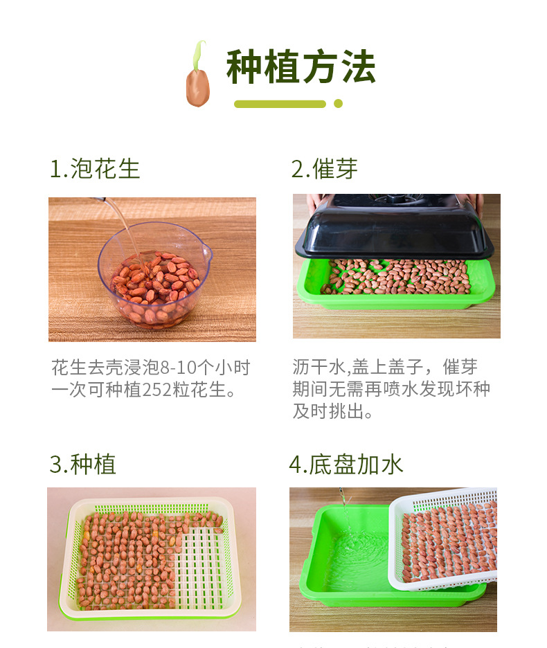 땅콩 새싹 심기 쟁반 상자 유물 특수 종자 무염 수경 상자 Germinal 콩 새싹 야채 기계 묘목 냄비스토어 가기