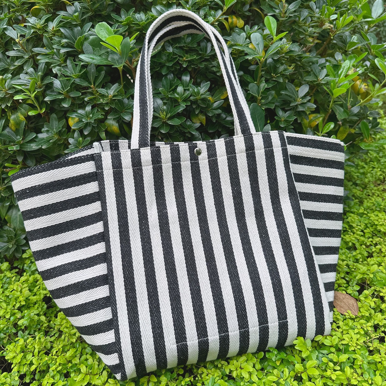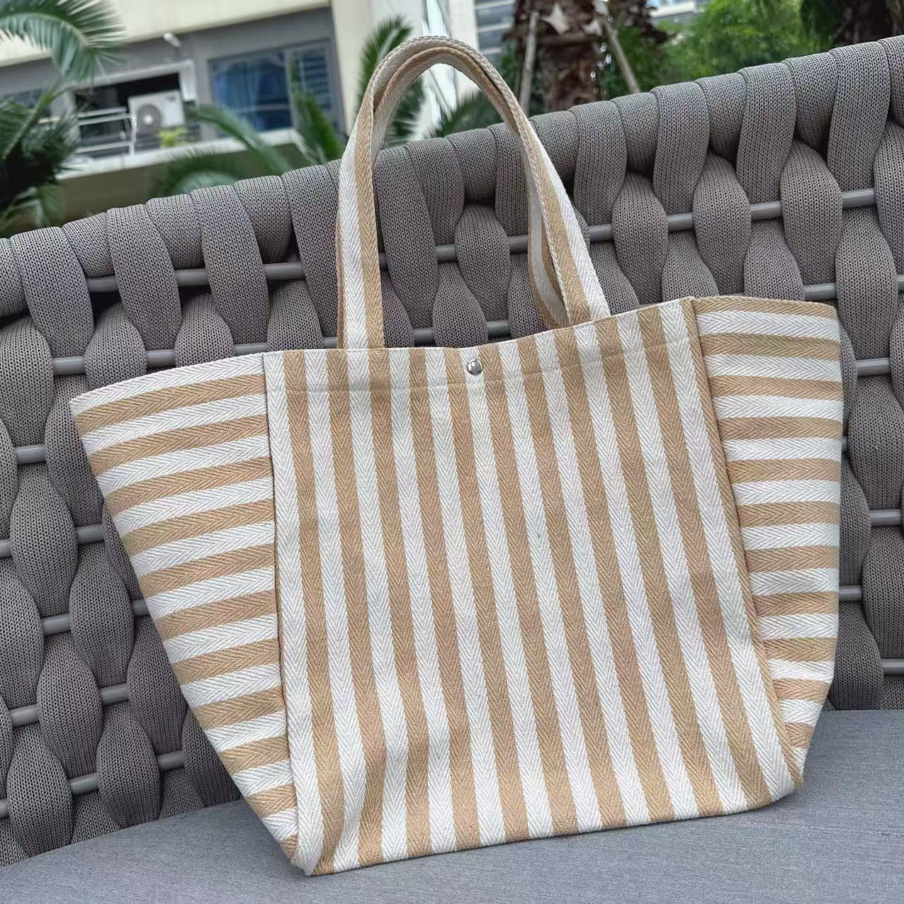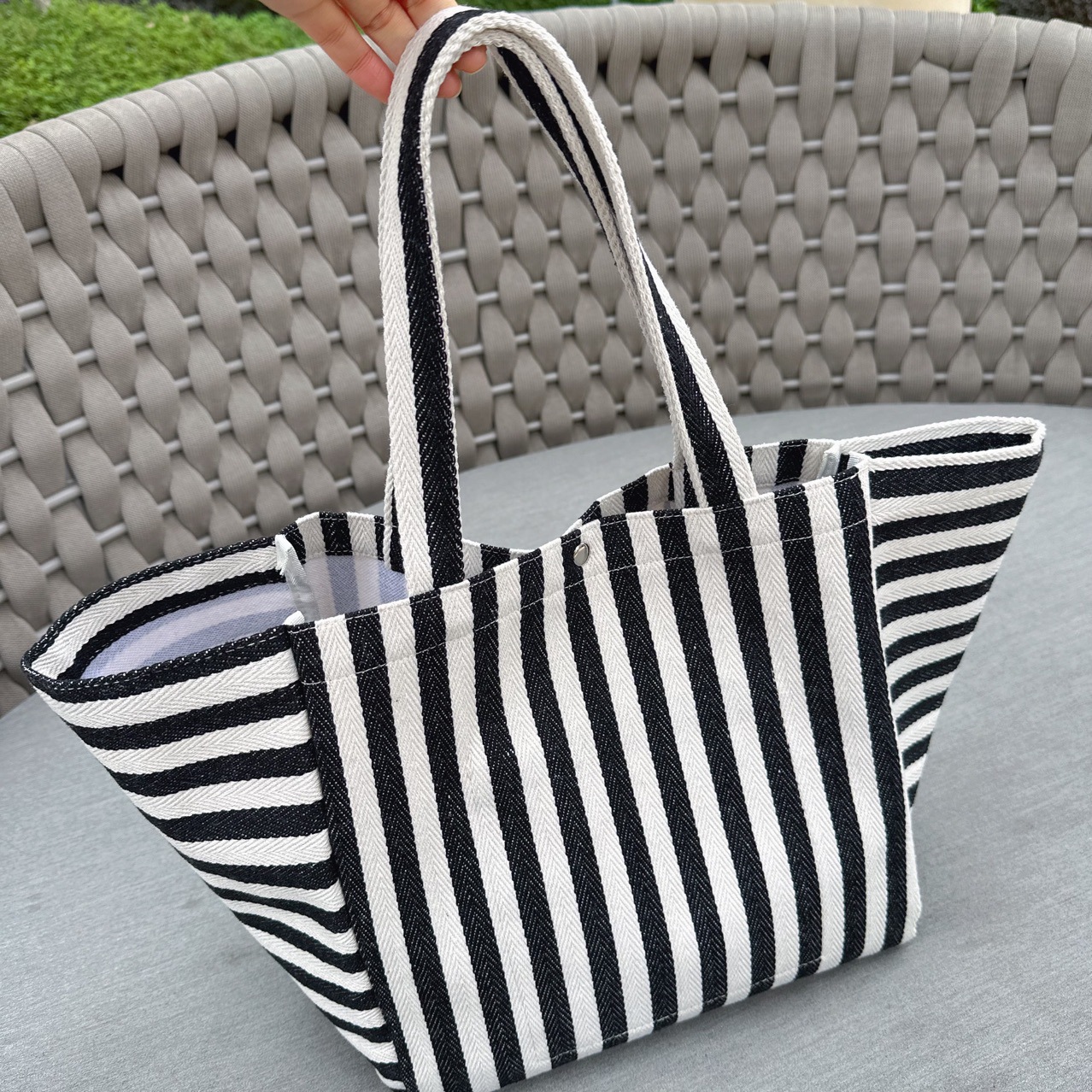 심플한 한국 스타일 스트라이프 아트 토트백 2025 봄 여름 신선하고 캐주얼한 대용량 숄더백 복고풍 통근용스토어 가기