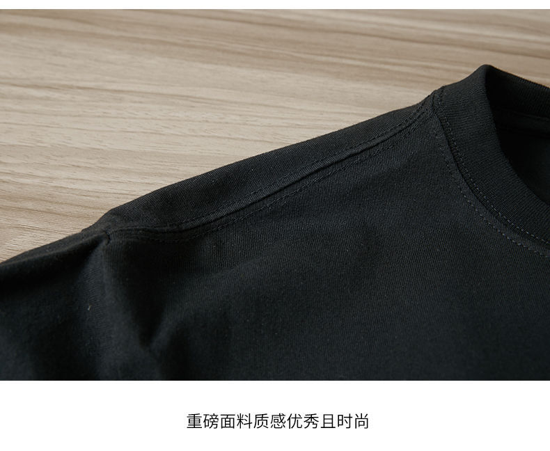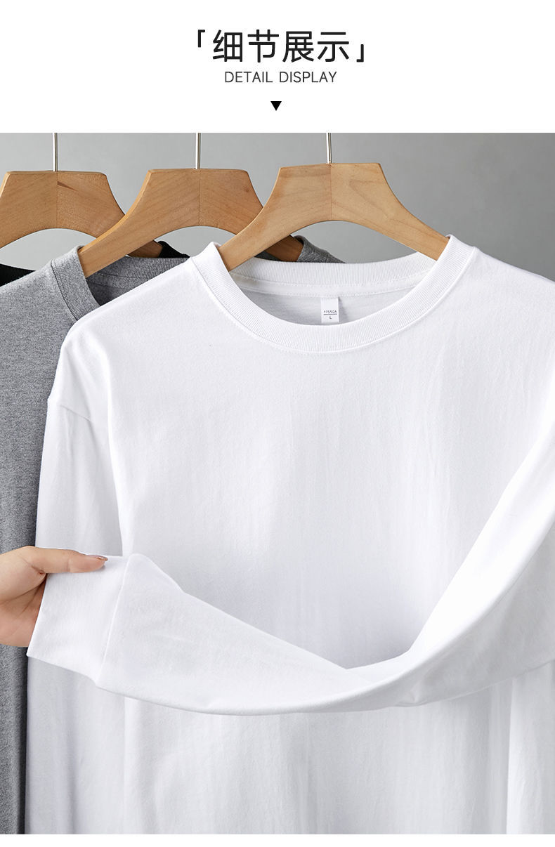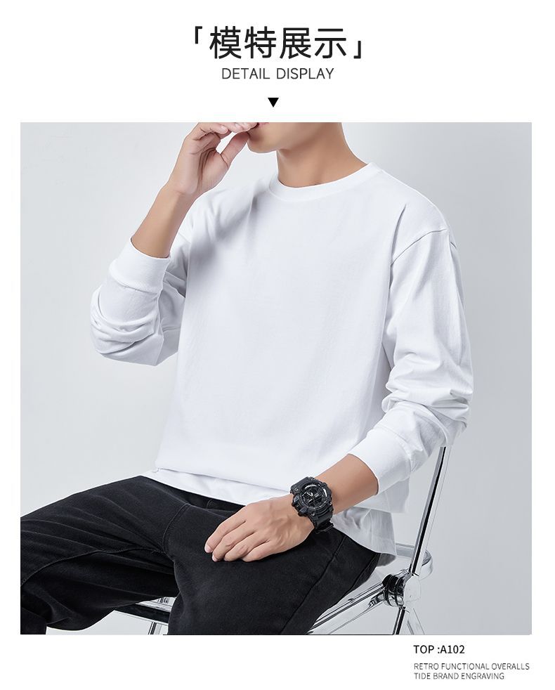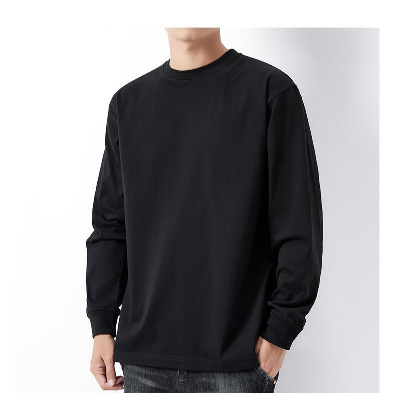 무거운 400 g면 긴 소매 남성용 둥근 목 단색 티셔츠 두꺼운 불투명 한 편안한 실 커프베이스 셔츠스토어 가기
