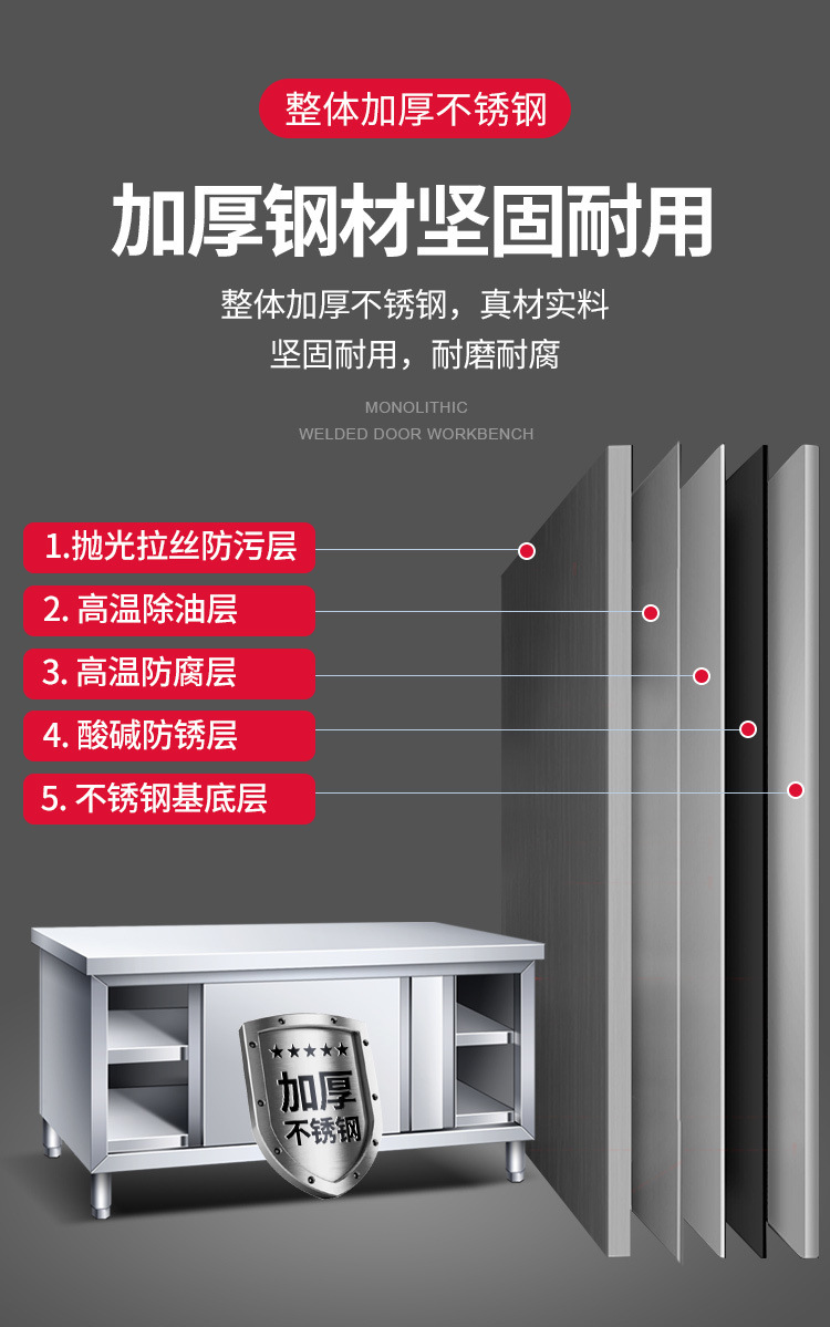 통합 용접 304 엑스트라 두꺼운 작업대 스테인레스 스틸 주방 가정용 캐비닛 콘솔 호텔 그릇 당김 문