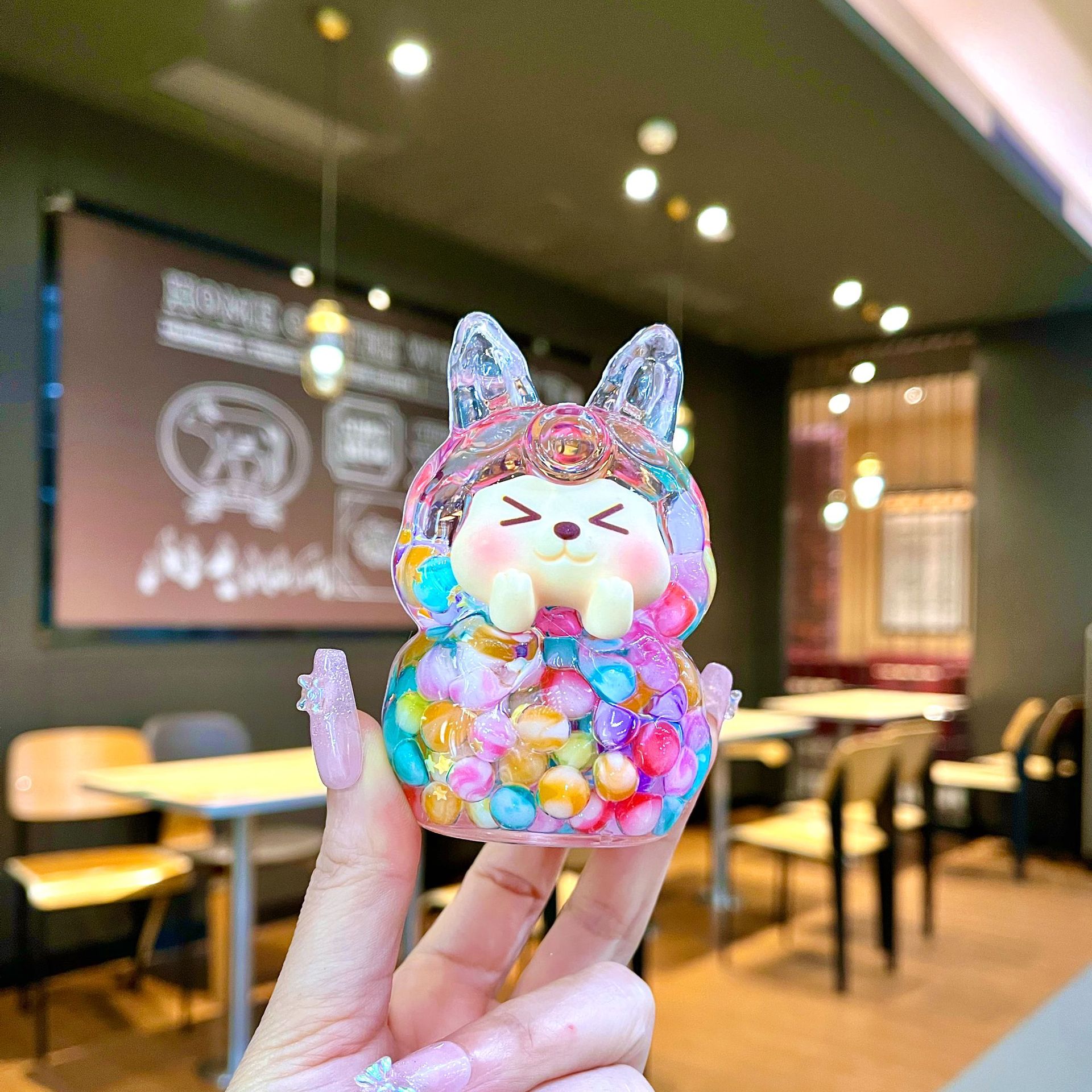 새로운 Douyin 잉어 kiki 귀여운 KK 우유 콩 유사 병 오일 유행 diy 쥬얼리 대형 데스크탑 장식품스토어 가기