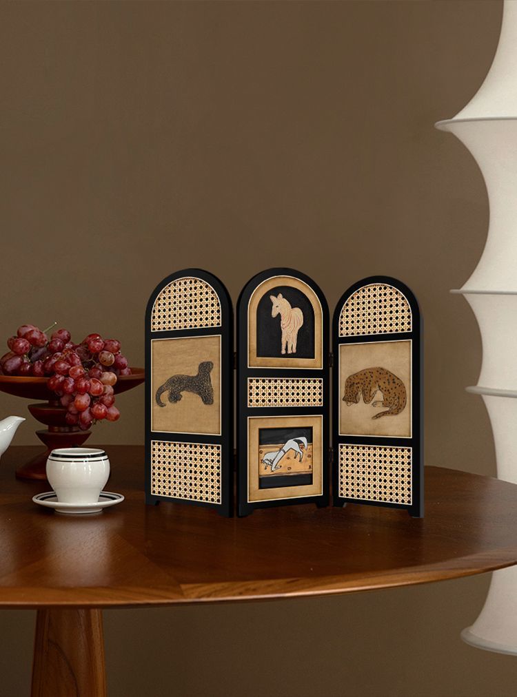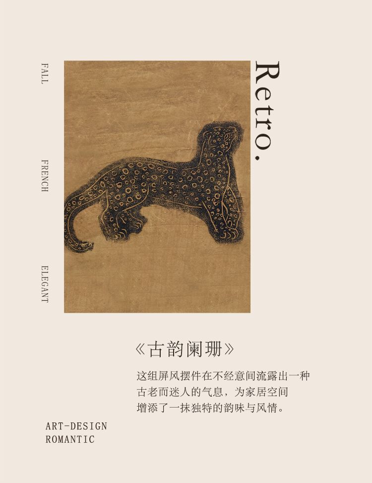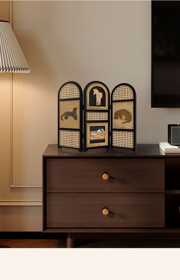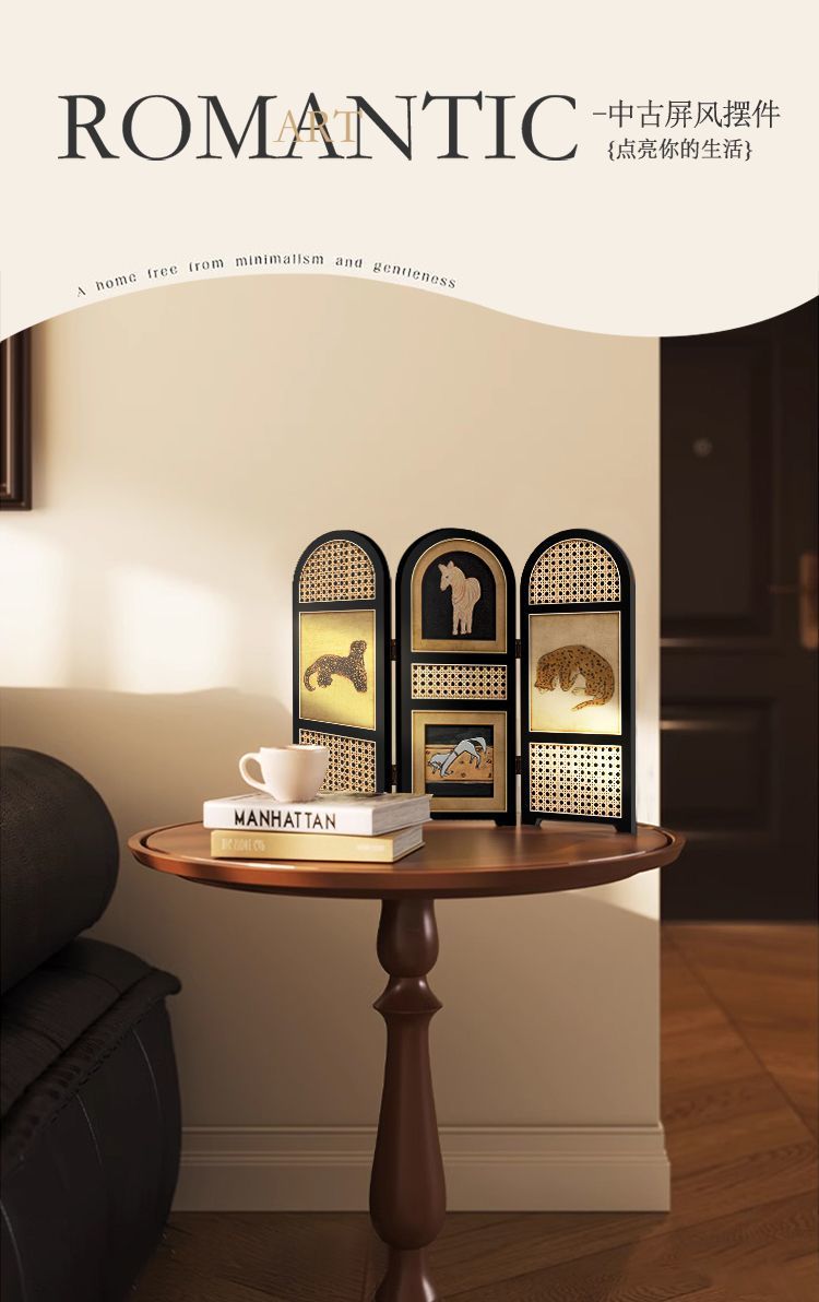 중간 고대 스타일 데스크탑 화면 작은 스윙 페인팅 장식품 레트로 레오파드 장식 그림 TV 내각 입구 캐비닛 가장자리 장식 그림