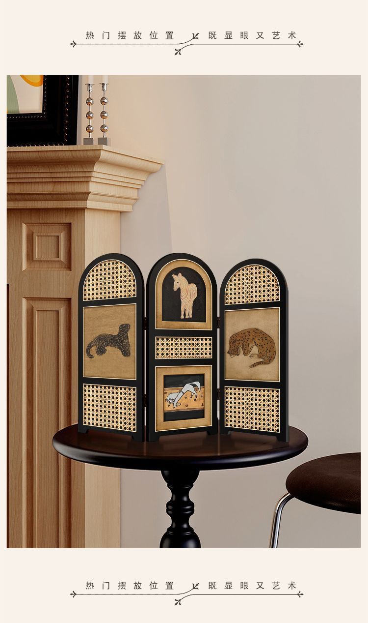 중간 고대 스타일 데스크탑 화면 작은 스윙 페인팅 장식품 레트로 레오파드 장식 그림 TV 내각 입구 캐비닛 가장자리 장식 그림스토어 가기