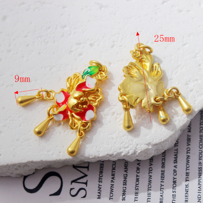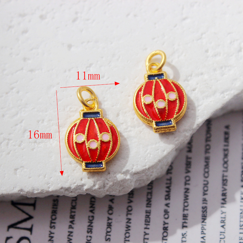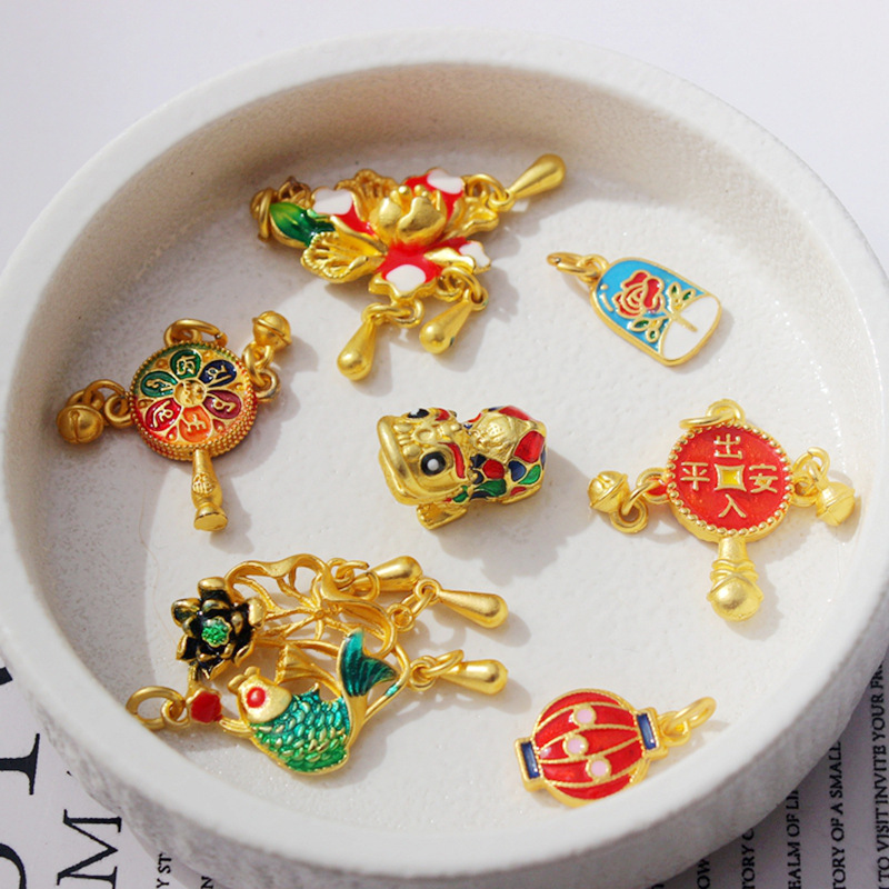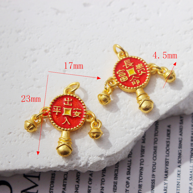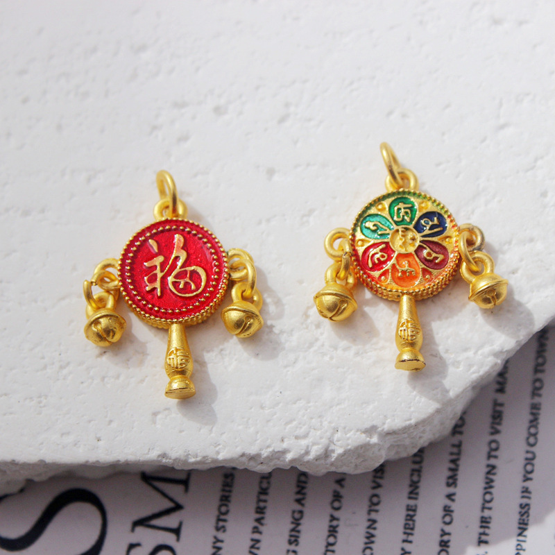 18K包金保色双面滴油拨浪鼓出入平安吊坠DIY手链项链手工饰品配件