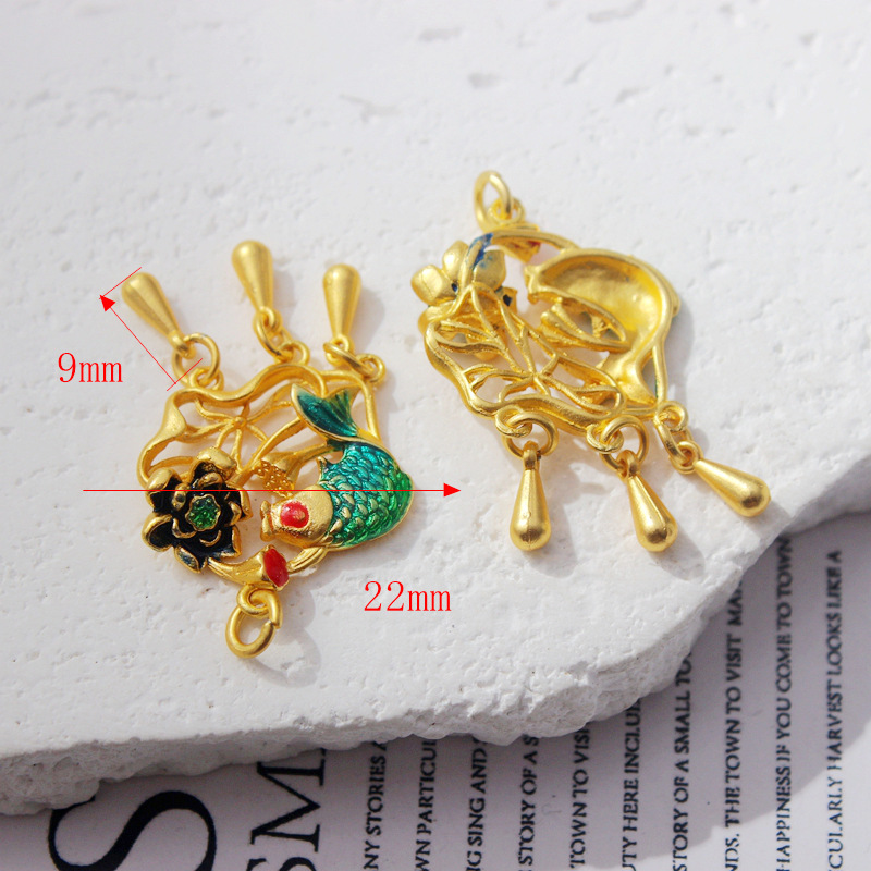 • 매트 골드 드립 오일 잉어 로터스 펜던트 22mm