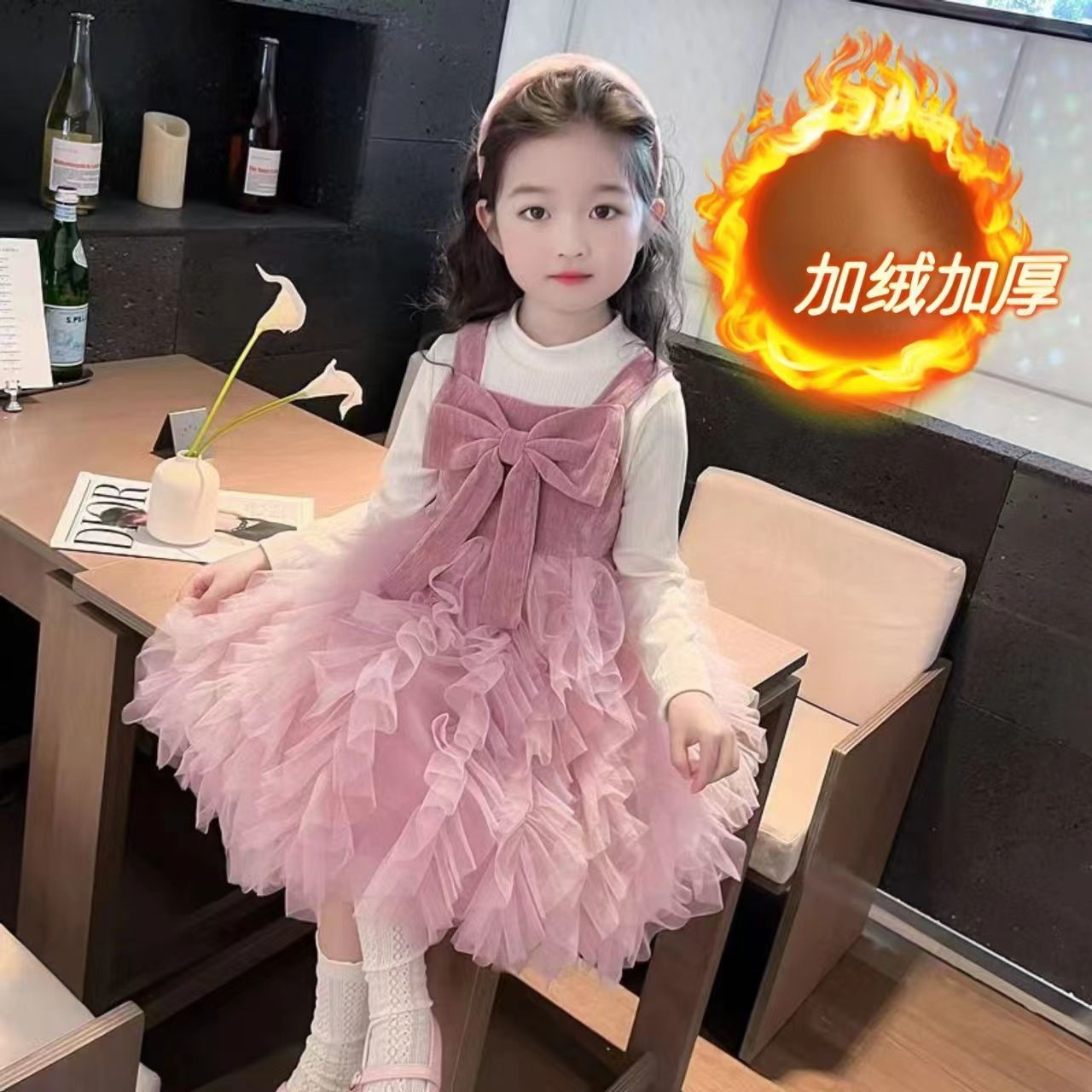 여아 드레스 세트 가을 겨울 2025 신상 어린 소녀 퍼프 메쉬 스커트 아기 끈 원피스 공주 드레스스토어 가기