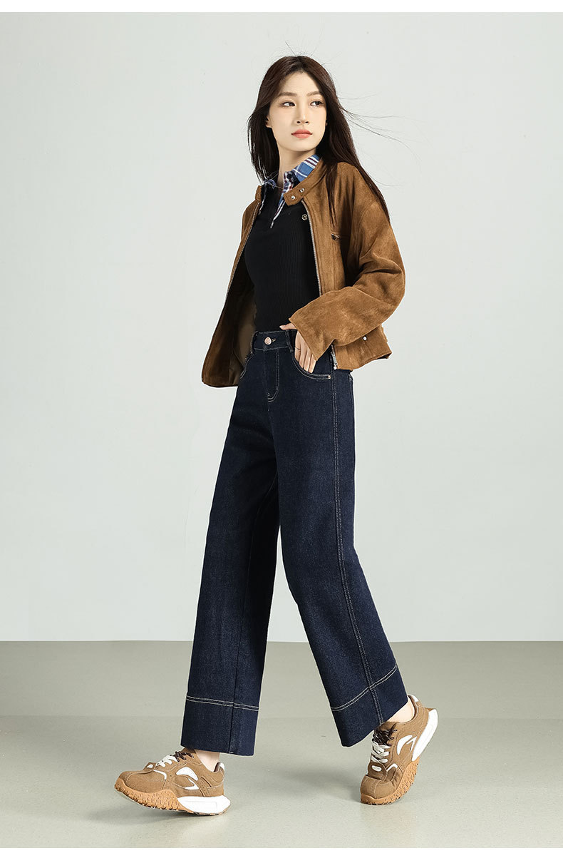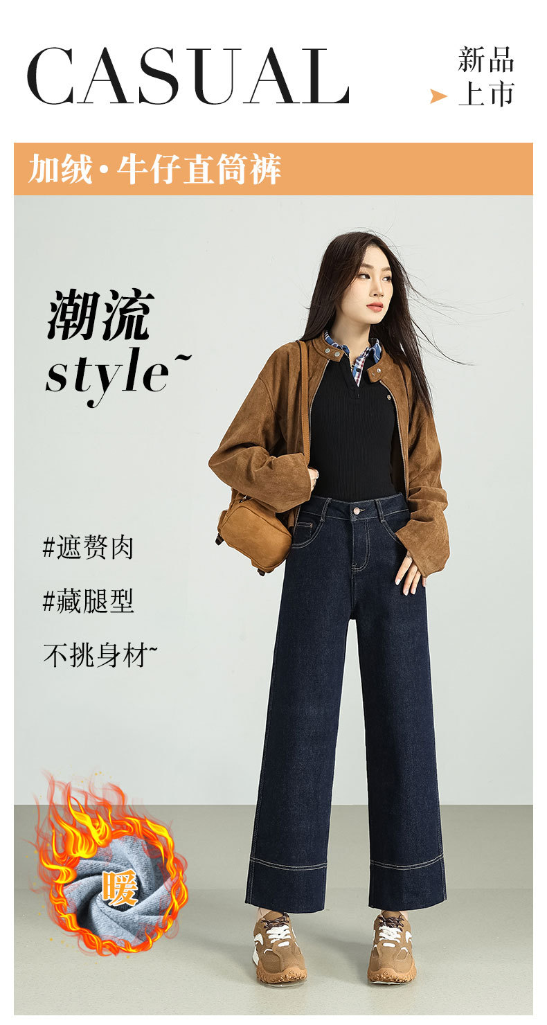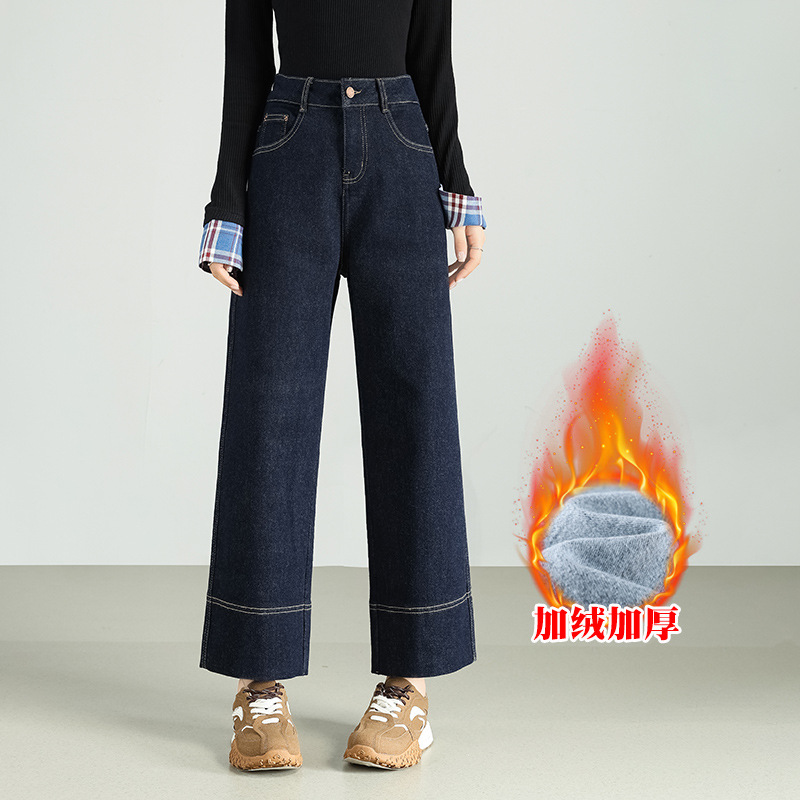 기모 스트레이트 크롭 청바지 여성의 겨울 새로운 패션 슬리밍 높은 허리 느슨한 짧은 좁은 넓은 다리 바지스토어 가기