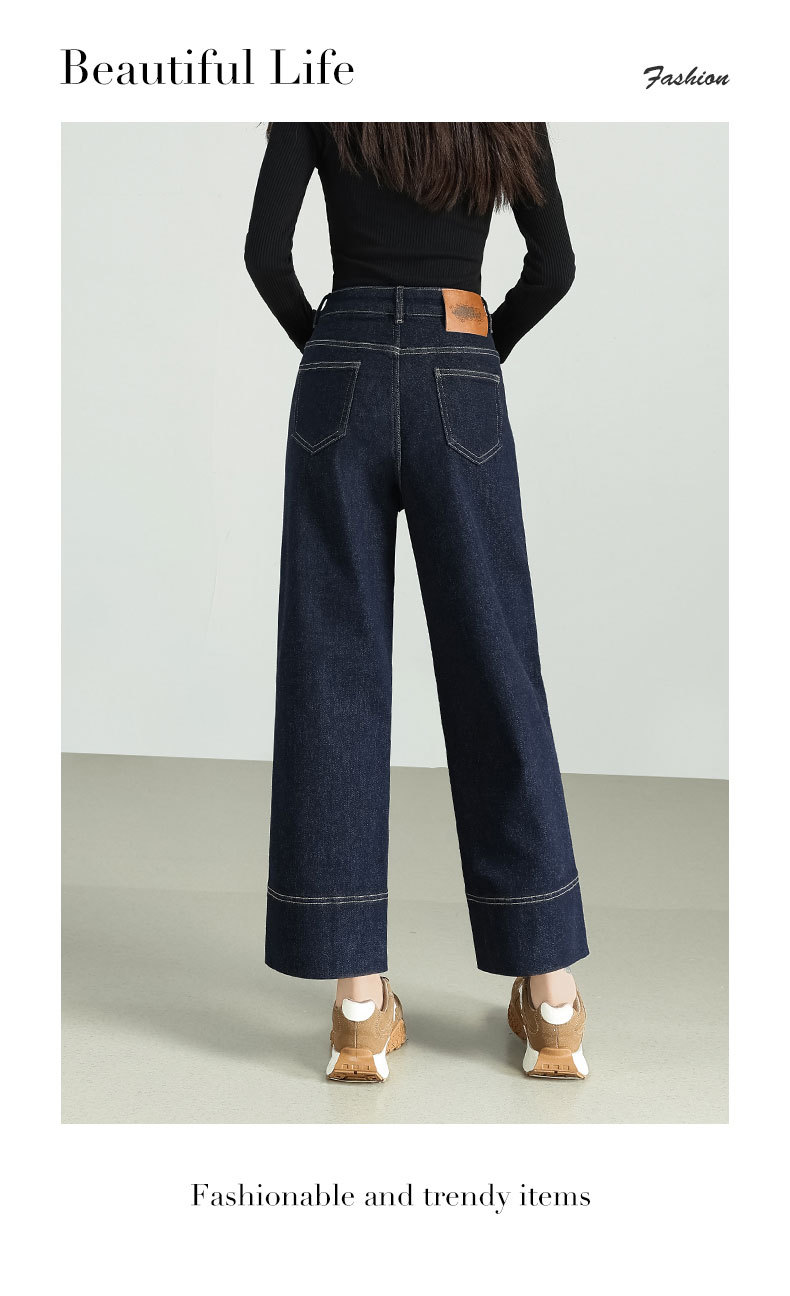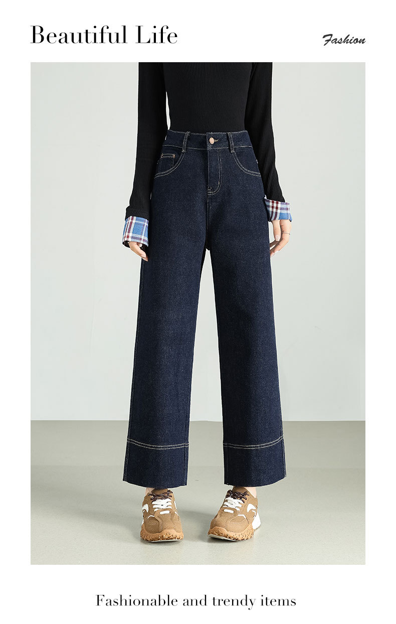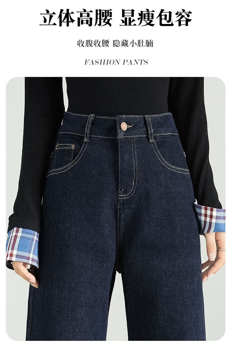 기모 스트레이트 크롭 청바지 여성의 겨울 새로운 패션 슬리밍 높은 허리 느슨한 짧은 좁은 넓은 다리 바지