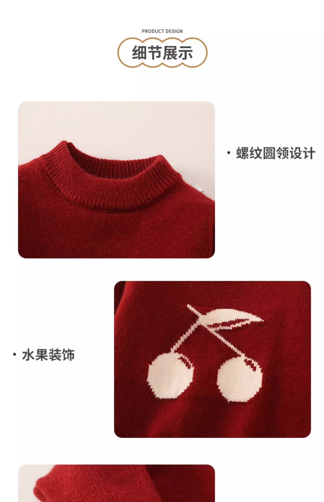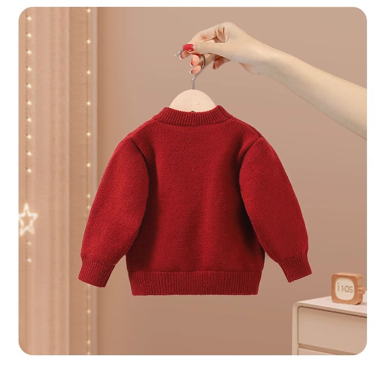 소녀들의 가을과 겨울 2025 새로운 아기 겨울 최고의 새해 레드 두꺼운 따뜻한 어린이 니트 스웨터