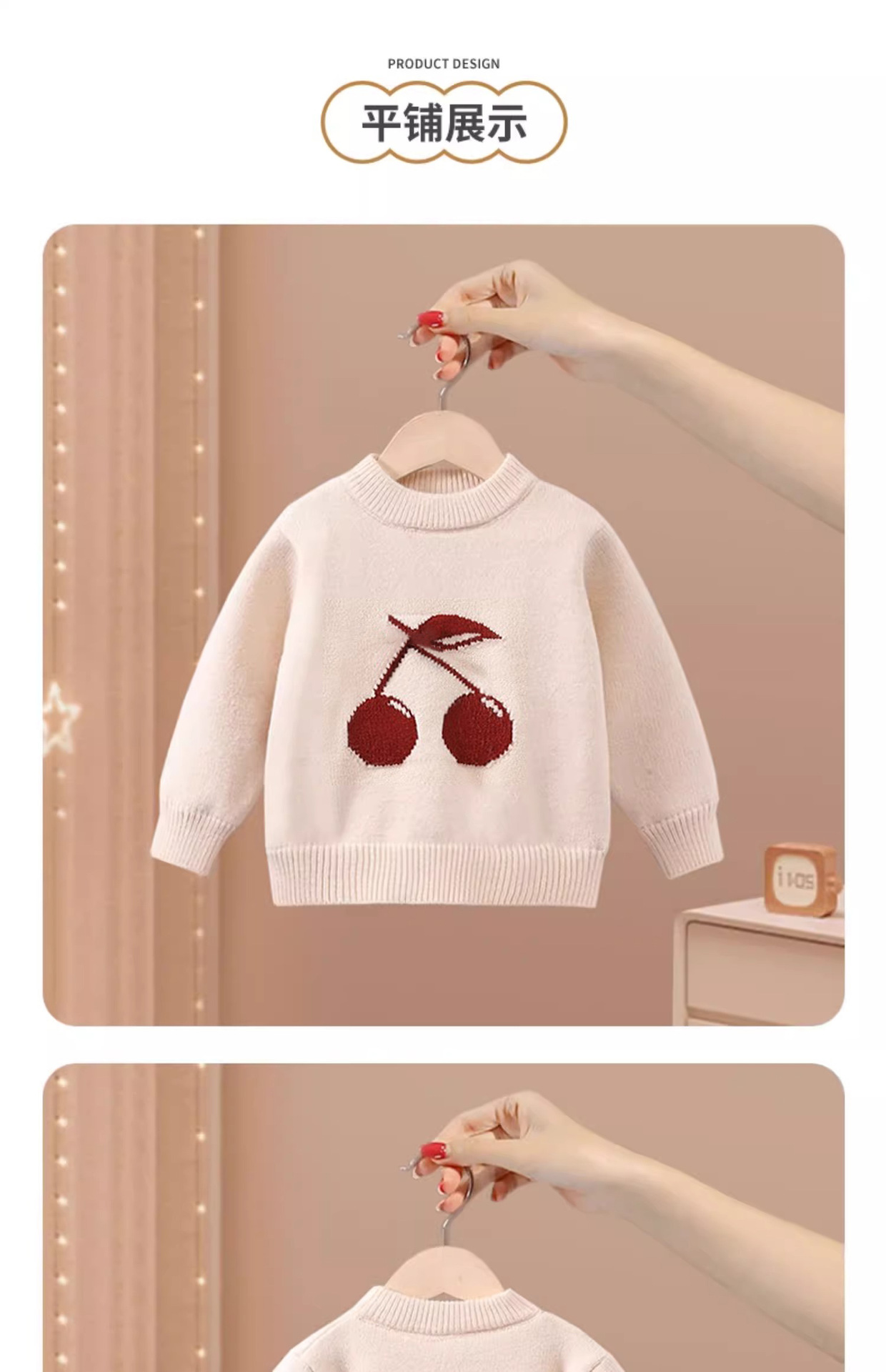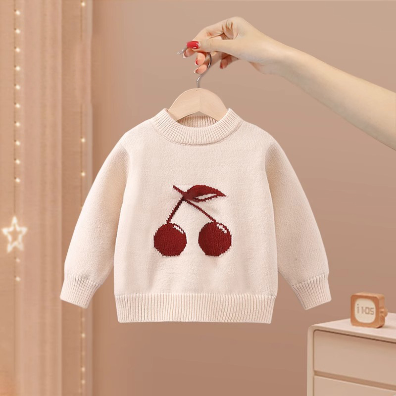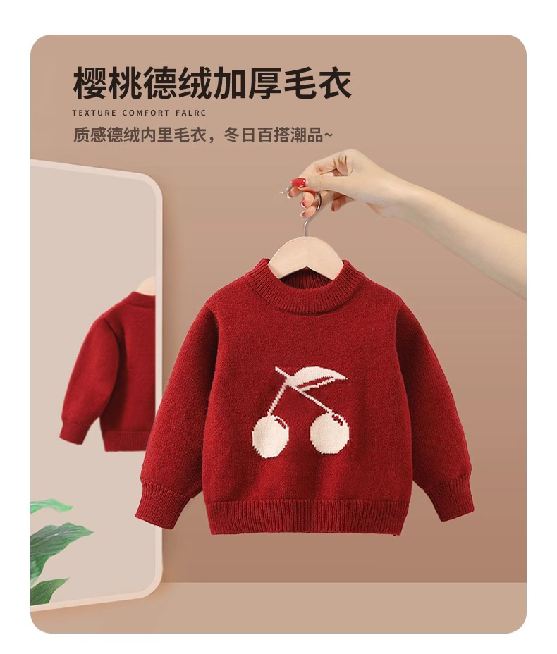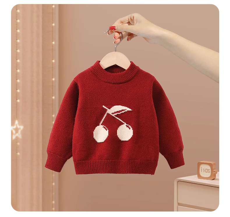 소녀들의 가을과 겨울 2025 새로운 아기 겨울 최고의 새해 레드 두꺼운 따뜻한 어린이 니트 스웨터스토어 가기