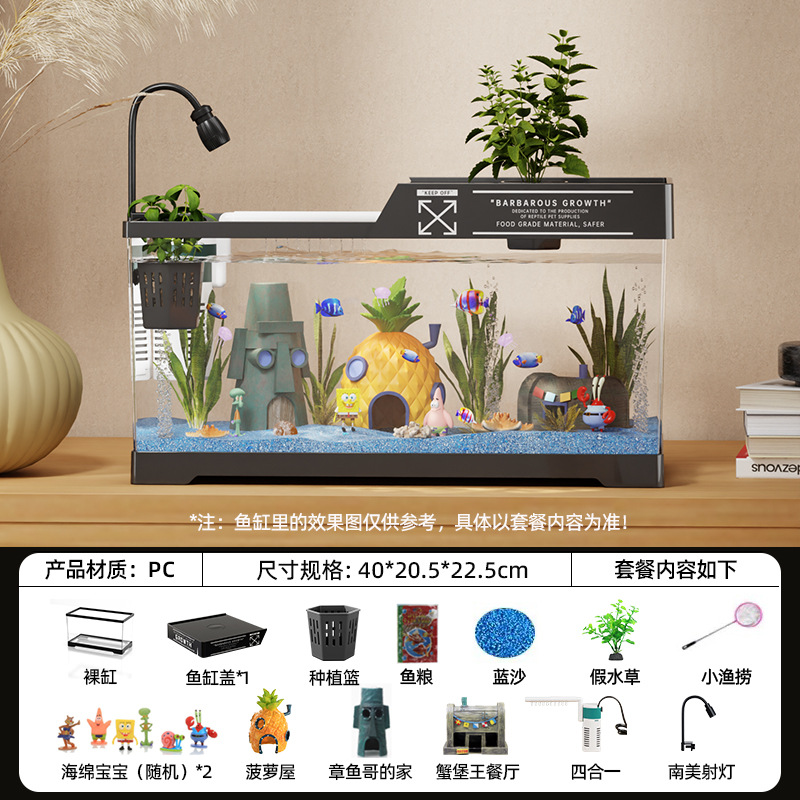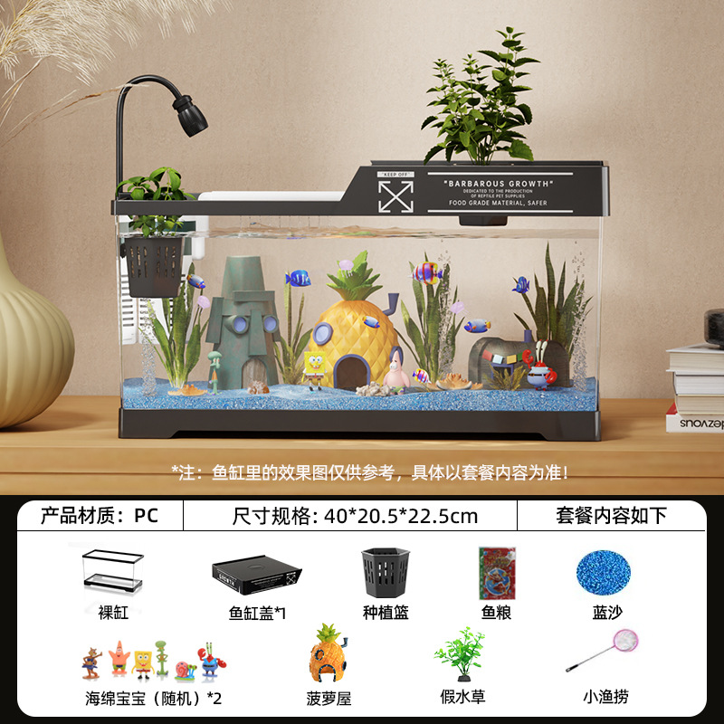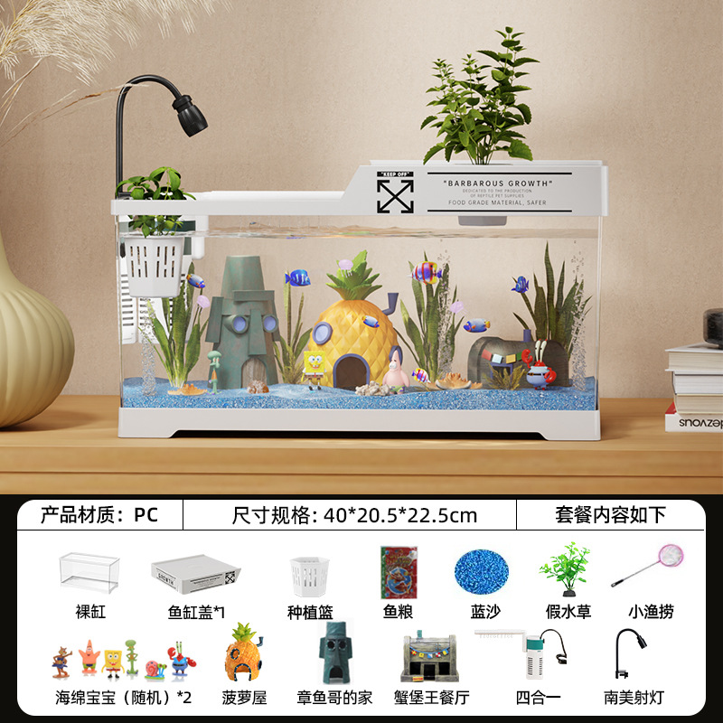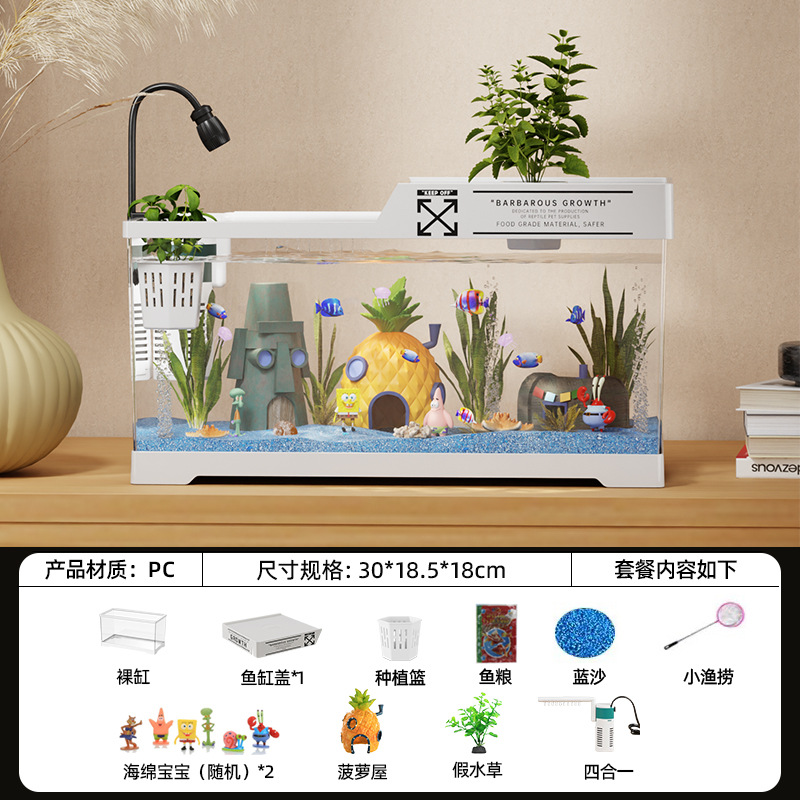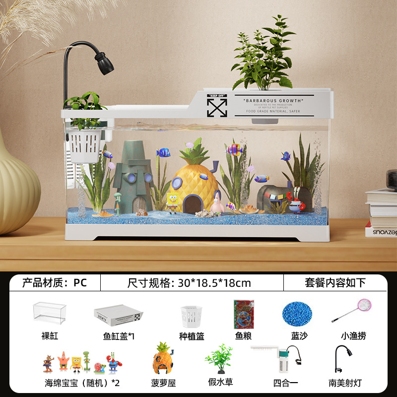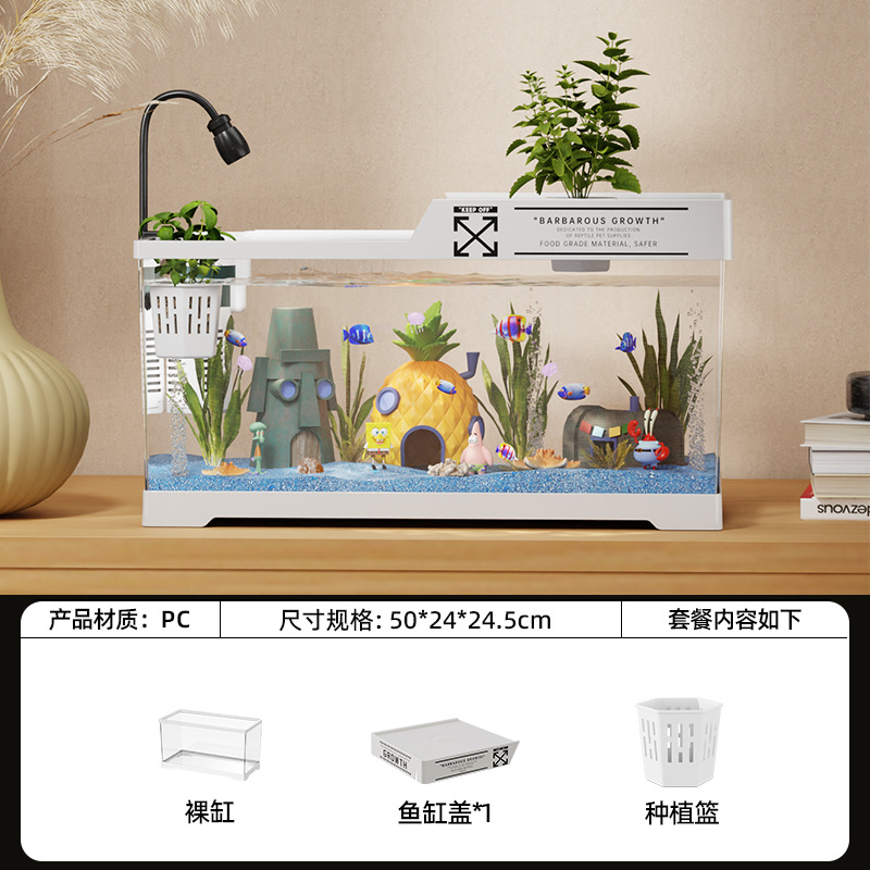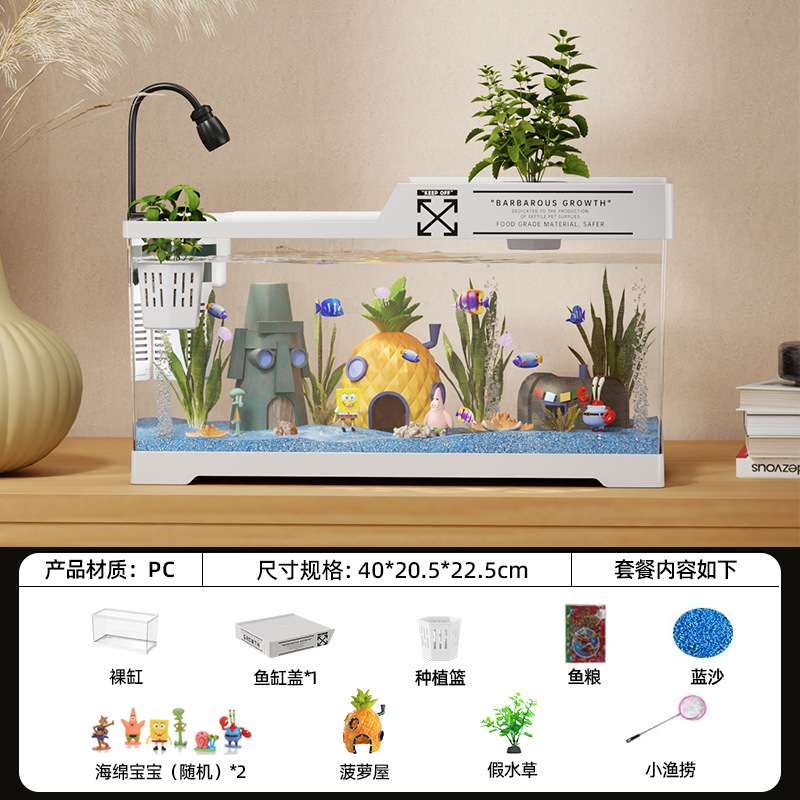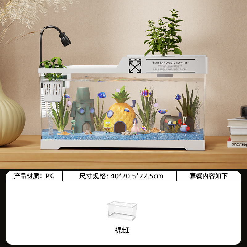 2024 새로운 스타일의 가정용 금붕어 탱크 생태 스폰지 밥 조경 작은 거실 양동이 물고기 탱크 아크릴 수족관