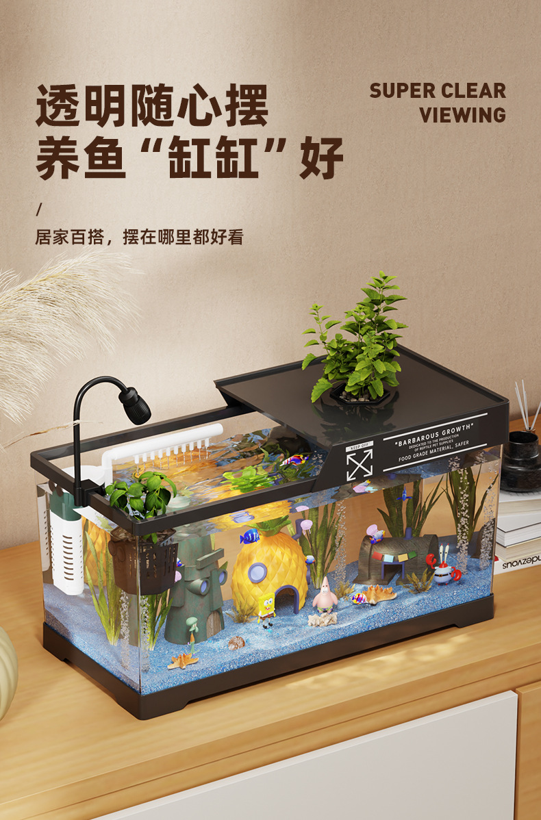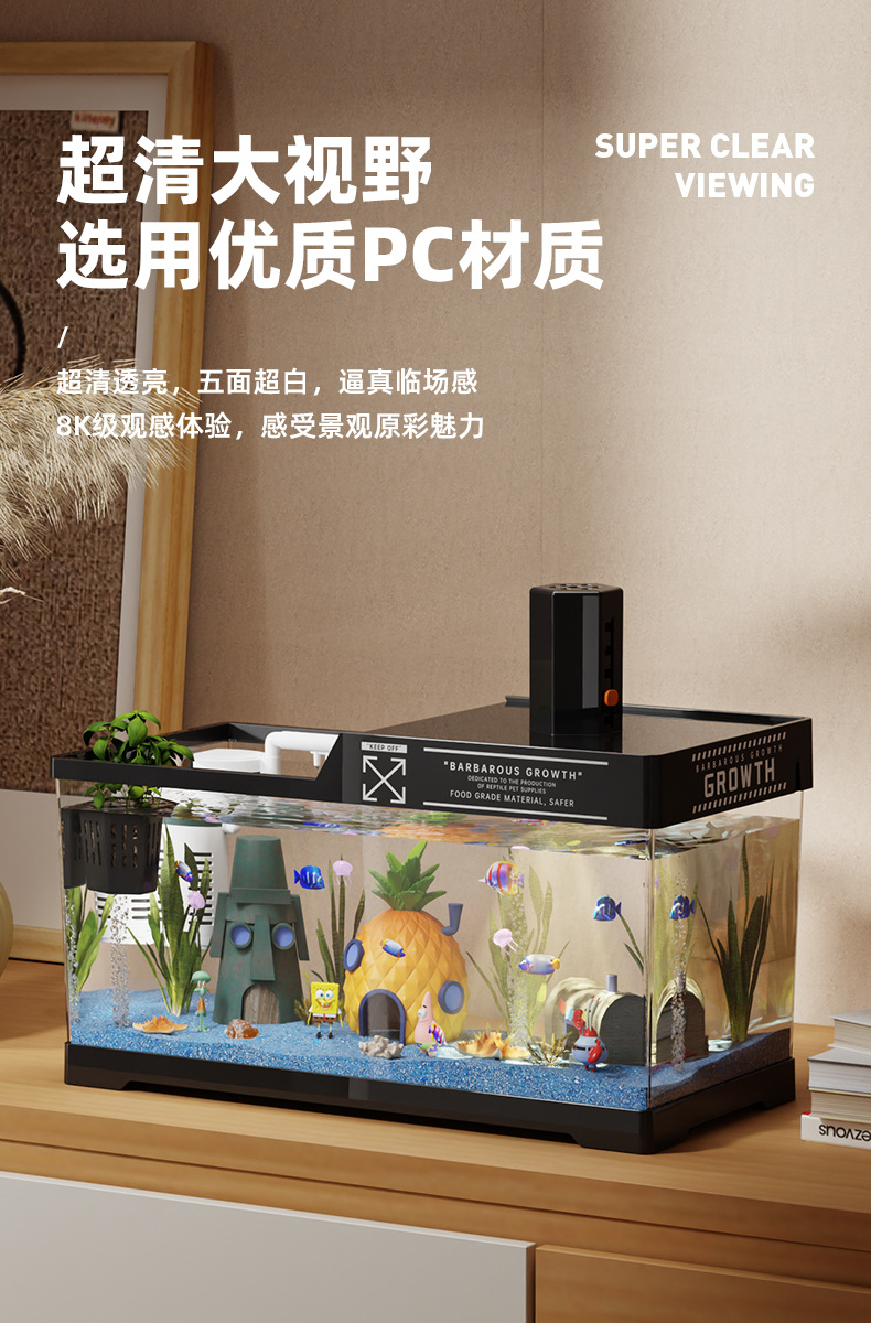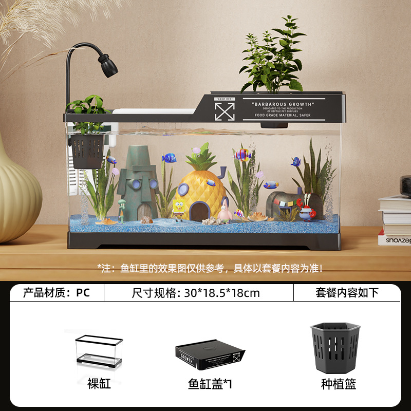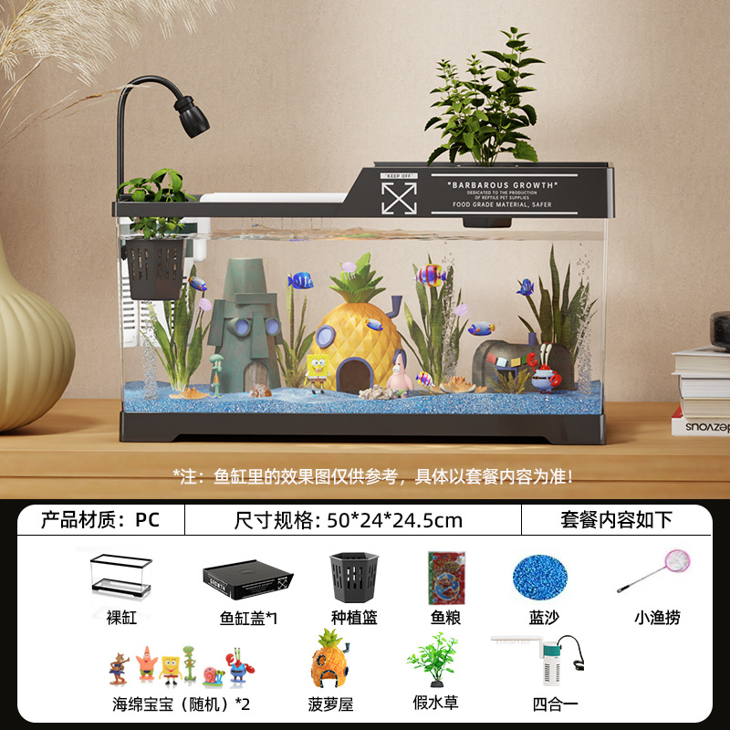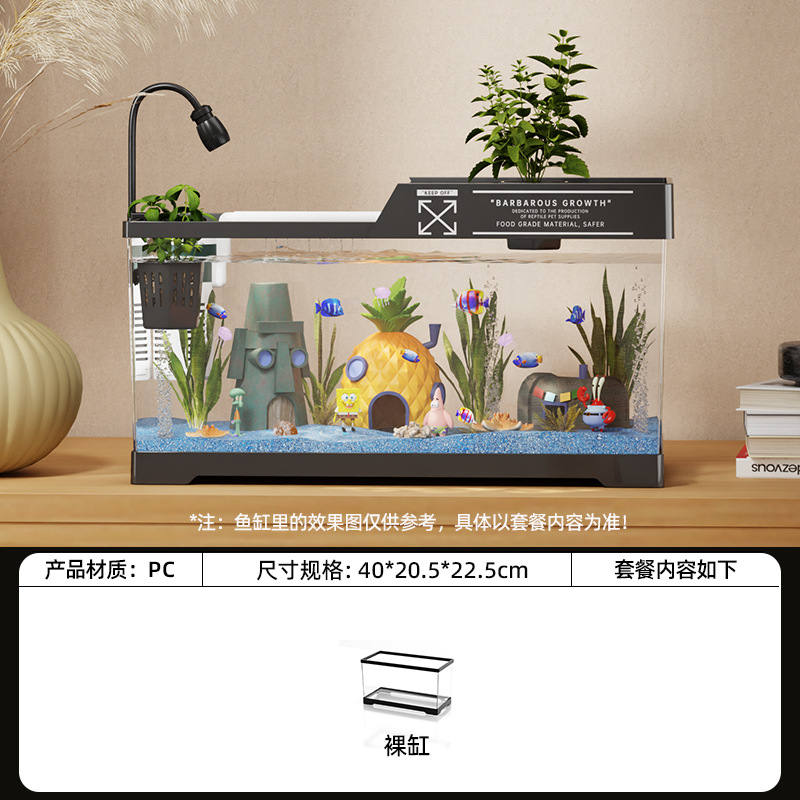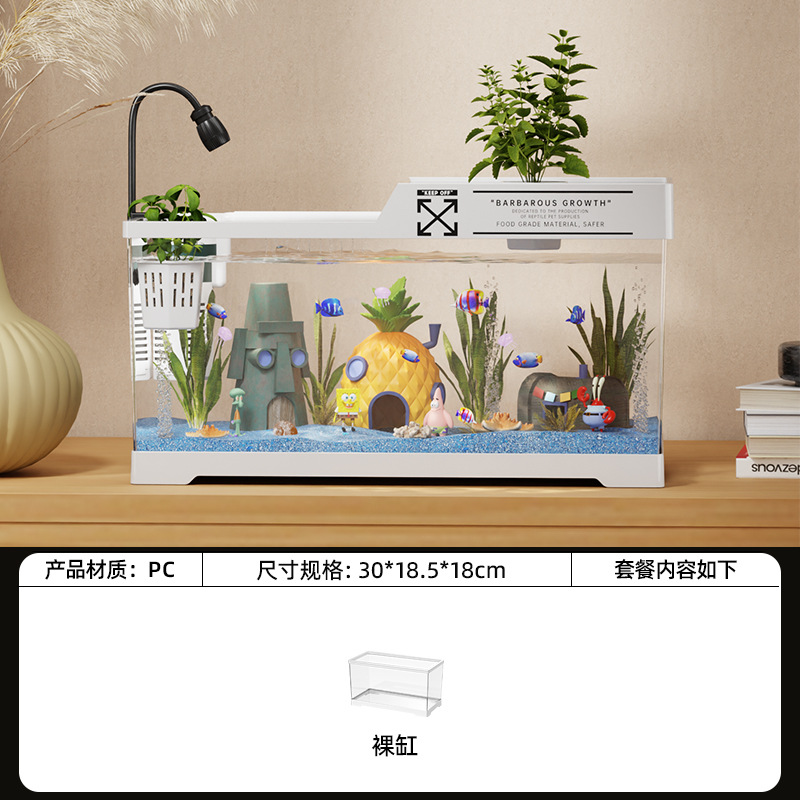 2024 새로운 스타일의 가정용 금붕어 탱크 생태 스폰지 밥 조경 작은 거실 양동이 물고기 탱크 아크릴 수족관