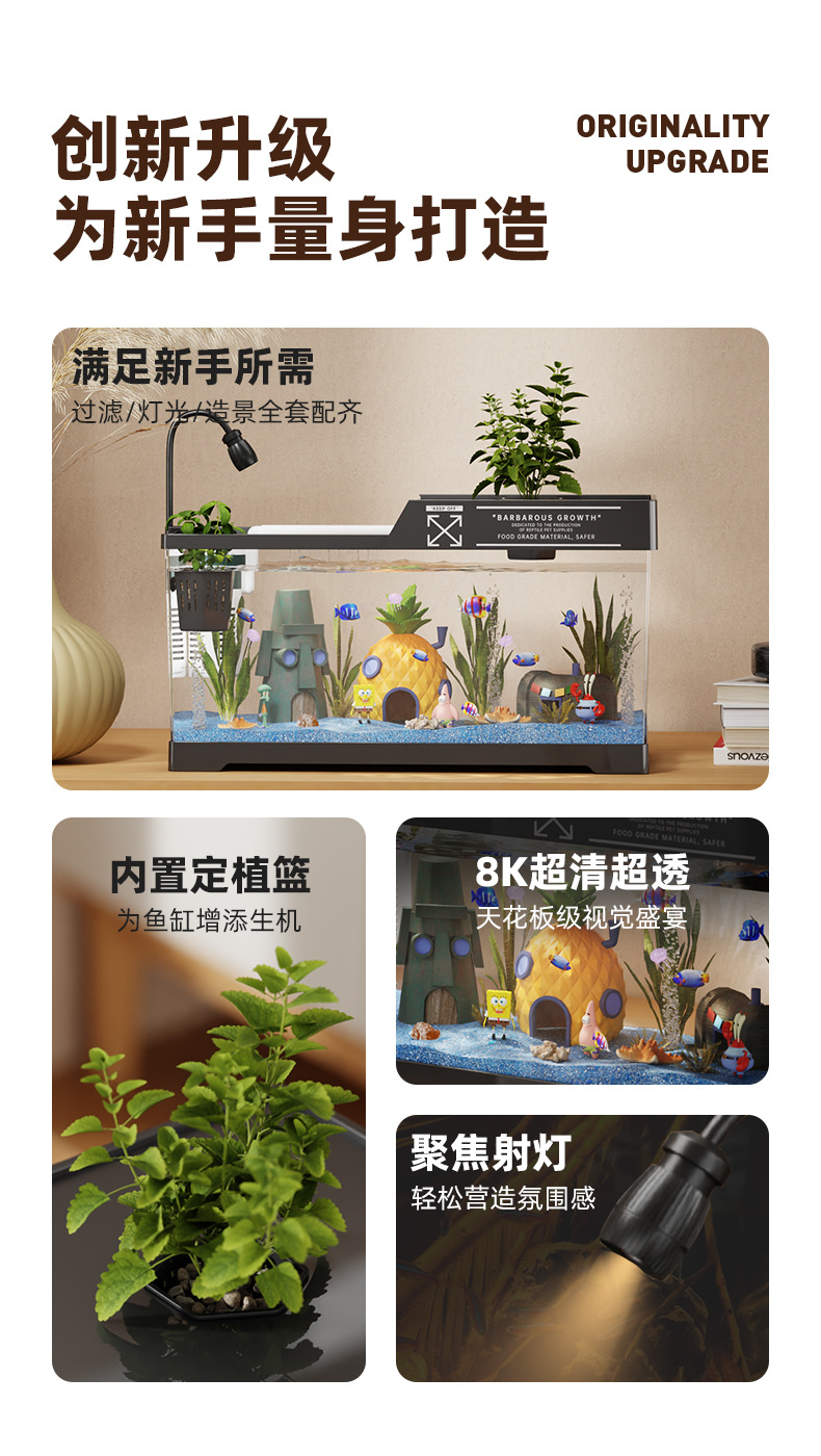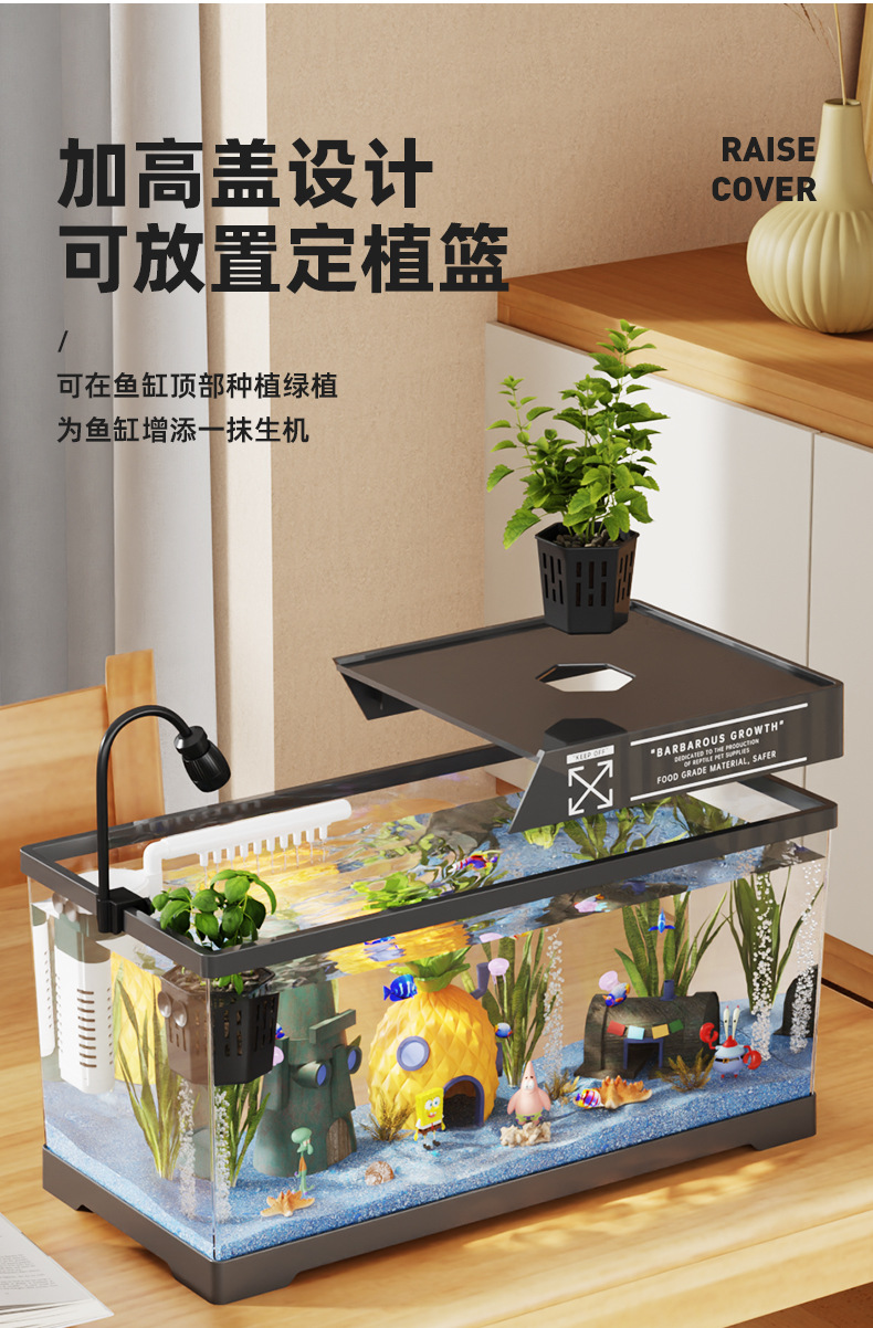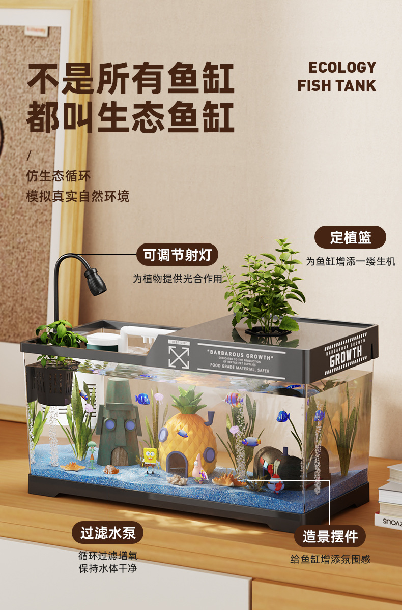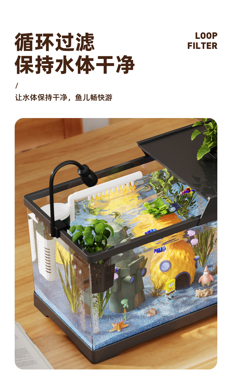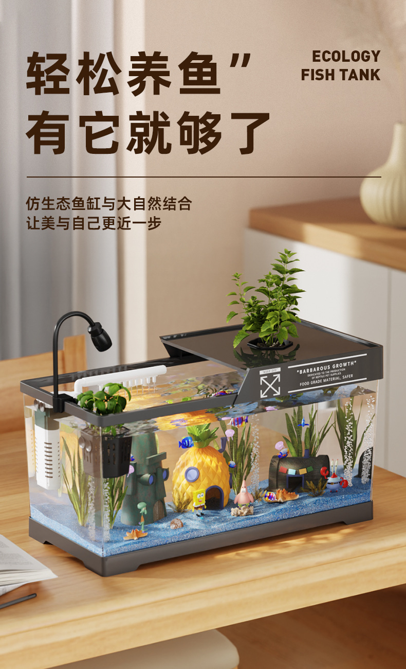 2024 새로운 스타일의 가정용 금붕어 탱크 생태 스폰지 밥 조경 작은 거실 양동이 물고기 탱크 아크릴 수족관