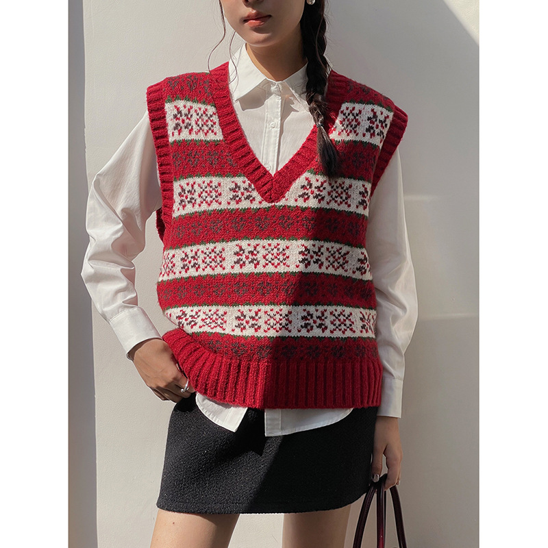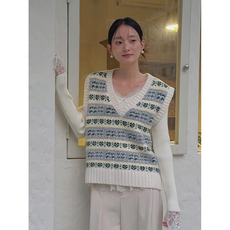 【게밍】레트로 브이넥 테일러드 플리스 니트 조끼 여성용 2025 겨울 신상 스웨터 N583B