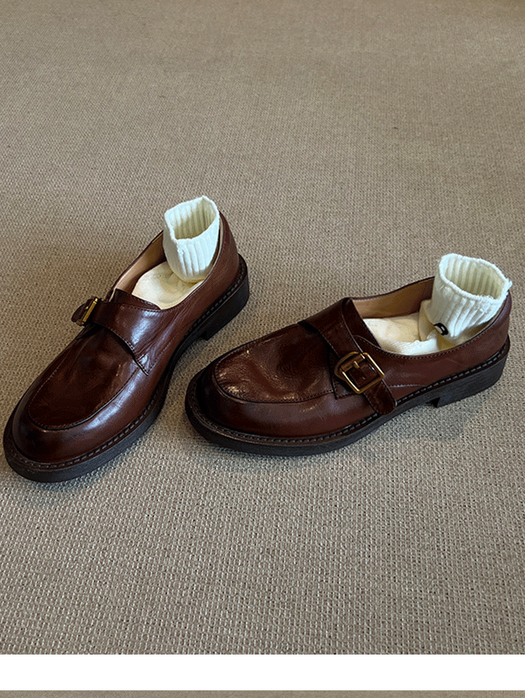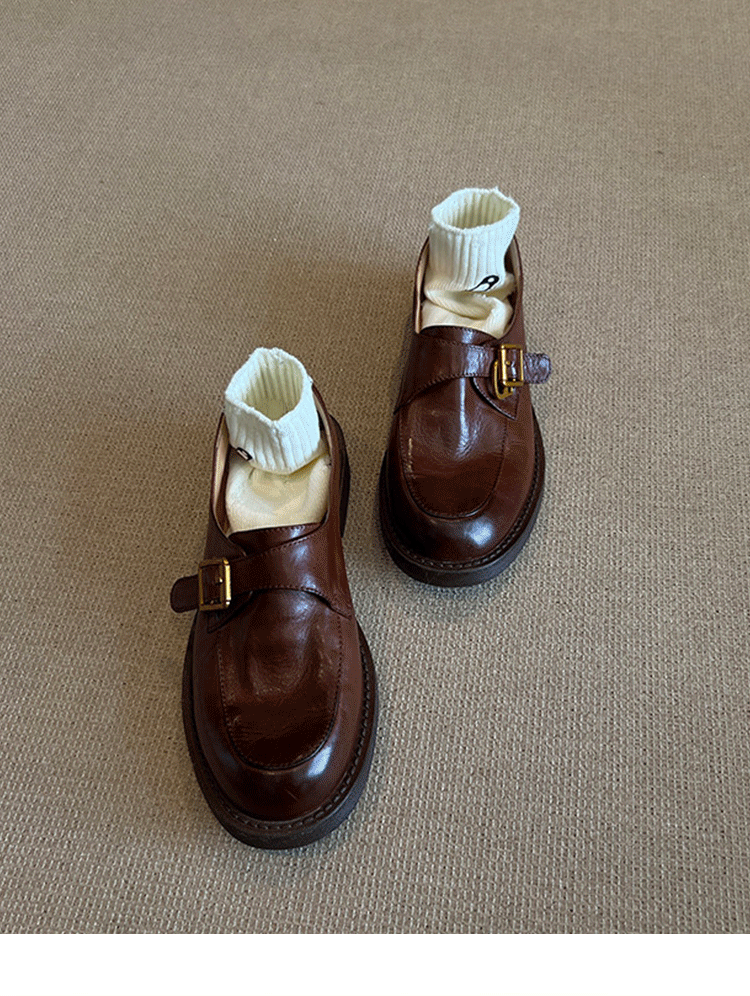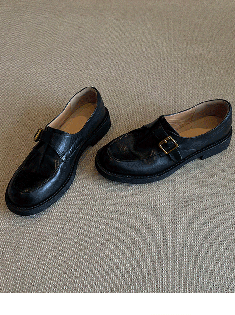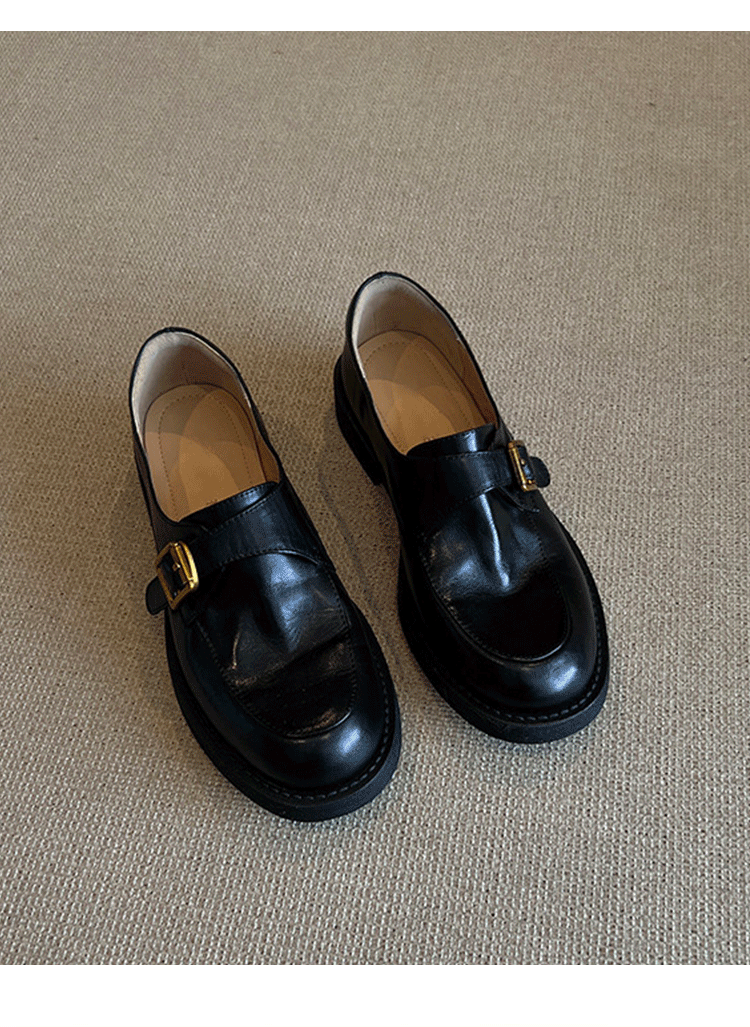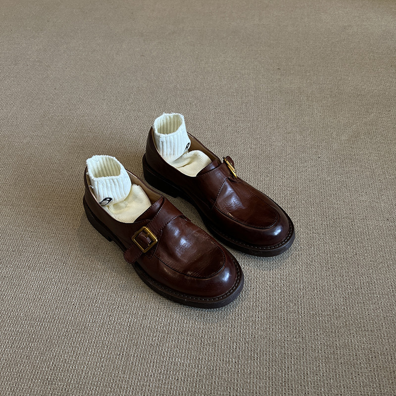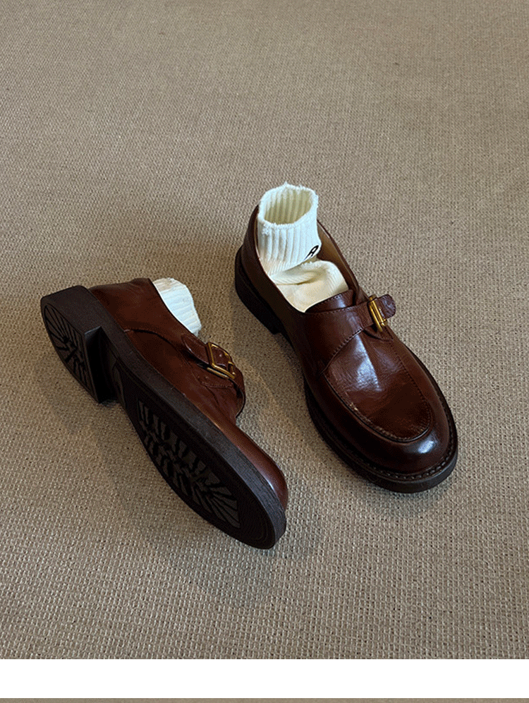 Cowhide Edition ~ 가죽 두꺼운 밑창 로퍼 봄과 가을 싱글 레이어 신발 블랙 올 매치 신발 영국 아카데미 스타일 작은 가죽 신발