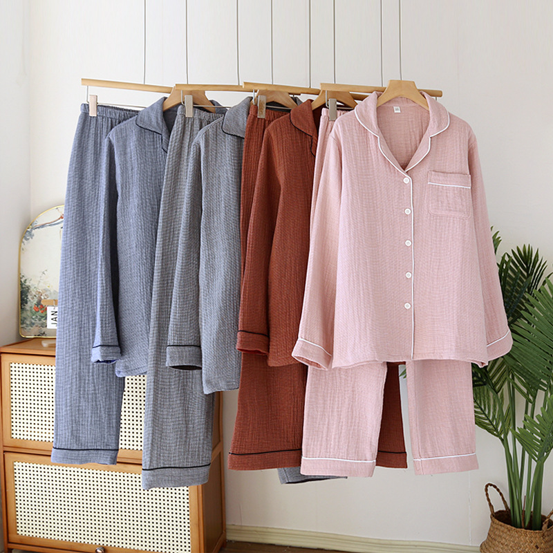 일본식 4 층 면 거즈 파자마 새 커플 홈 의류 봄과 가을 남성 홈 의류 세트스토어 가기