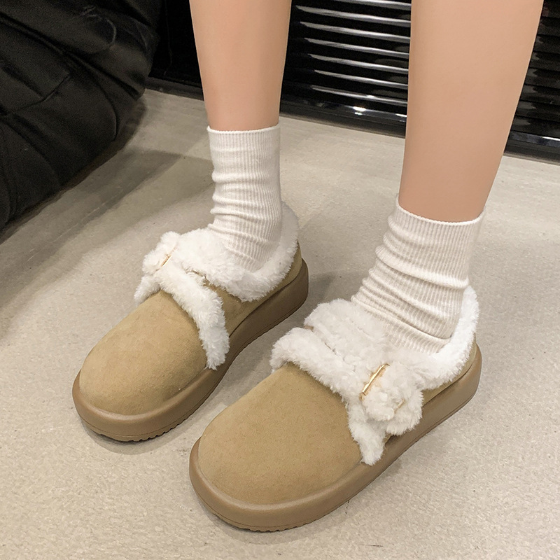 한국 버클 기모 푹신한 신발 스웨이드 방수 면화 여성용 쇼트 부츠 2024 겨울 새 미끄럼 방지 스노우 부츠