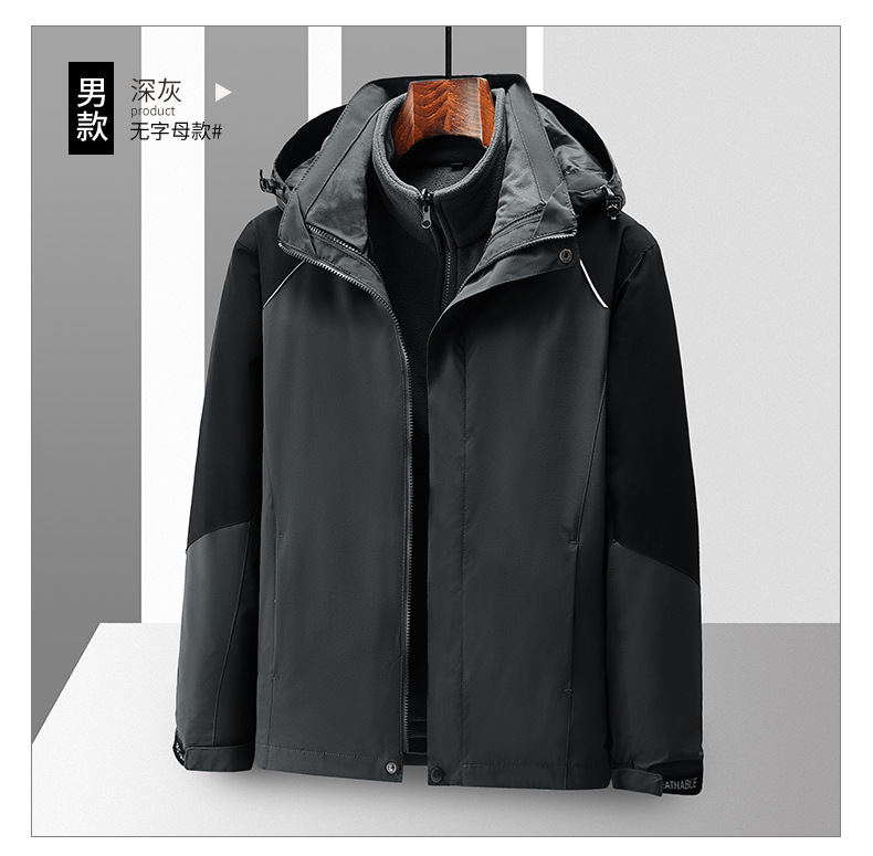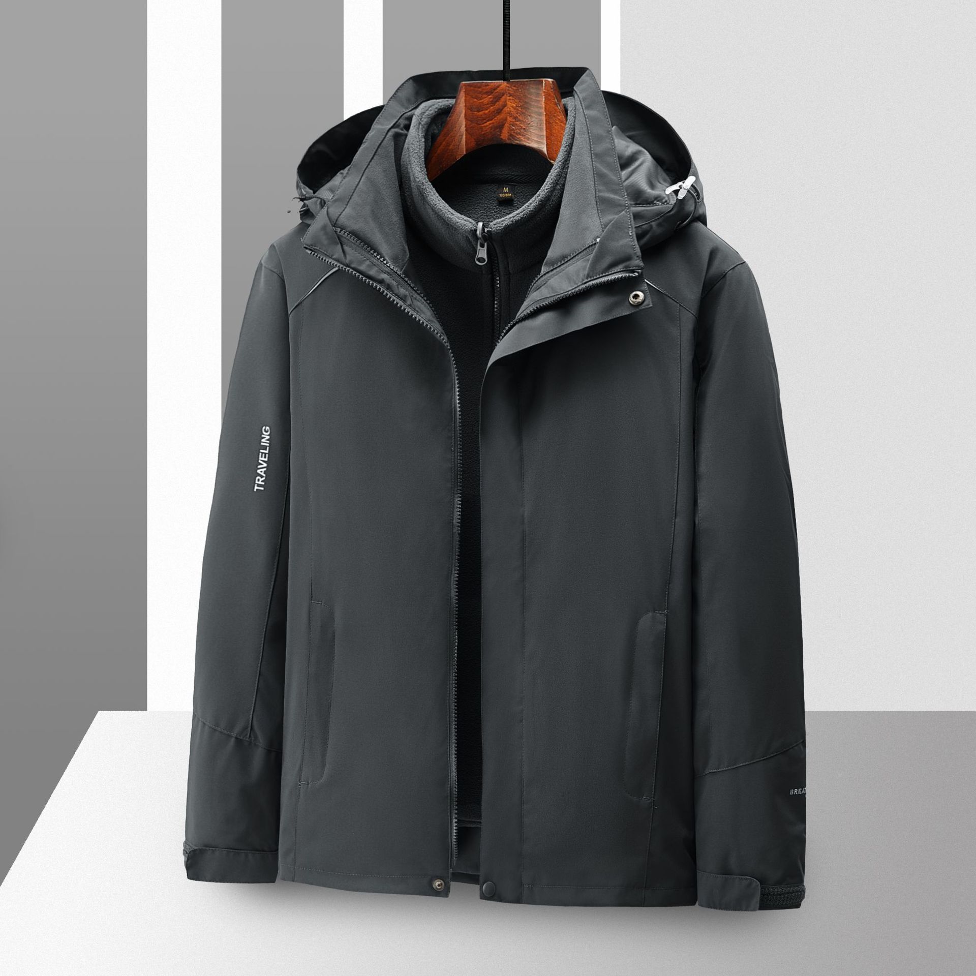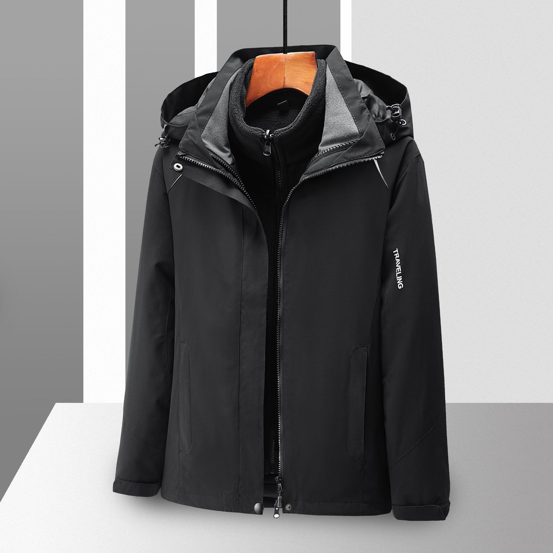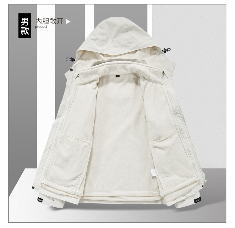 커플의 야외 등산 세트 트렌디 기모 두꺼운 라이너 분리형 재킷 남자 3 대 1 투피스 재킷