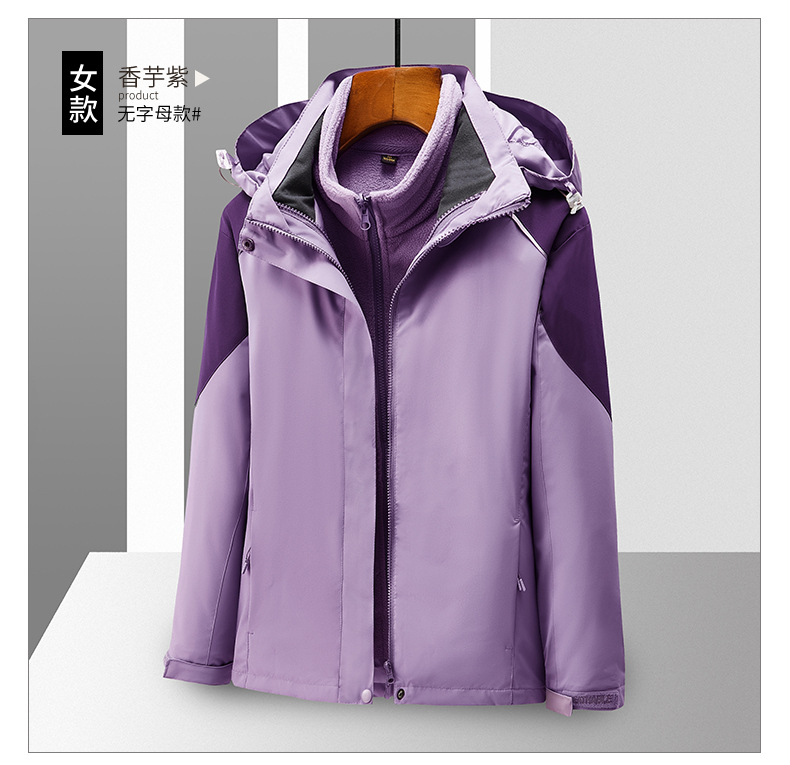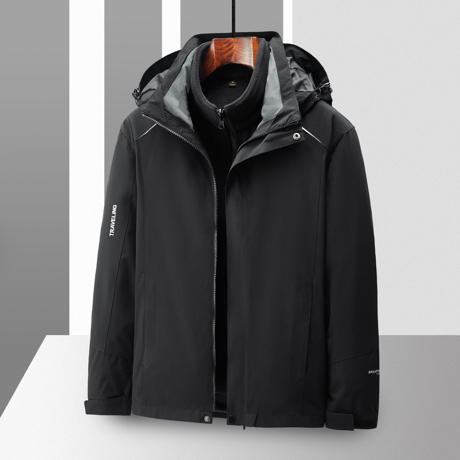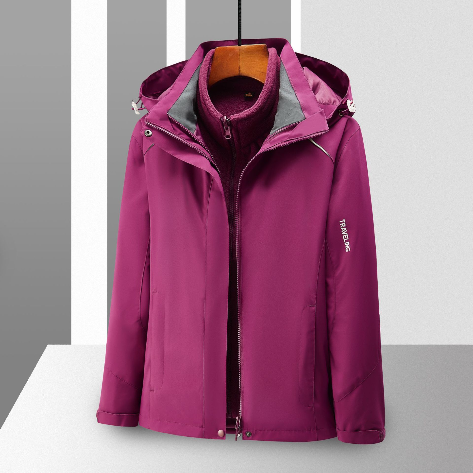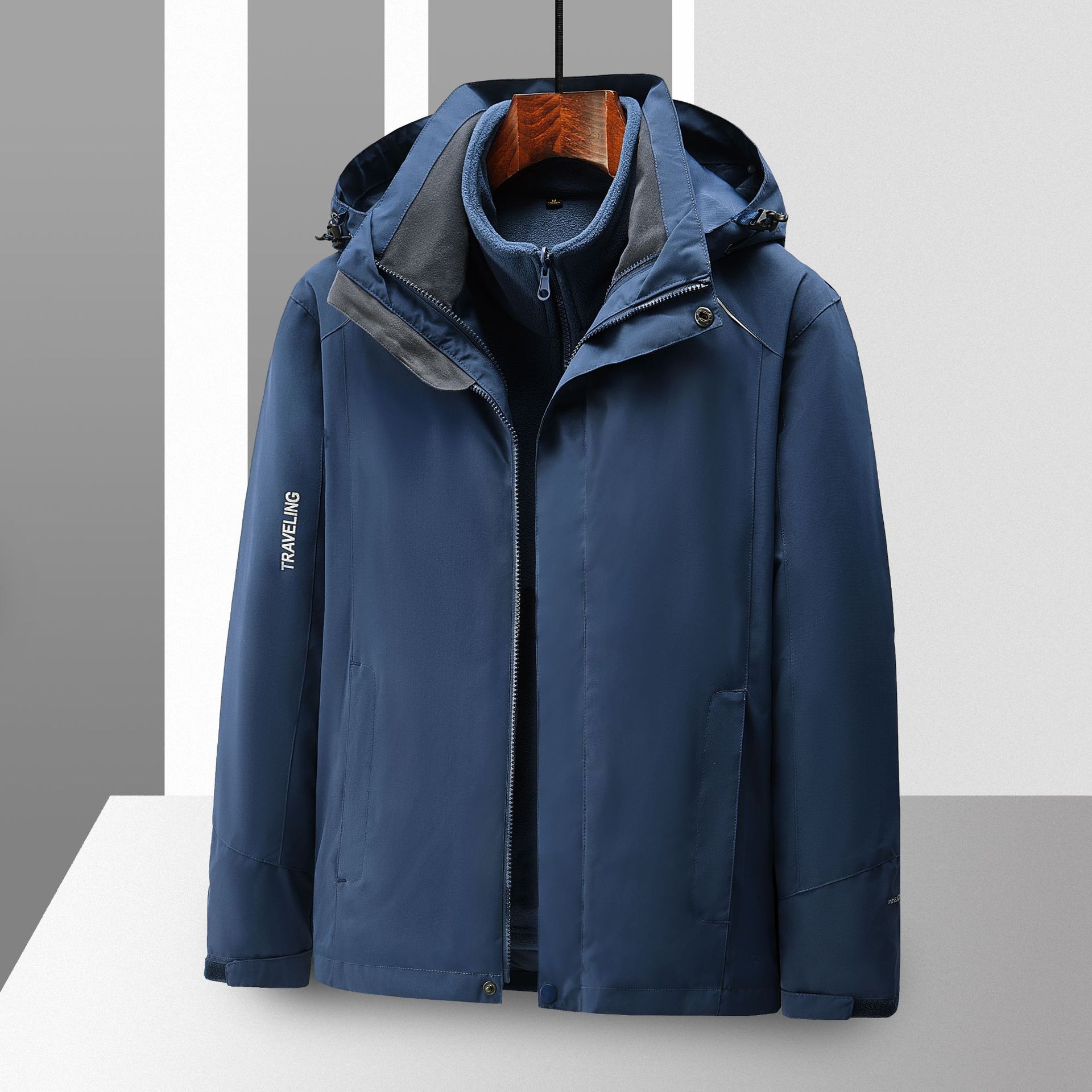 커플의 야외 등산 세트 트렌디 기모 두꺼운 라이너 분리형 재킷 남자 3 대 1 투피스 재킷