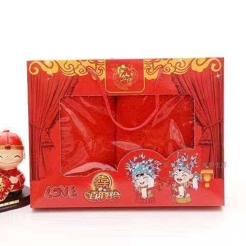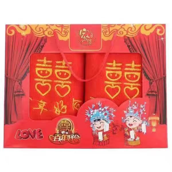 도매 큰 레드 웨딩 타월 웨딩 선물 그라인드 자수 선물 상자 웨딩 레드 웨딩 타월스토어 가기