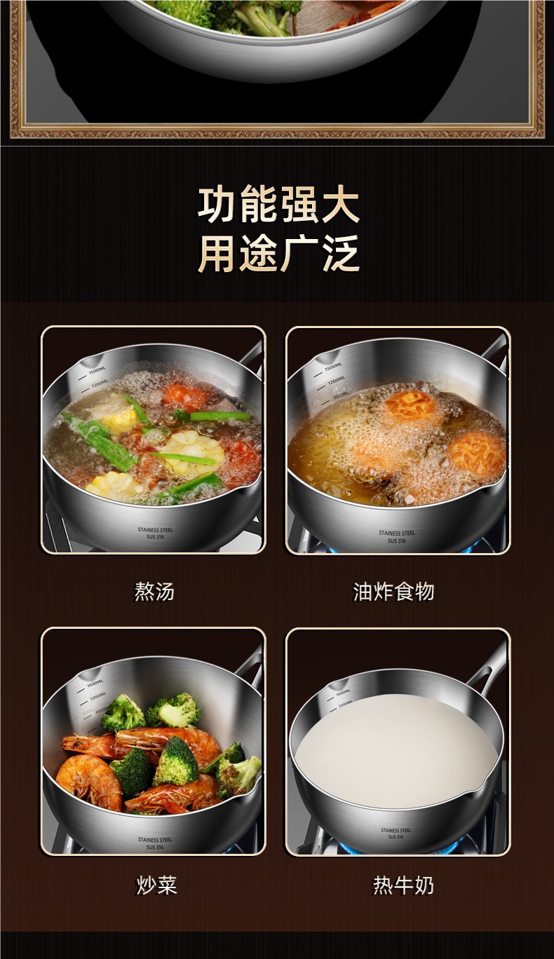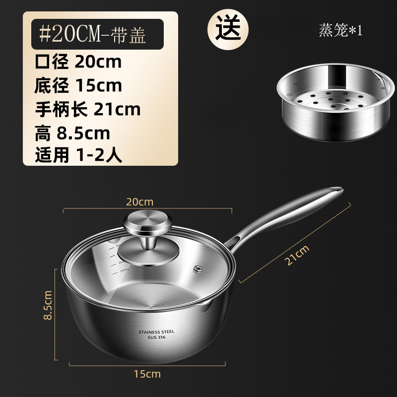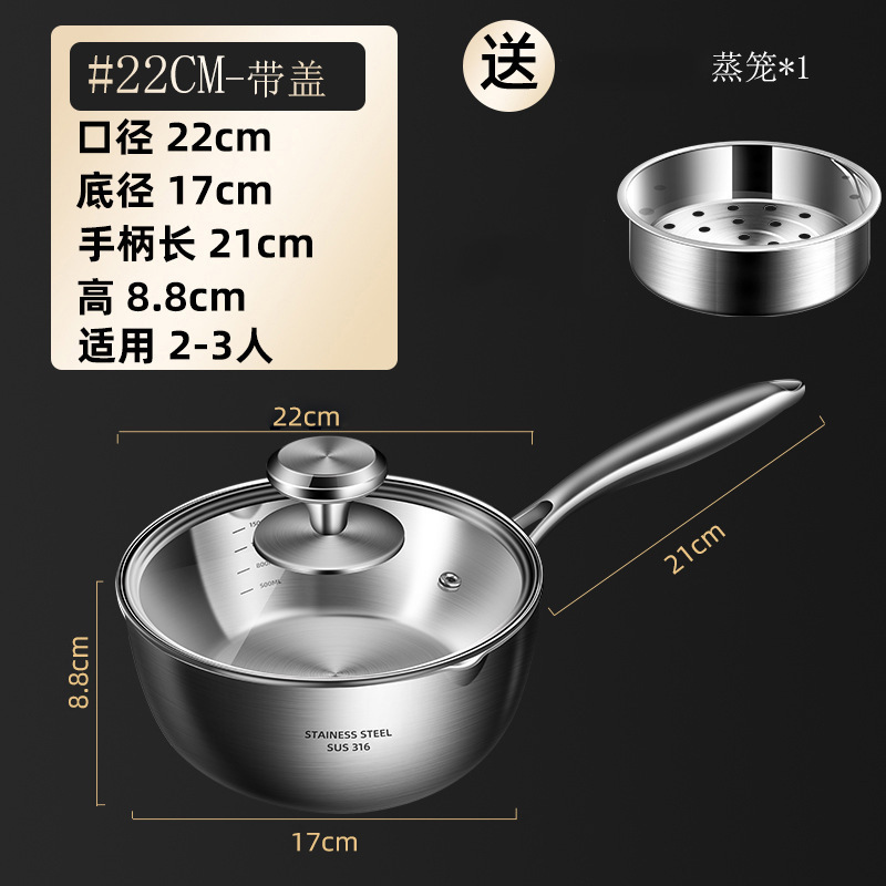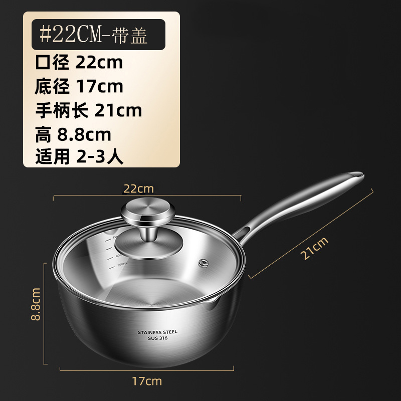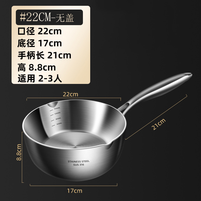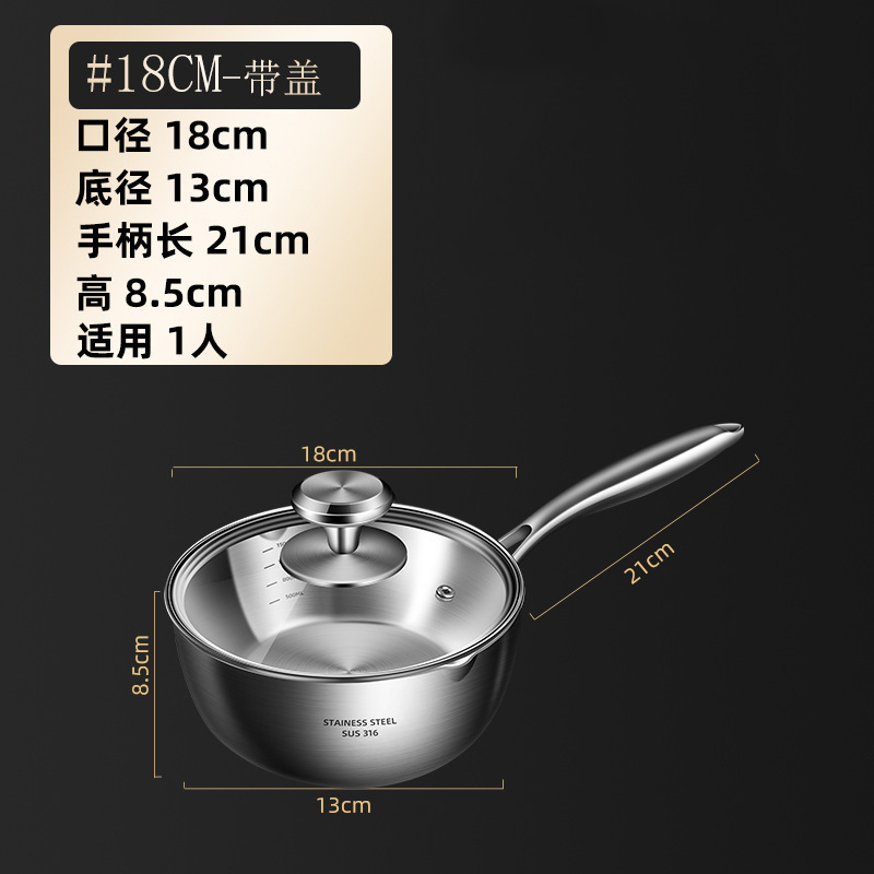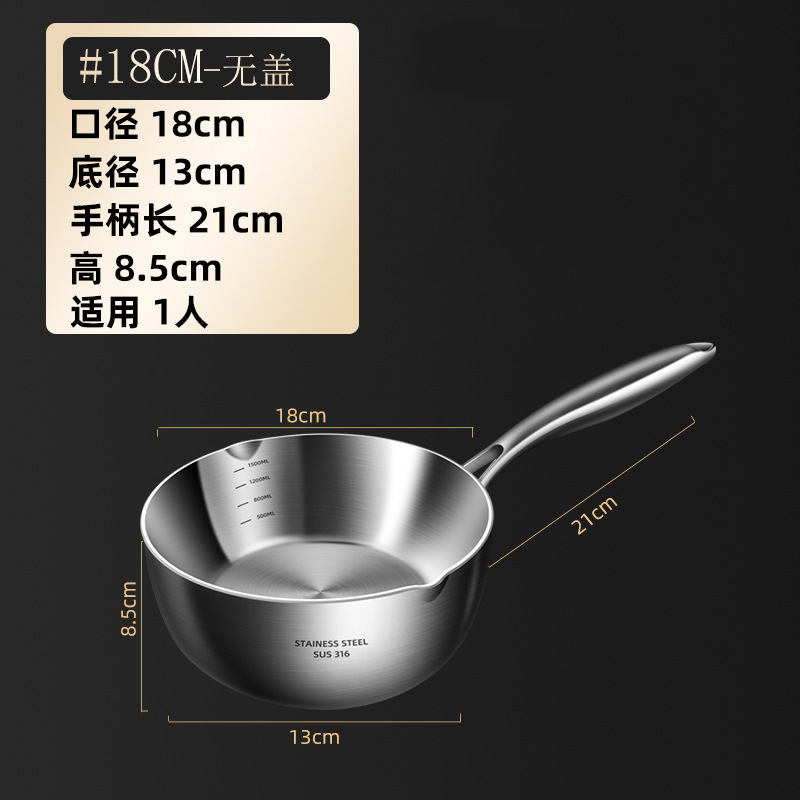 독일 316 스테인레스 스틸 스노우 팬 스틱 수프 팬 가정용 유아식 보충 냄비 우유 냄비 코팅되지 않은 우유 냄비