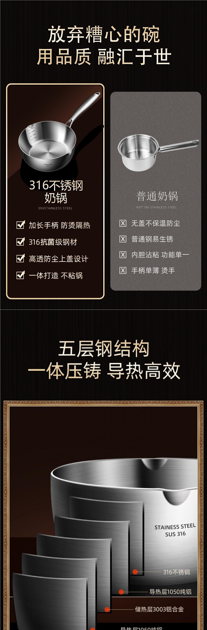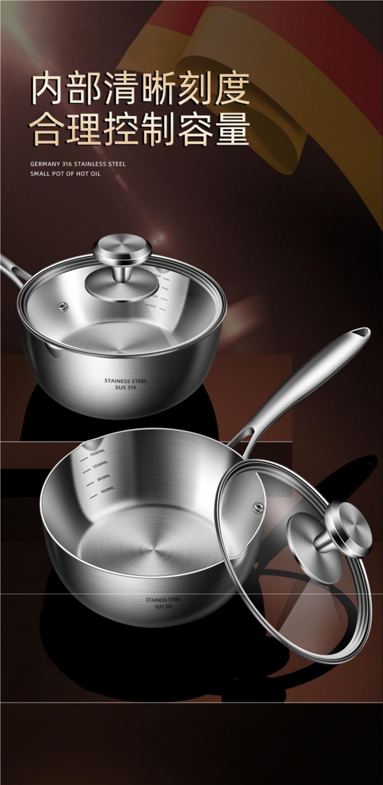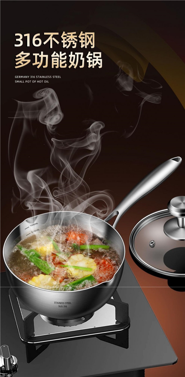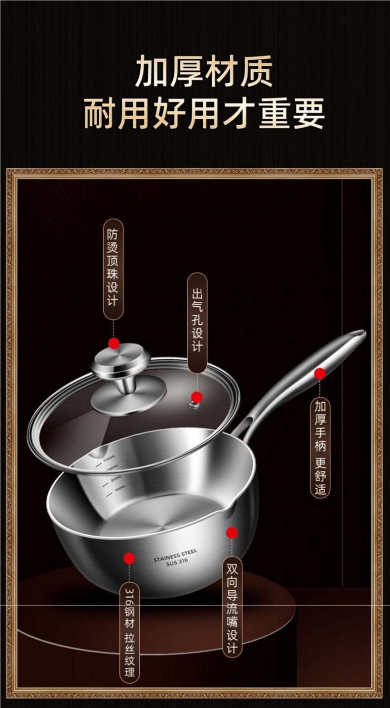 독일 316 스테인레스 스틸 스노우 팬 스틱 수프 팬 가정용 유아식 보충 냄비 우유 냄비 코팅되지 않은 우유 냄비