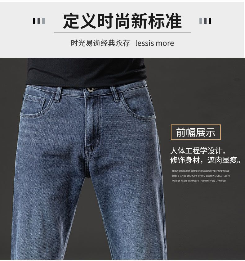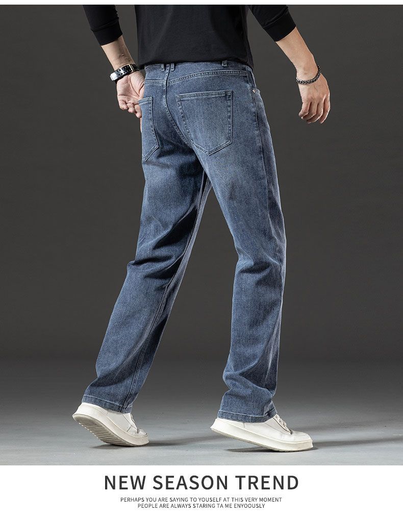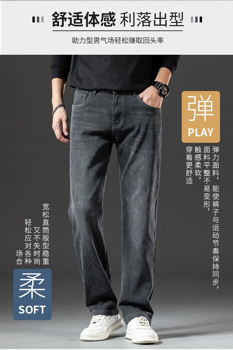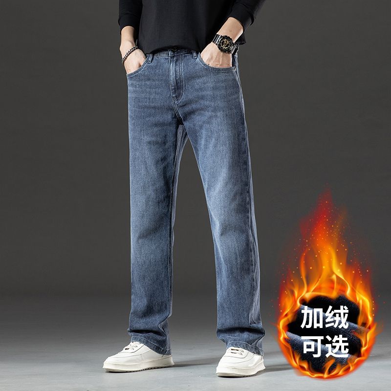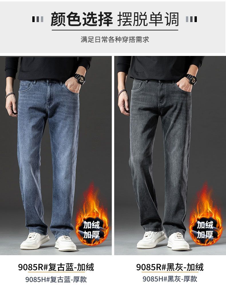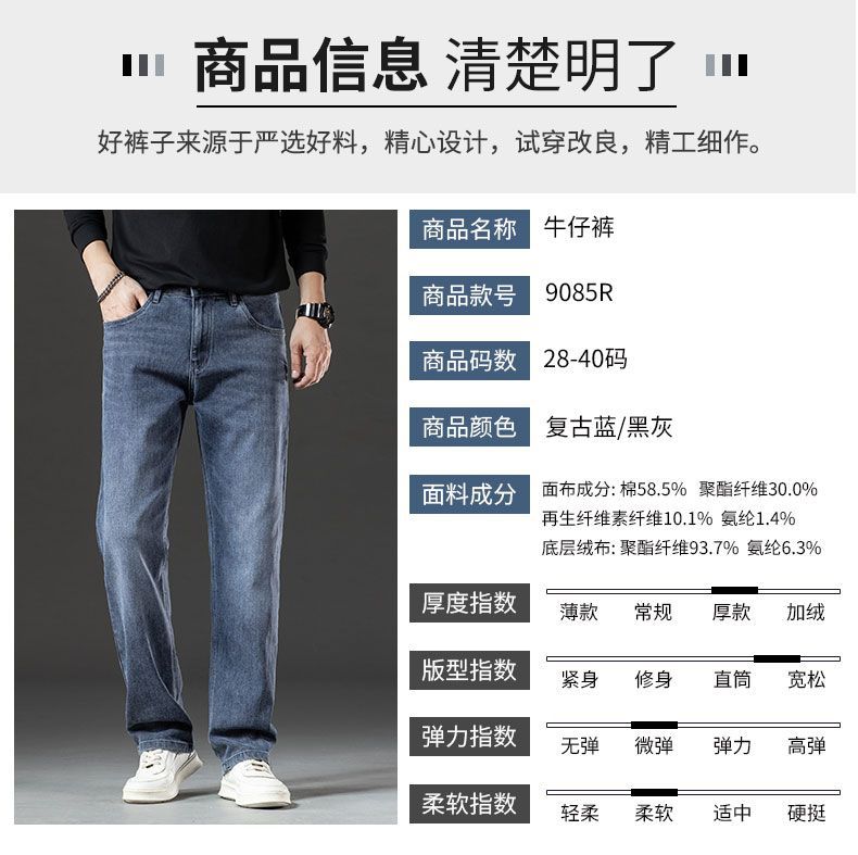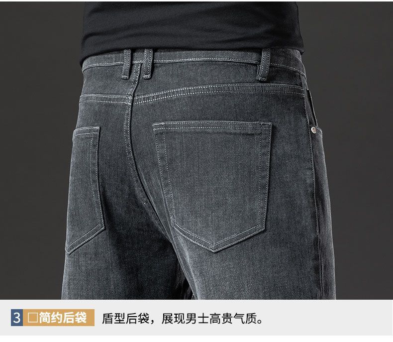 홍콩 2025 봄 가을 블랙 그레이 데님 팬츠 남성용 스트레이트 핏 중년용 신축성 캐주얼 롱 팬츠 다용도 플리스 안감스토어 가기