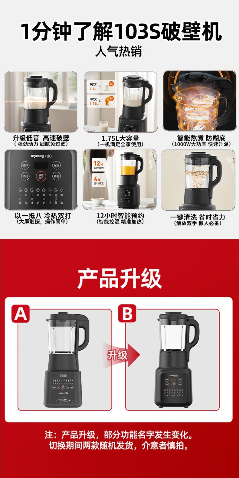 Jiuyang L18-Energy103S 벽 속보 기계 1.75 L 두유 건강 보존 가구 자동 다기능 요리 기계스토어 가기