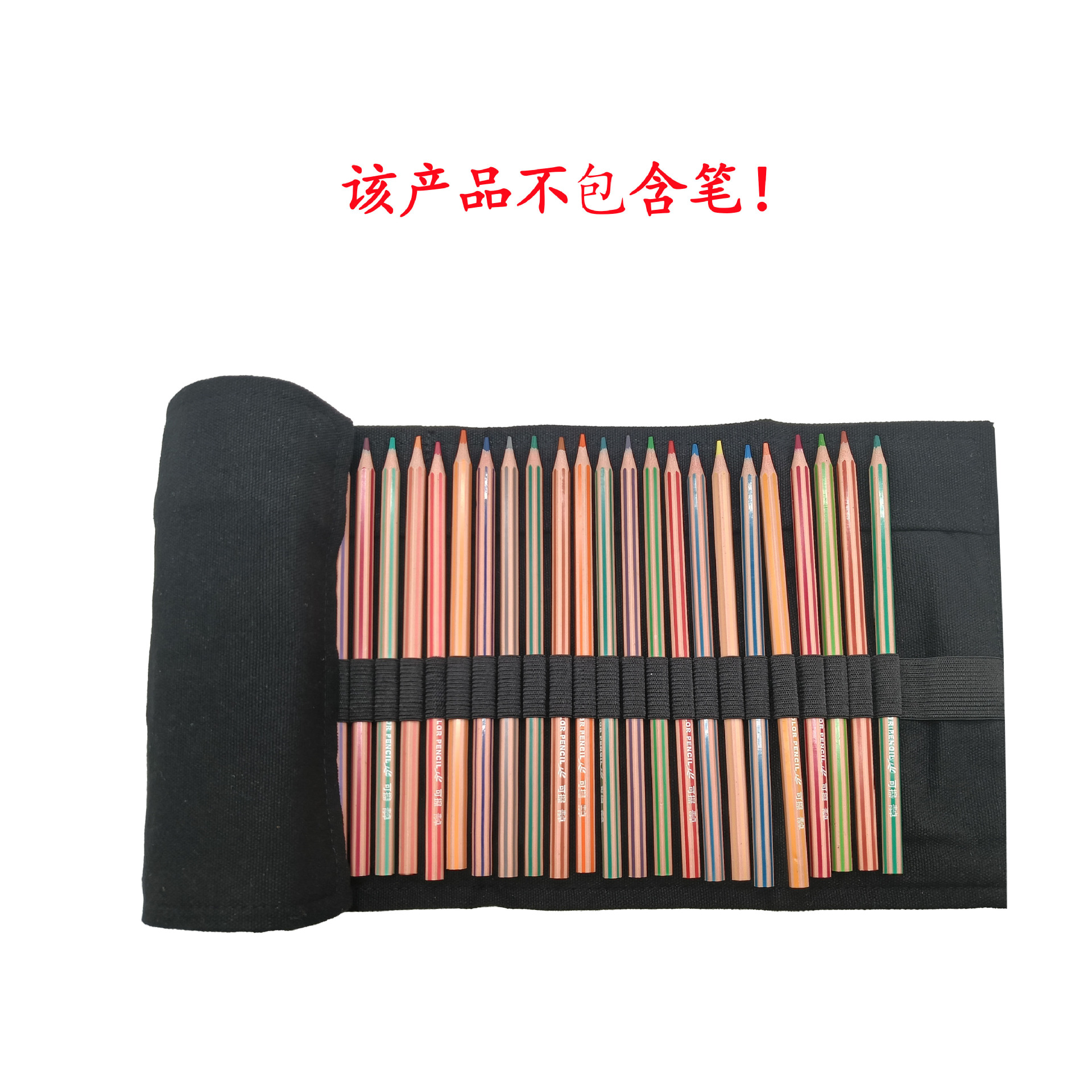 다기능 검은 수제 캔버스 36 홀 펜 커튼 학생 문구 연필 케이스 대용량 스케치 연필 보관 가방