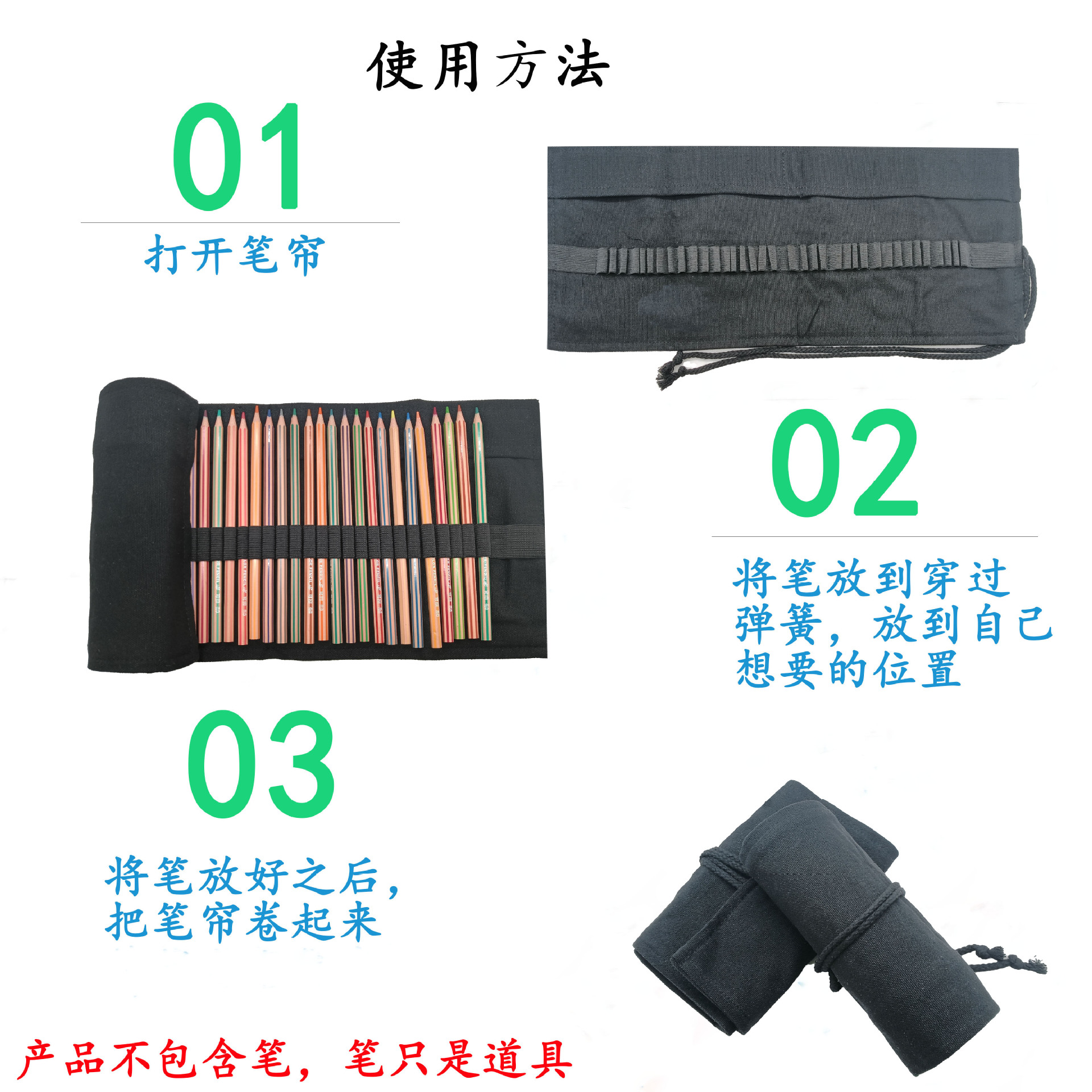 다기능 검은 수제 캔버스 36 홀 펜 커튼 학생 문구 연필 케이스 대용량 스케치 연필 보관 가방스토어 가기